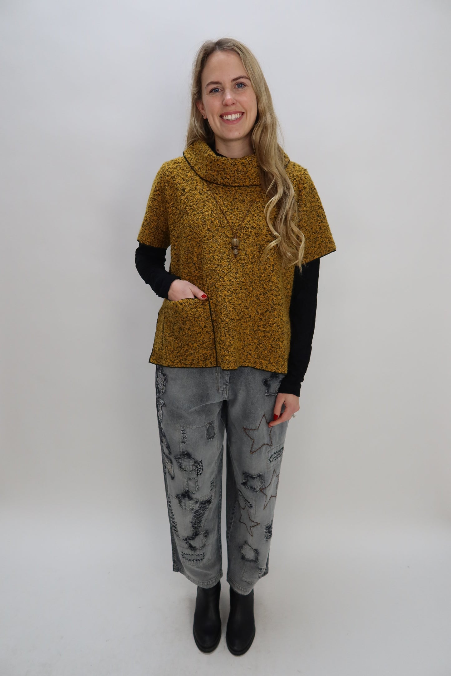 Our Paper Lace Gray Washed Jeans with Stars blend retro charm with contemporary style. The subtle star print and "Star" lettering adds the perfect interest to the classic gray vintage wash, while practical details—including a secure 3-button closure, functional pockets, and a comfortable elastic back waistband—ensure all-day wearability. Perfect for those seeking a distinctive denim piece that effortlessly transitions from casual, to dressed-up occasions.