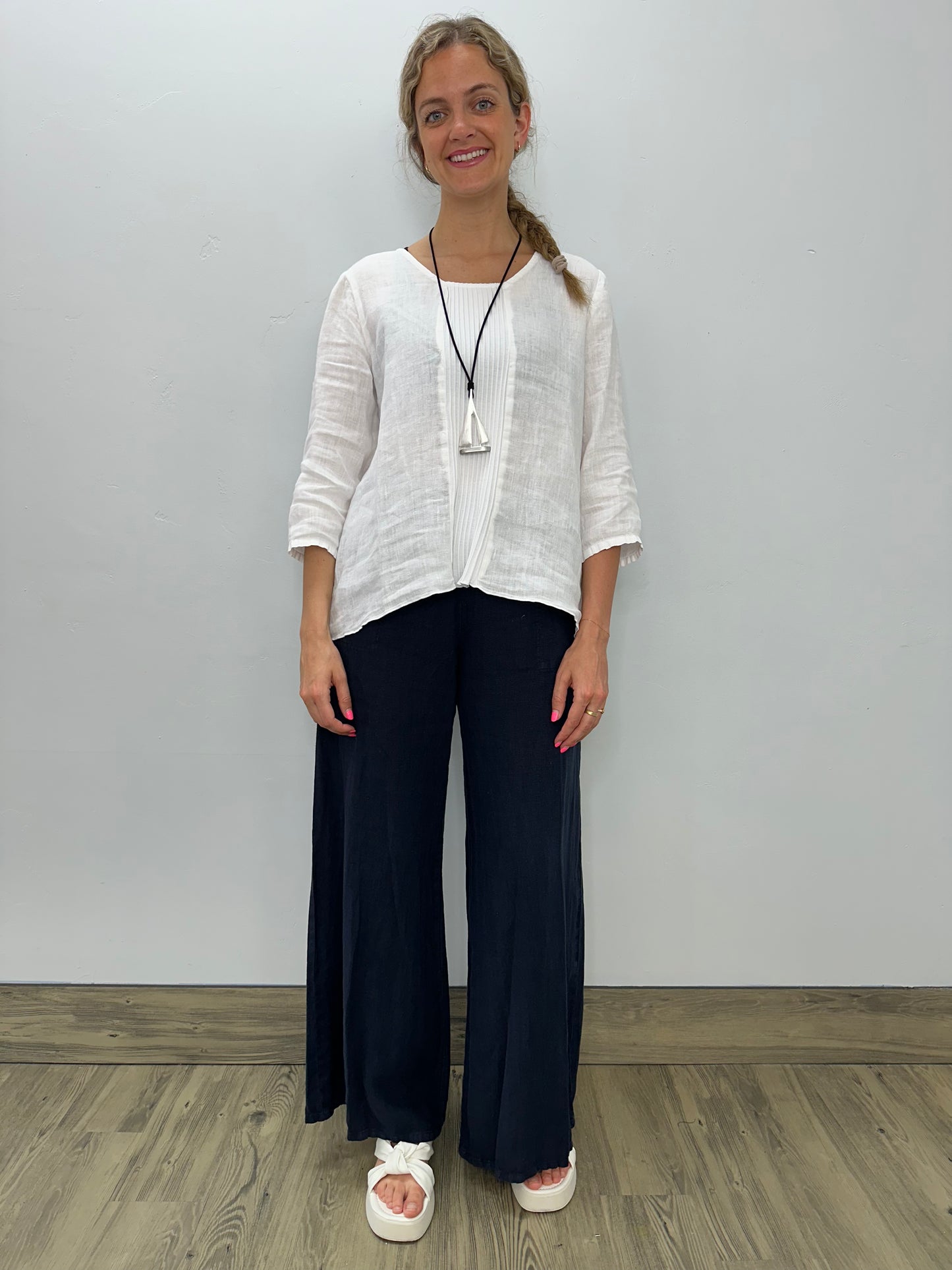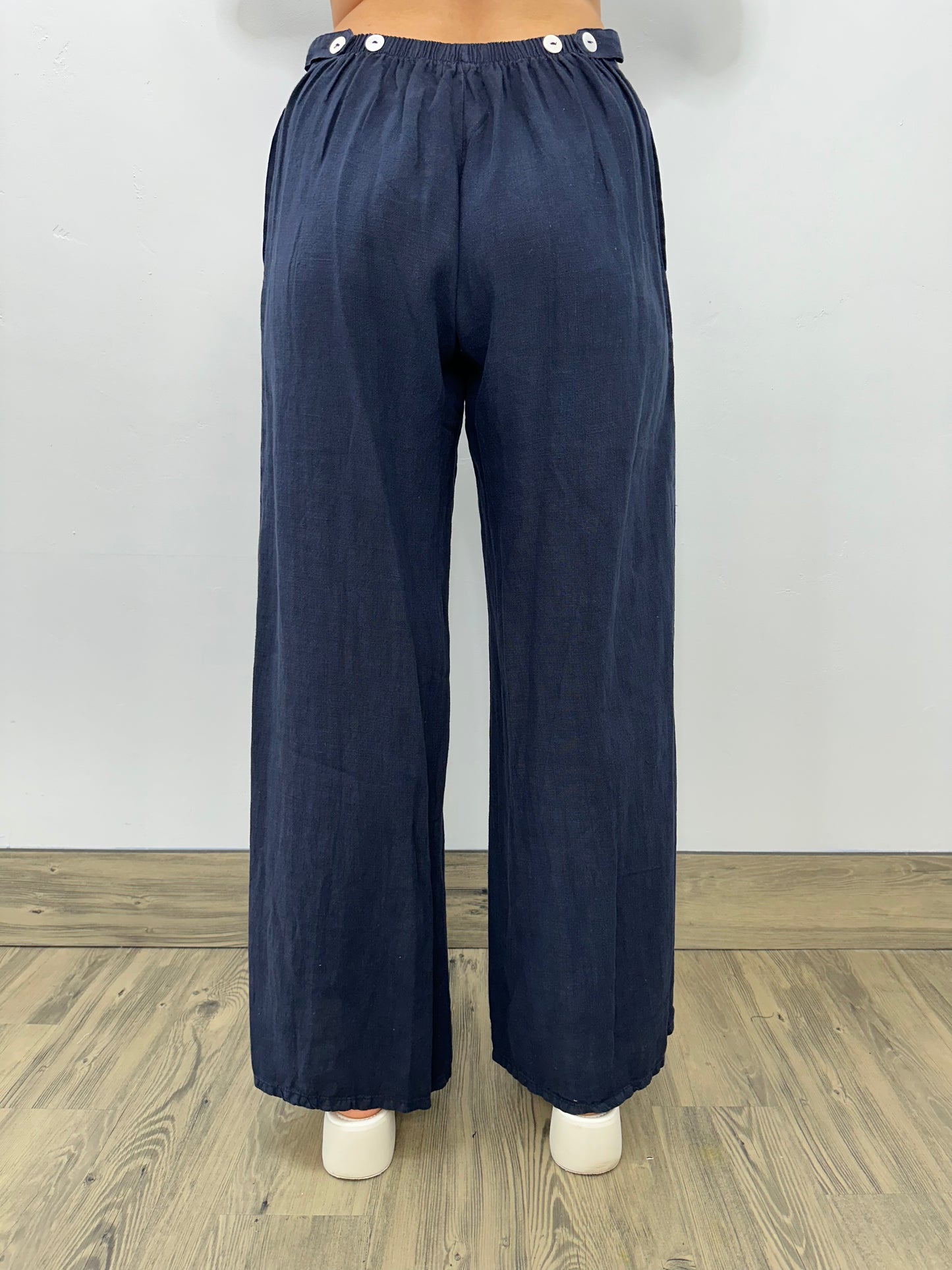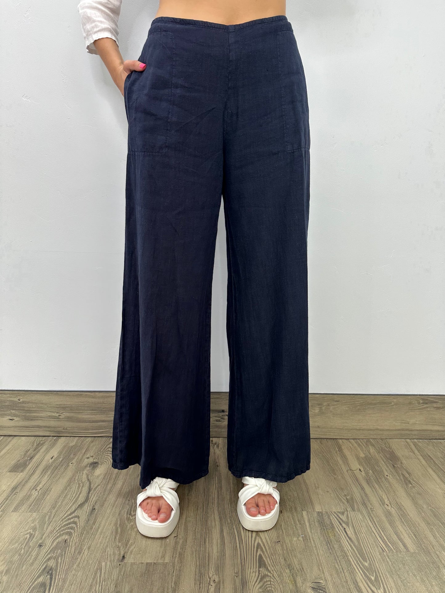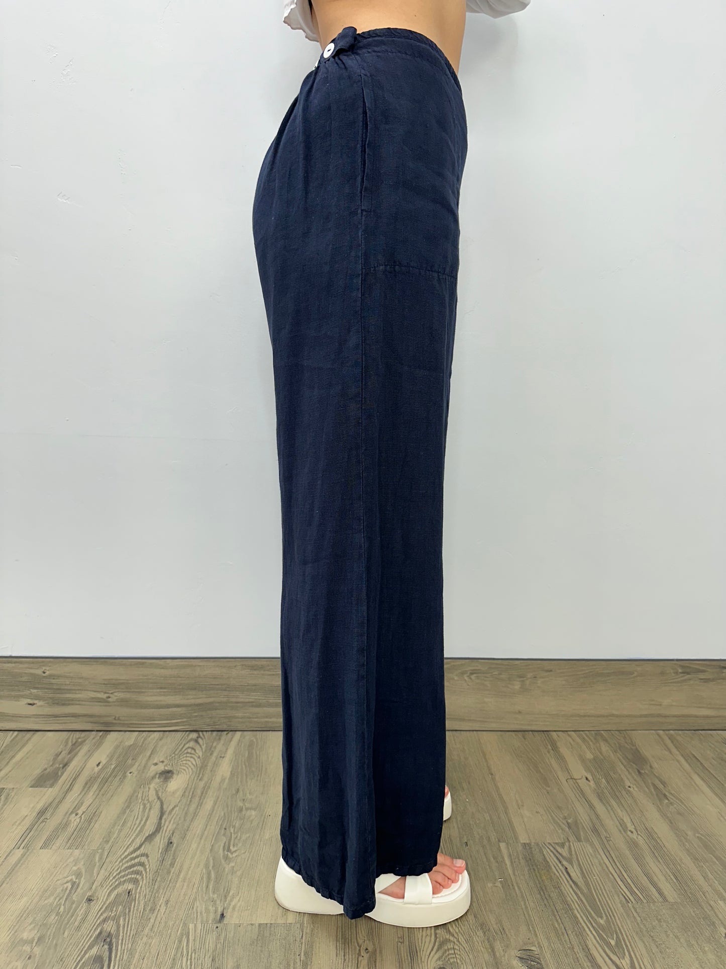 Ink Flat Front Long Linen Palazzo Pant