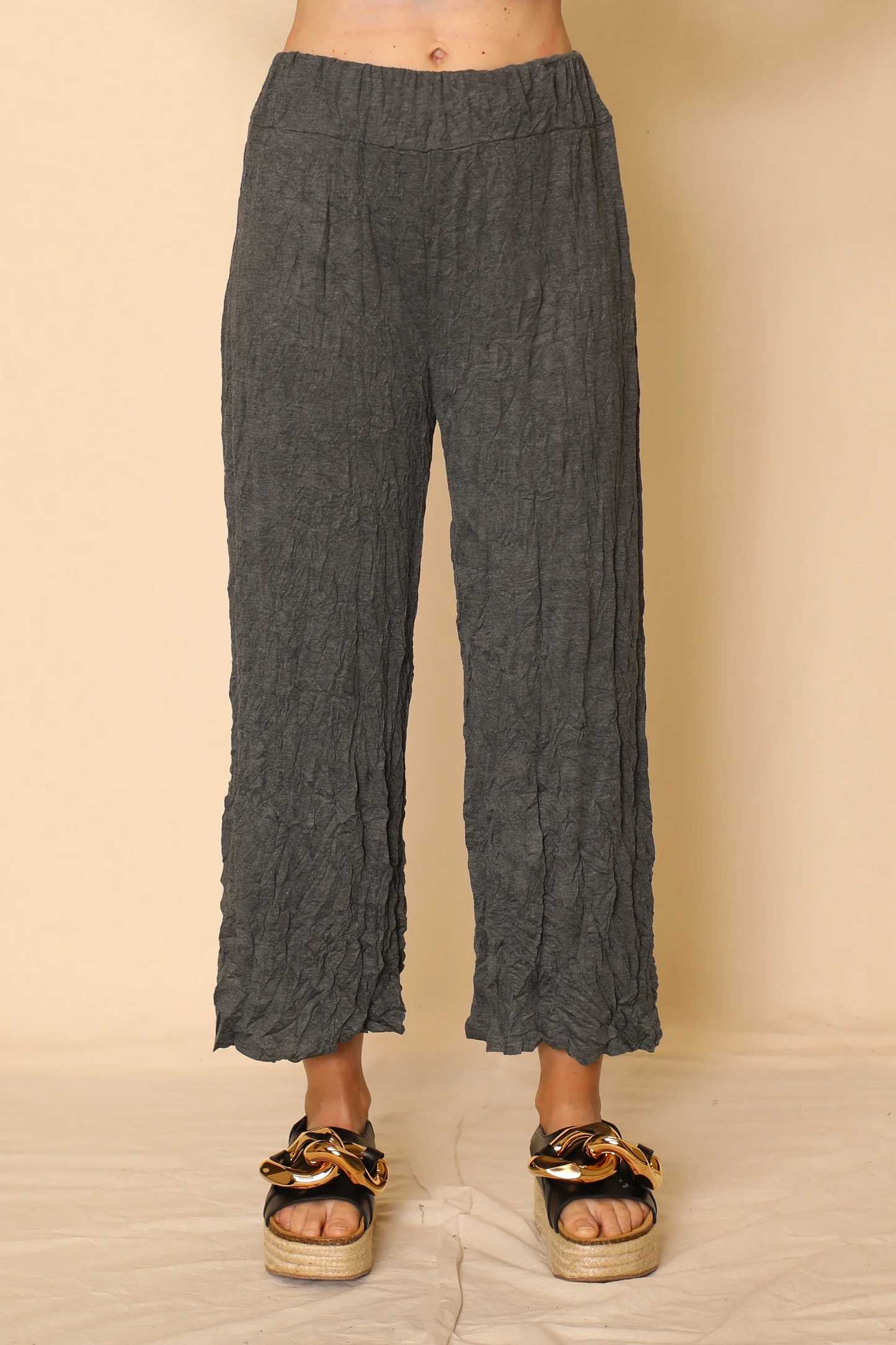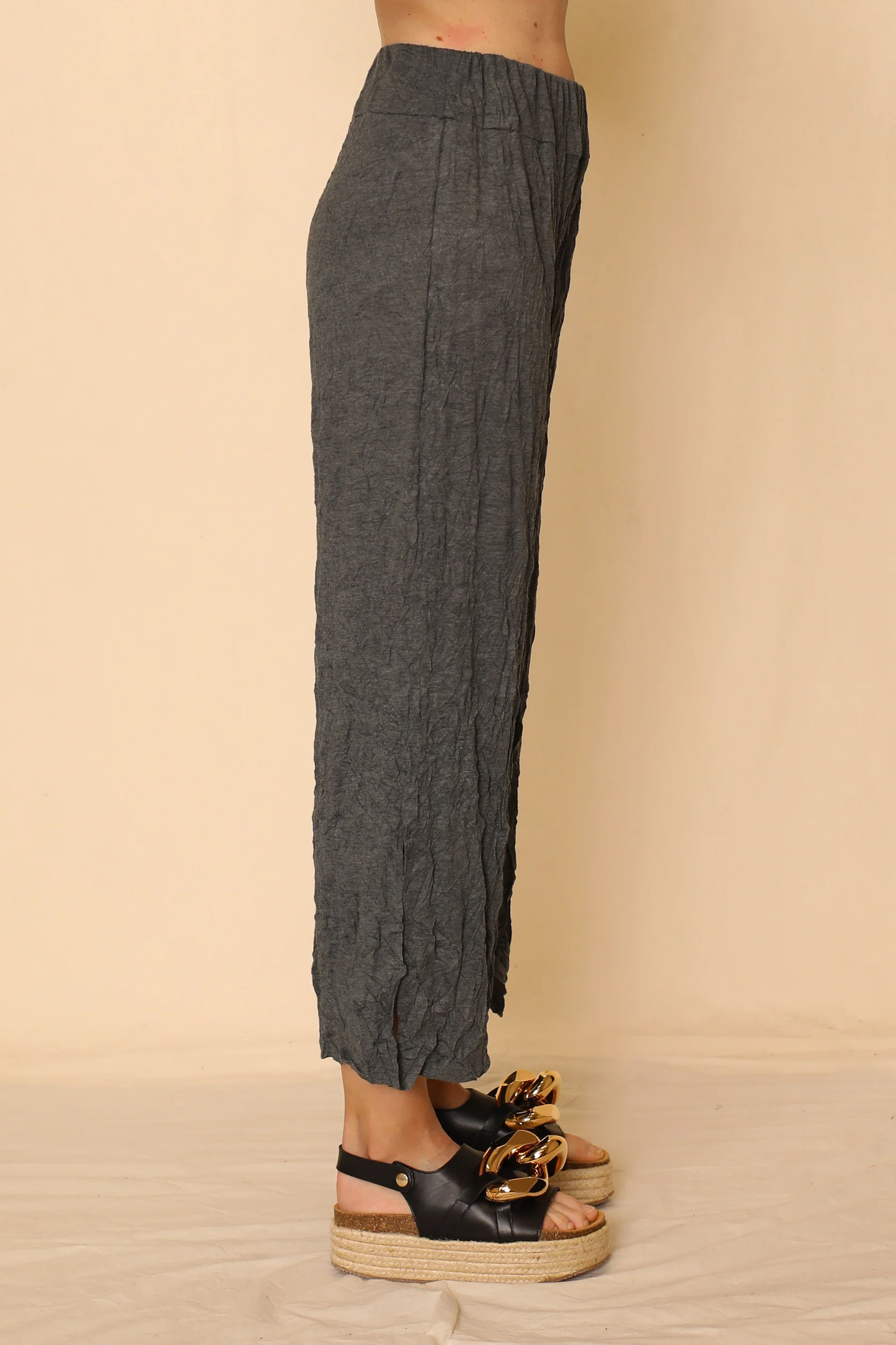 Larshell Crinkle Pant with Side Slits - Charcoal
