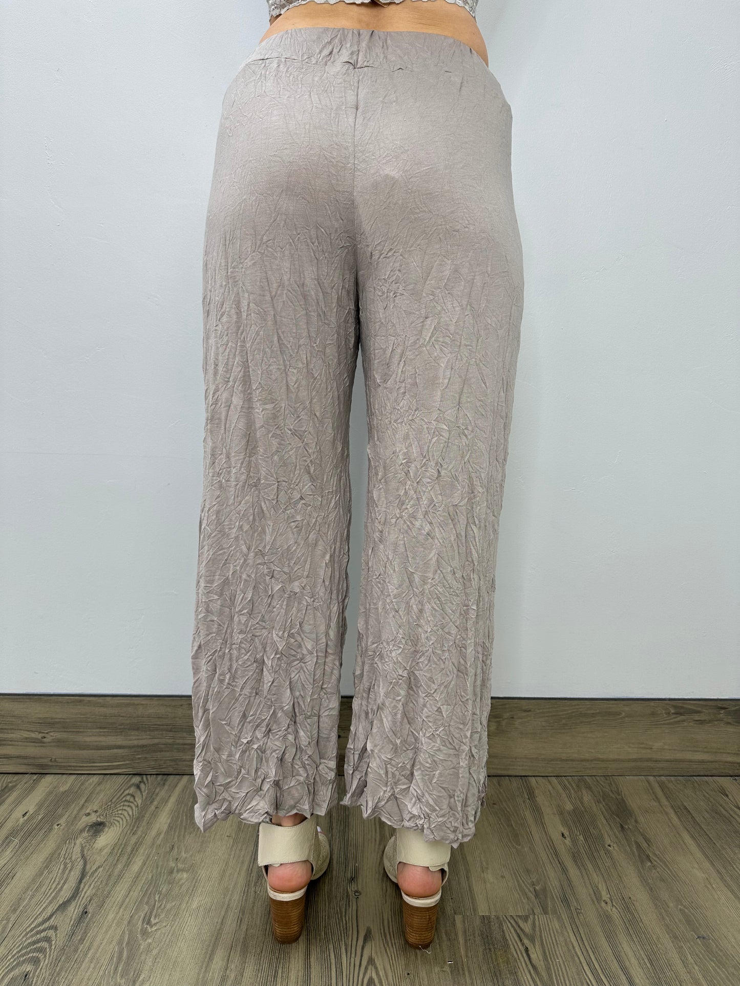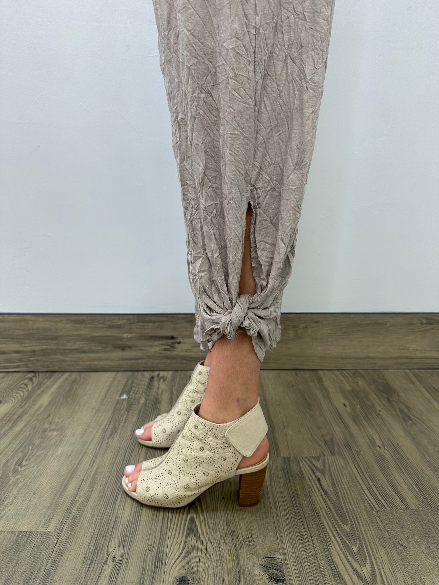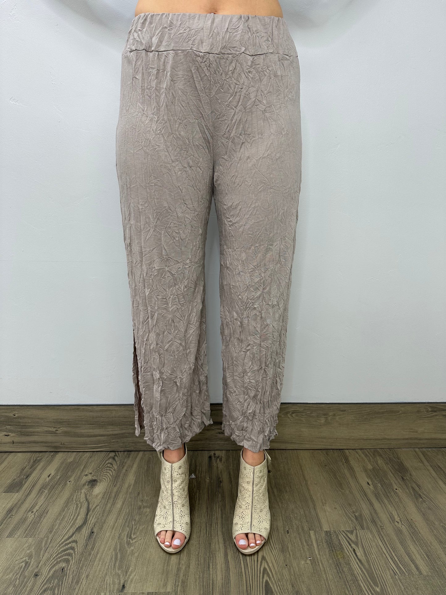 Regular price $104.30This Larshell crinkle pant showcases deep side slits at the hem, offering a stylish and comfortable fit. Crafted with an elastic waistband and a blend of 50% Bamboo Cotton and 50% Recycled Poly, it is ideal for any journey without the worry of wrinkling. To ensure the best preservation of the garment, hand wash cold and lay flat to dry. Proudly made in the U.S.A.