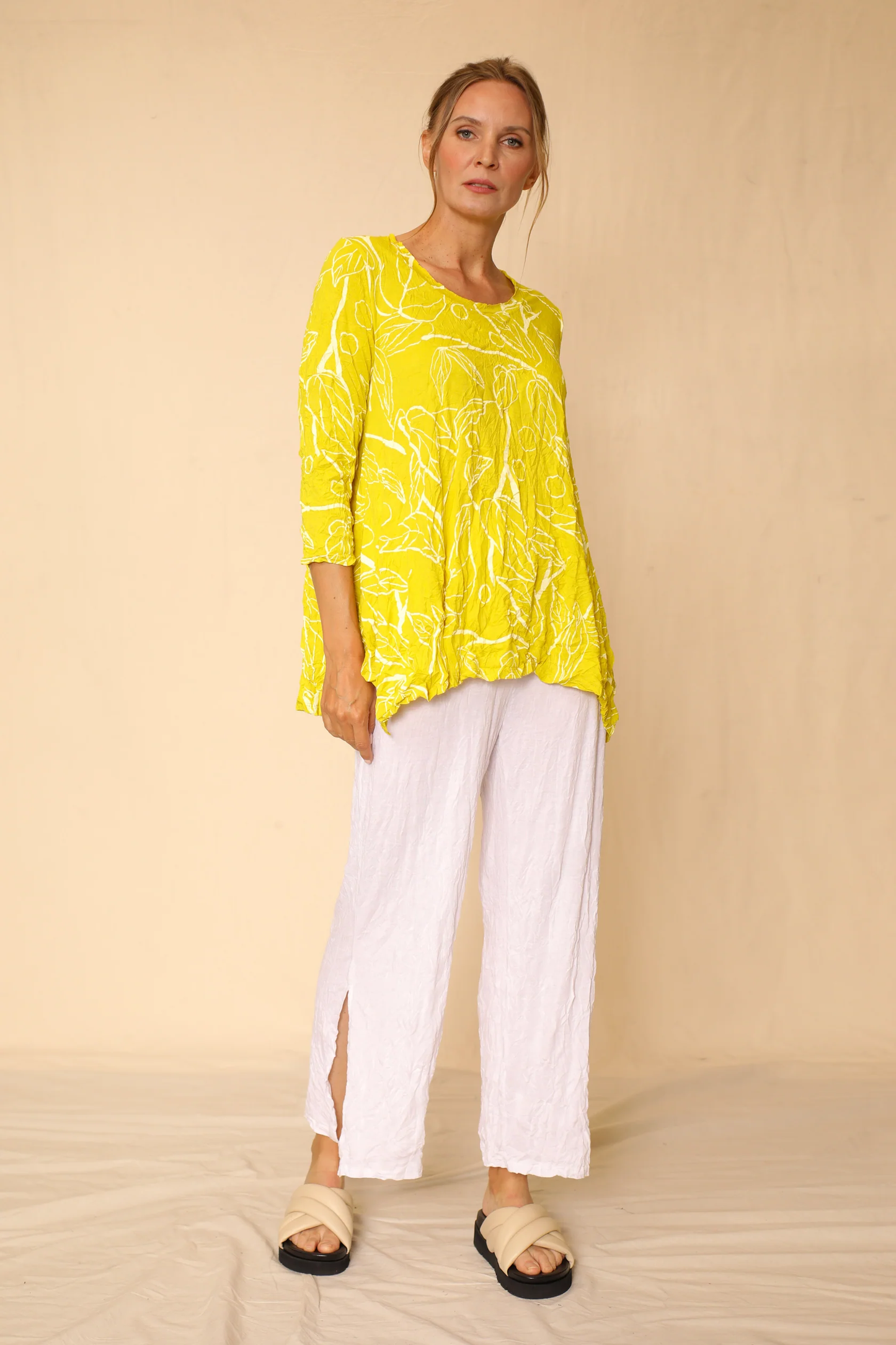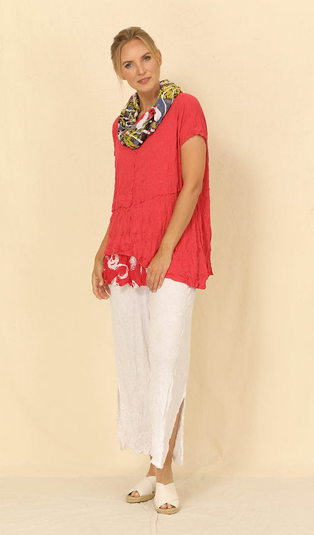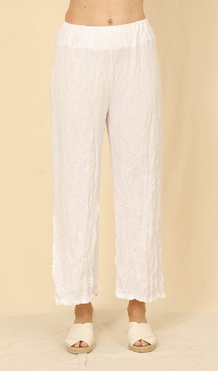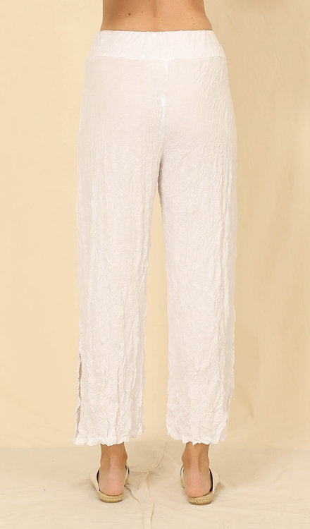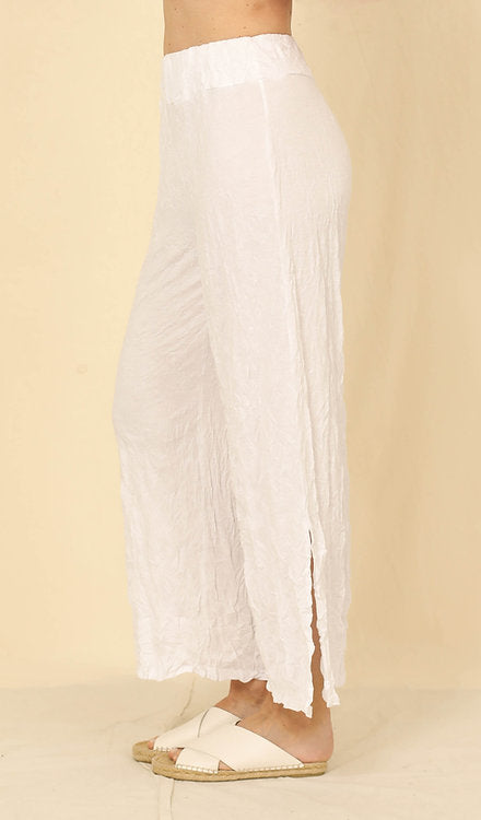 This Larshell crinkle pant showcases deep side slits at the hem, offering a stylish and comfortable fit. Crafted with an elastic waistband and a blend of 50% Bamboo Cotton and 50% Recycled Poly, it is ideal for any journey without the worry of wrinkling. To ensure the best preservation of the garment, hand wash cold and lay flat to dry. Proudly made in the U.S.A.