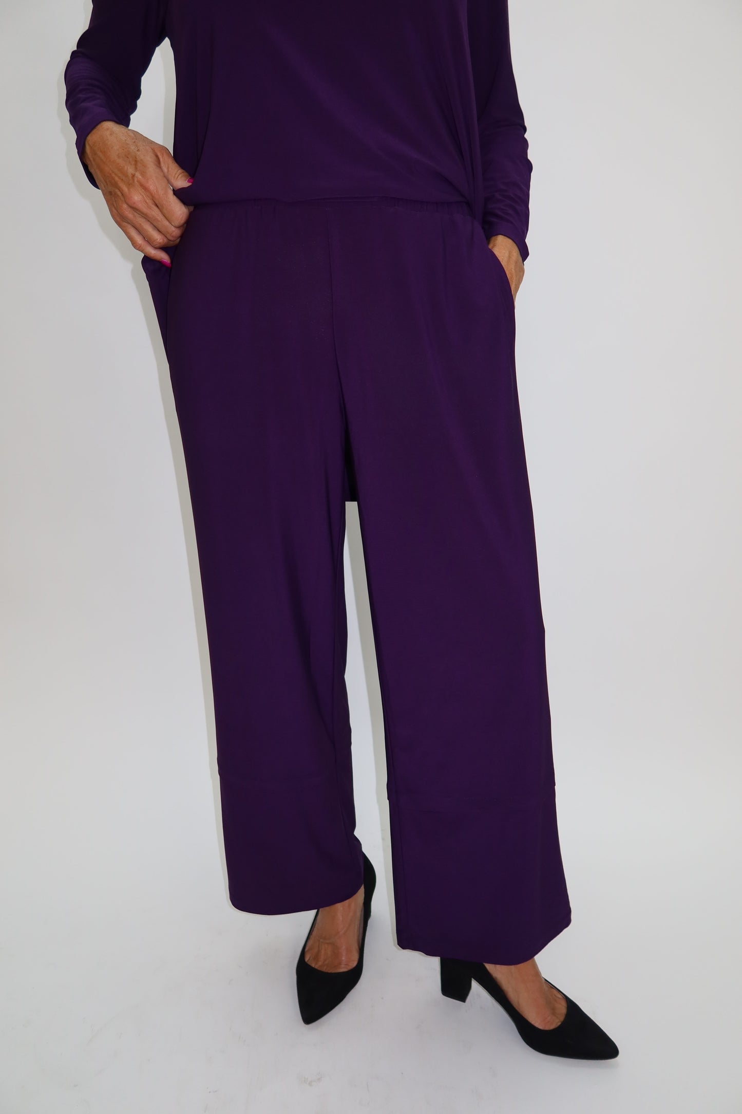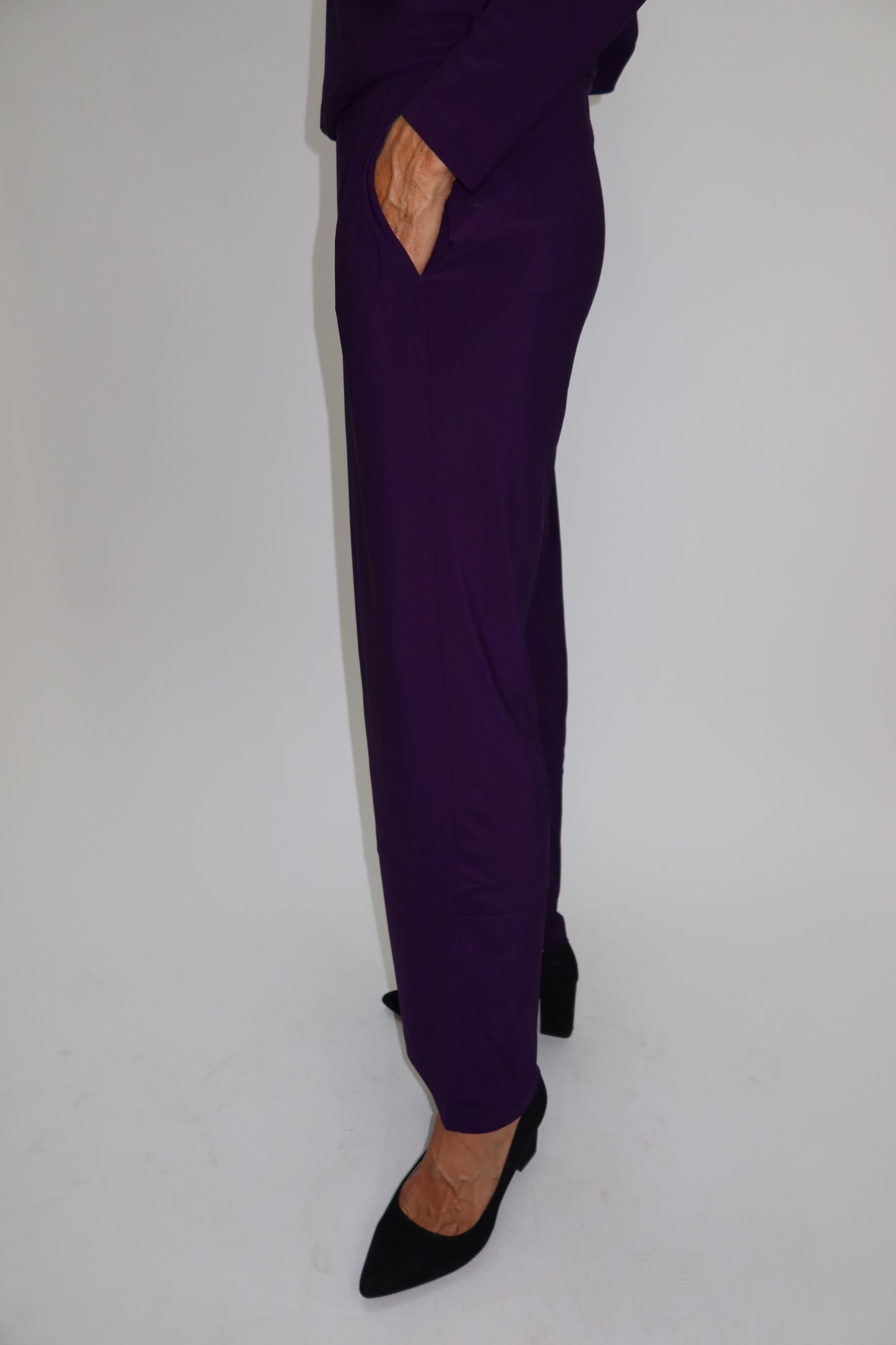 Discover effortless style and comfort with the Mulberry Purple Dotty Pant. Featuring a straight full-length cut, these pants offer a flattering and timeless silhouette. Crafted from a lovely soft fabric, they provide all-day ease and a luxurious feel against your skin. Practical two side pockets add convenience without compromising the sleek design. Perfect for elevating your everyday wardrobe with a touch of subtle charm.