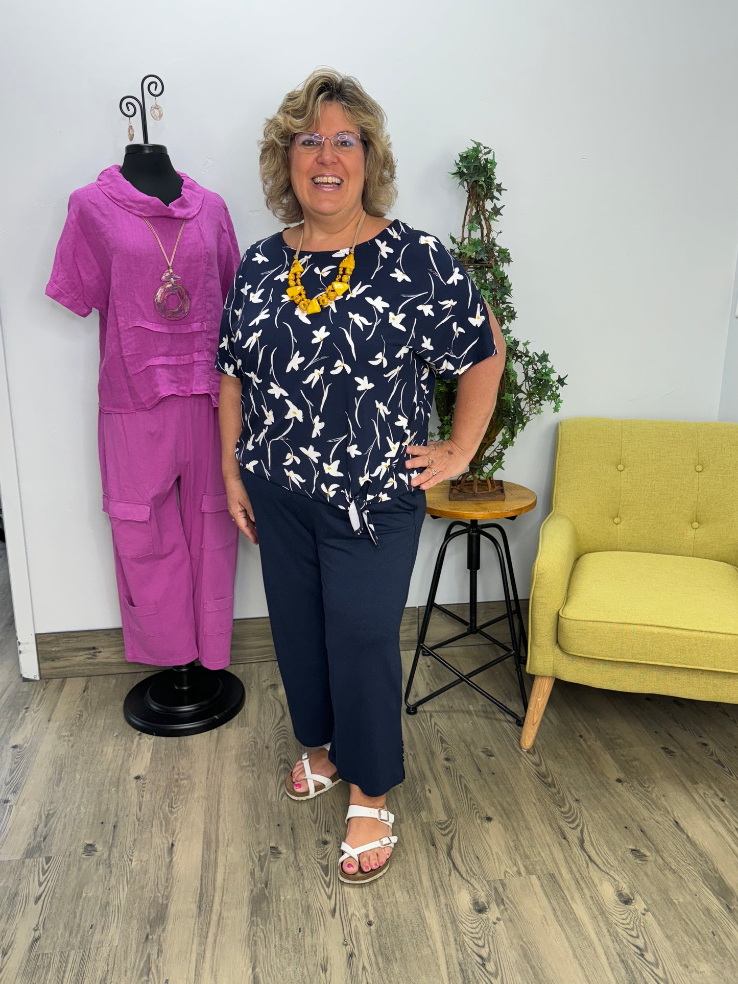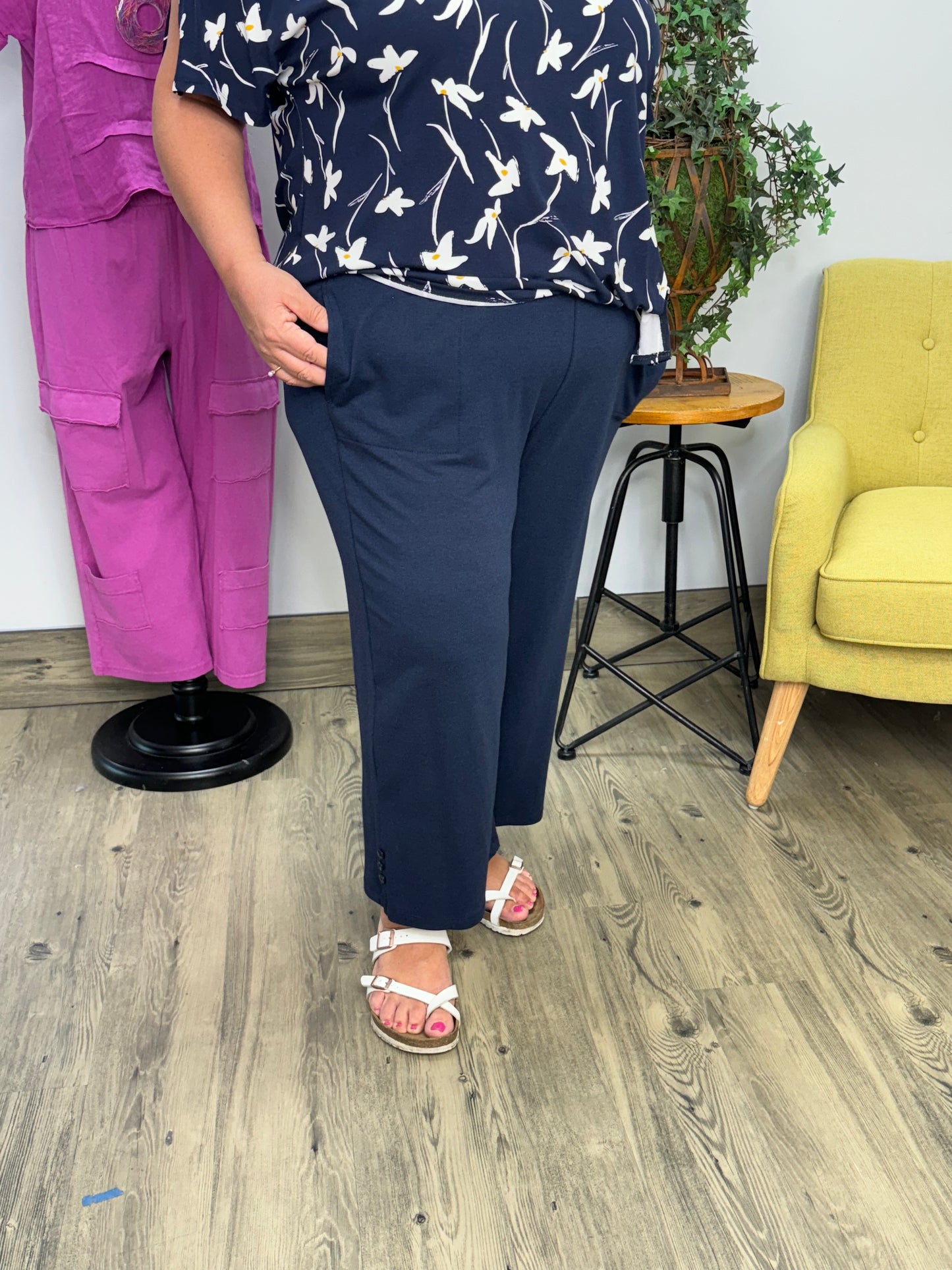 Experience ultimate comfort and style with our Navy Bamboo Terry Capri. Its elastic waist band and button detailing on the bottom add a unique touch while providing a comfortable and lightweight fit. Perfect for any activity, these capris will keep you feeling cool and confident all day long.
