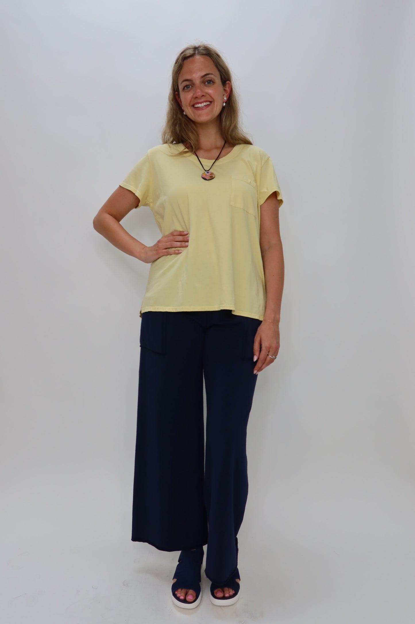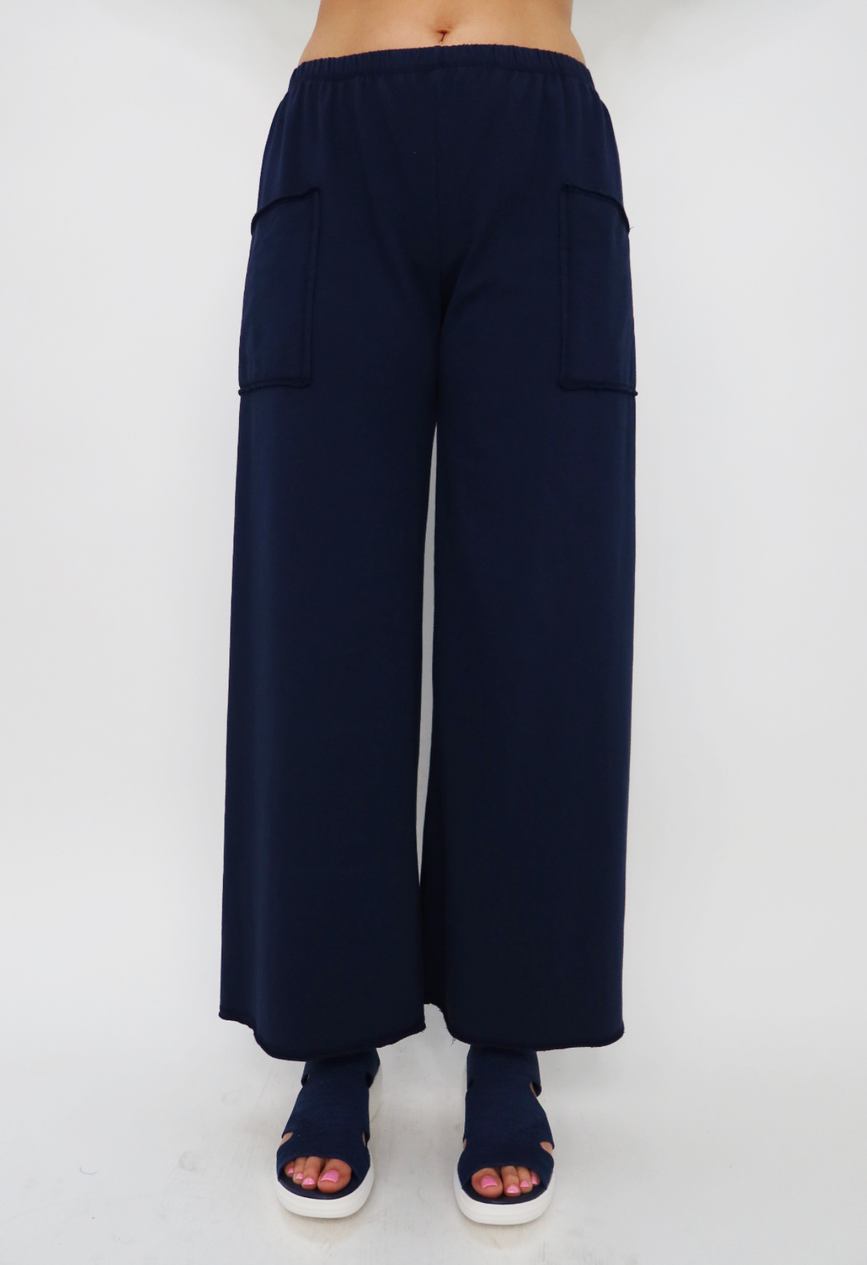Navy Nebula Raw Edge Pant with Side Patch Pockets