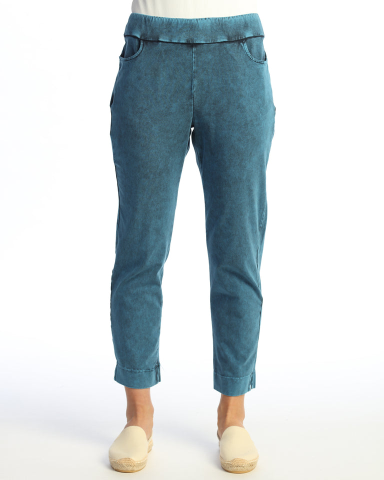 Sapphire Mineral Washed Slim Pant with Pockets and Split Ankle Hem
