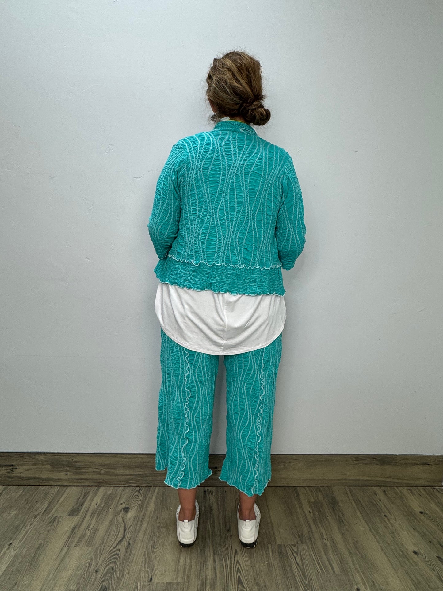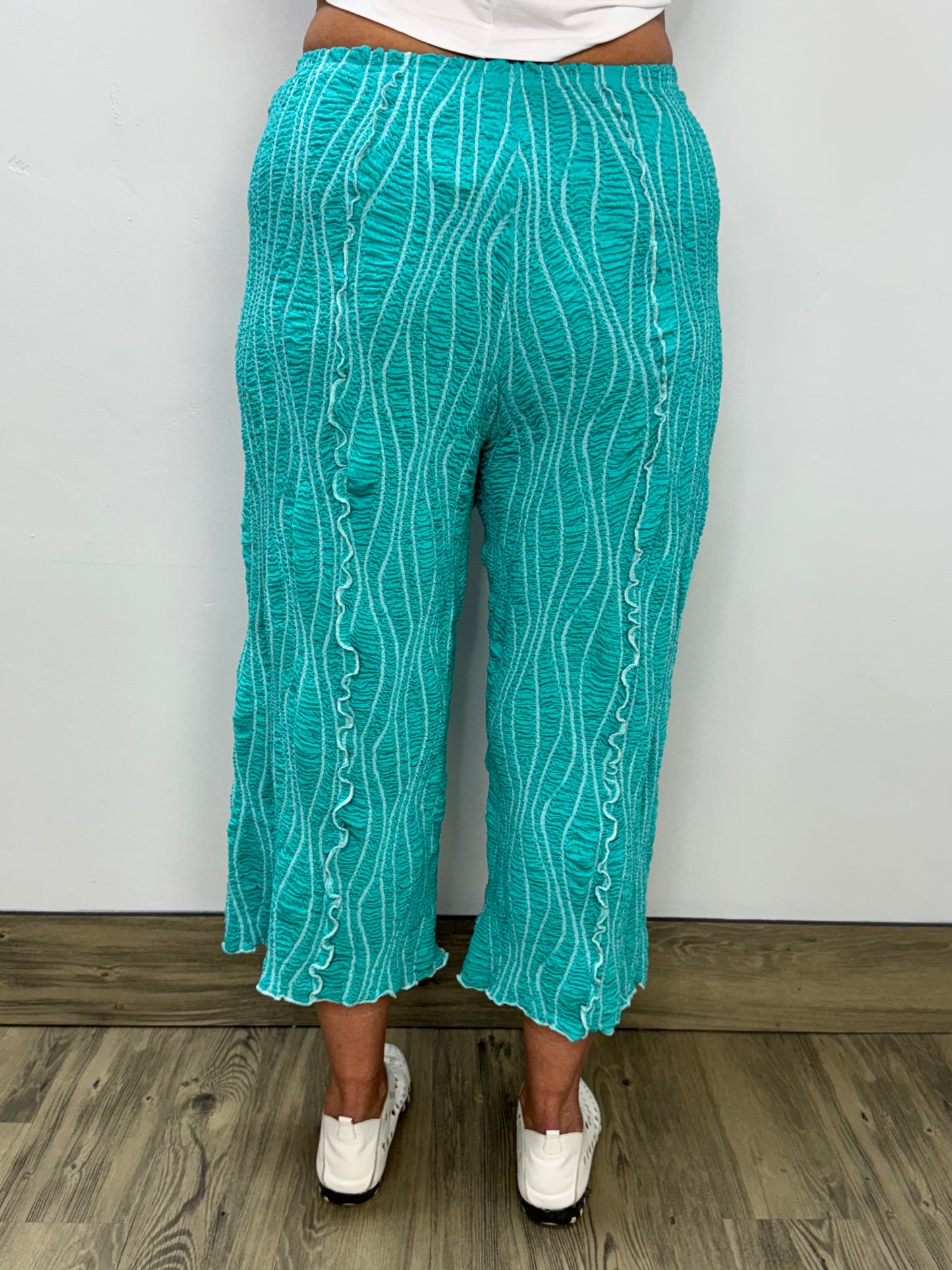 Regular price $71.20Unleash your inner fashionista with our Vine Street Turquoise Jacquard Crop Pant! The long crinkle mesh pant features an elastic waistband for comfort and a flattering tiered hem. The front notch adds a touch of unique style. Perfect for any occasion, this pant is a must-have for your wardrobe and pairs perfectly with other Vine Street pieces!