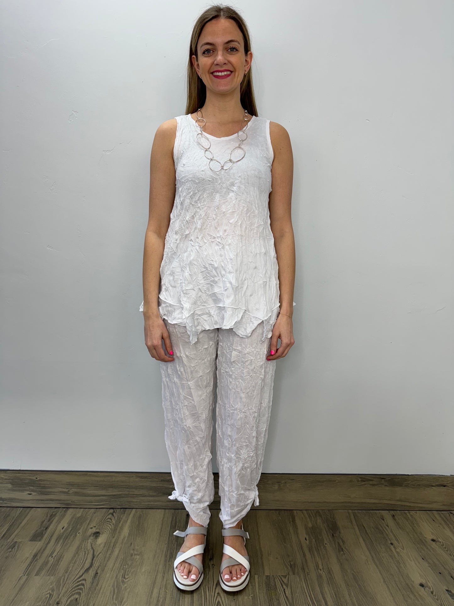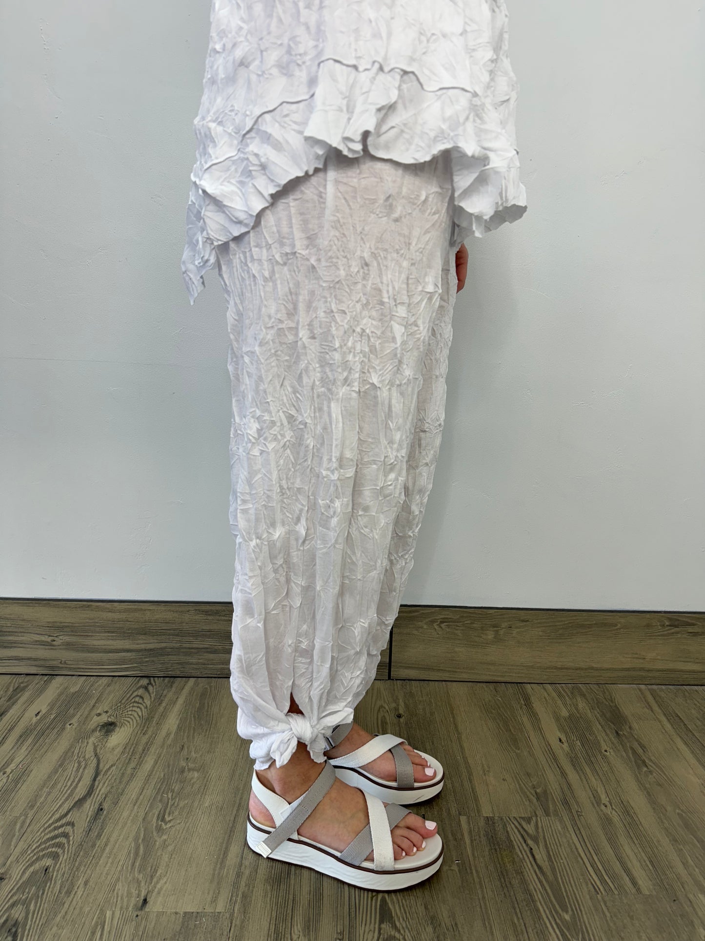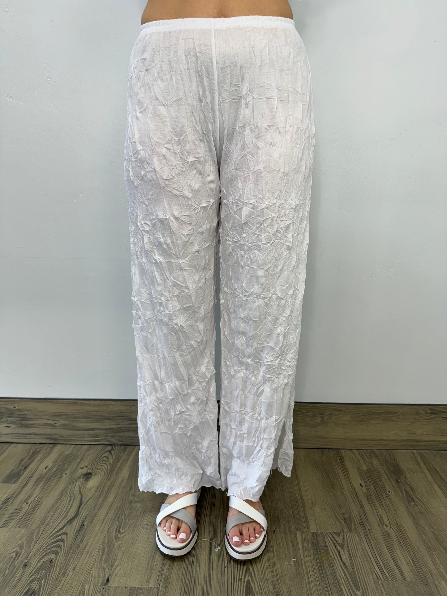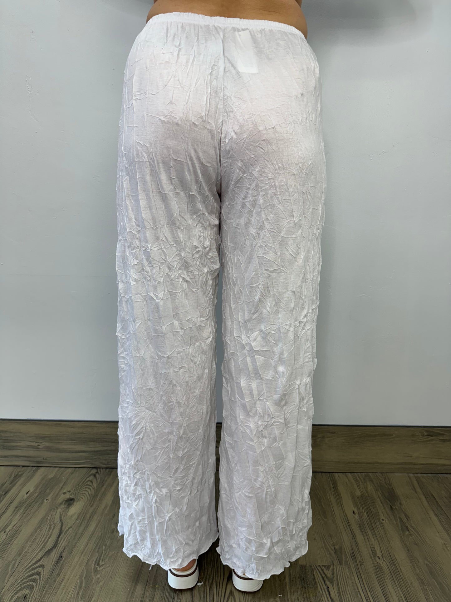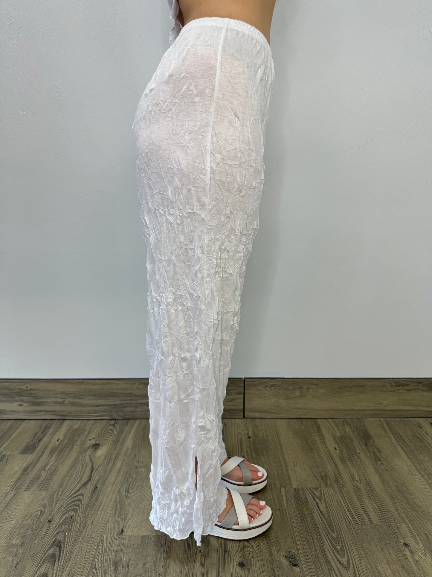 White Long Full Length Crinkle Pant