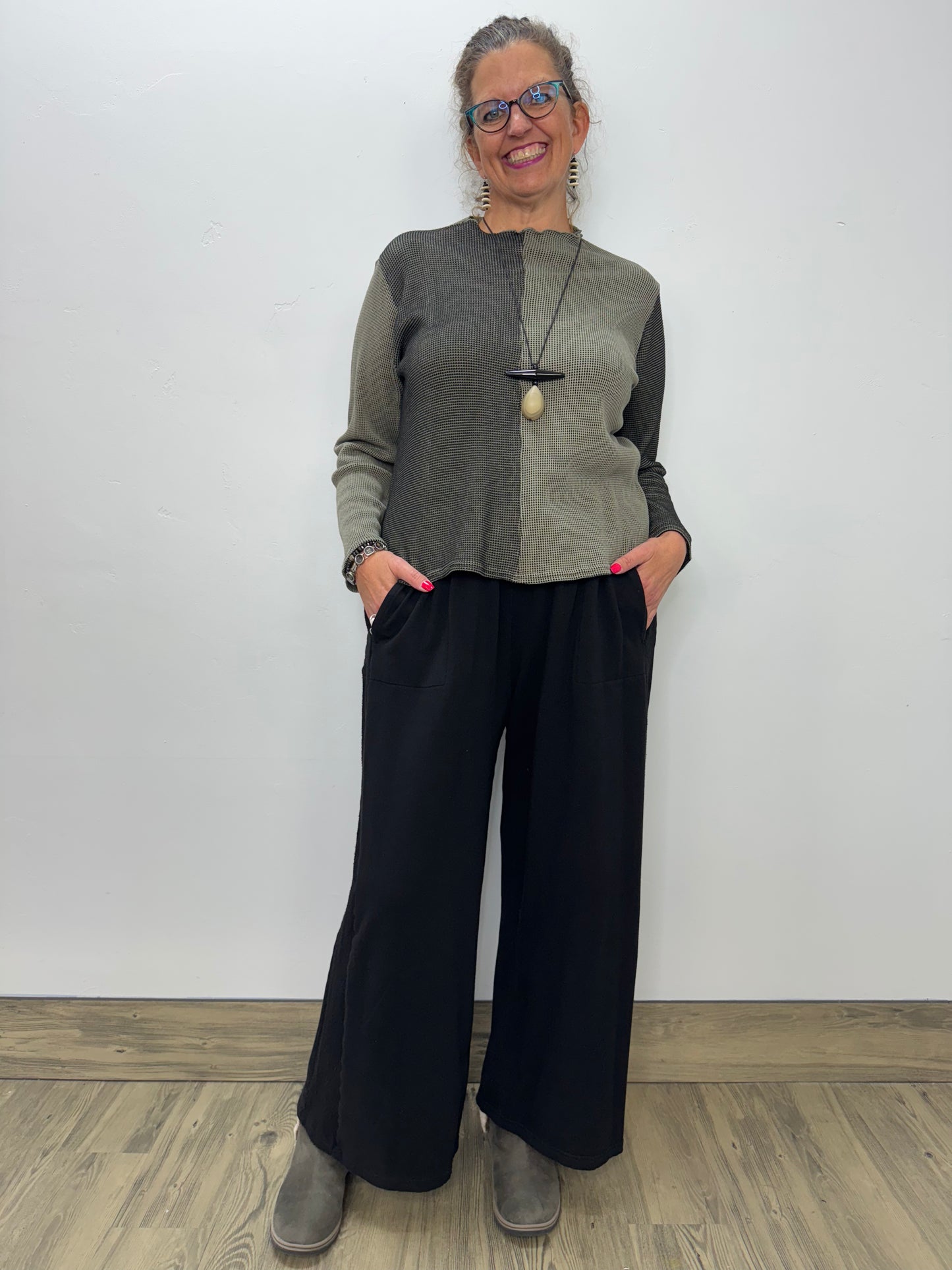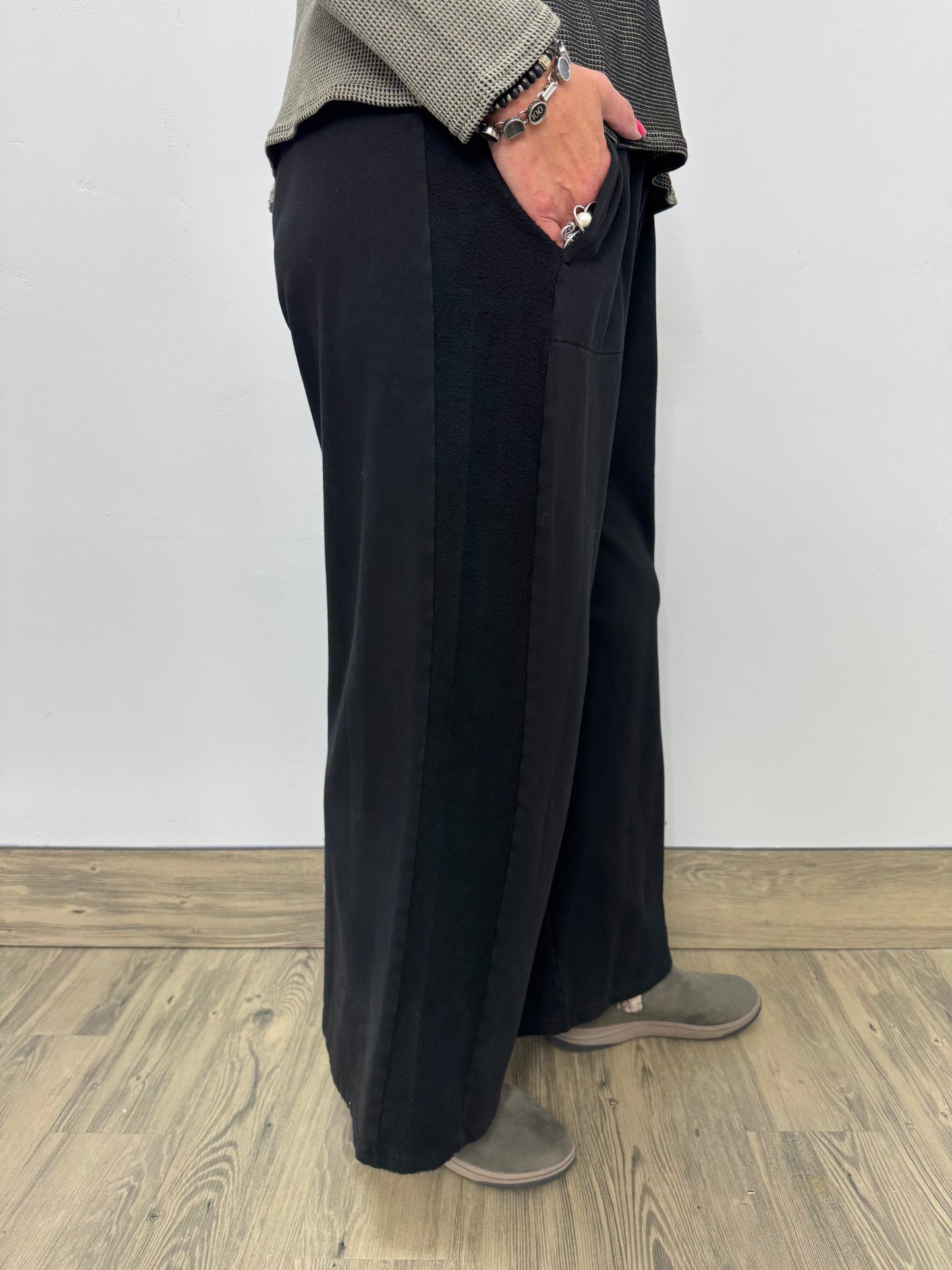 Feel comfortable and stylish in our Wide Leg Black Fleece Pant with Pockets. These lovely pants feature a flattering wide leg design and a vertical strip of fleece down the side. Plus, with two pockets, you can easily carry essentials while on the go. Stay cozy and chic all day long!