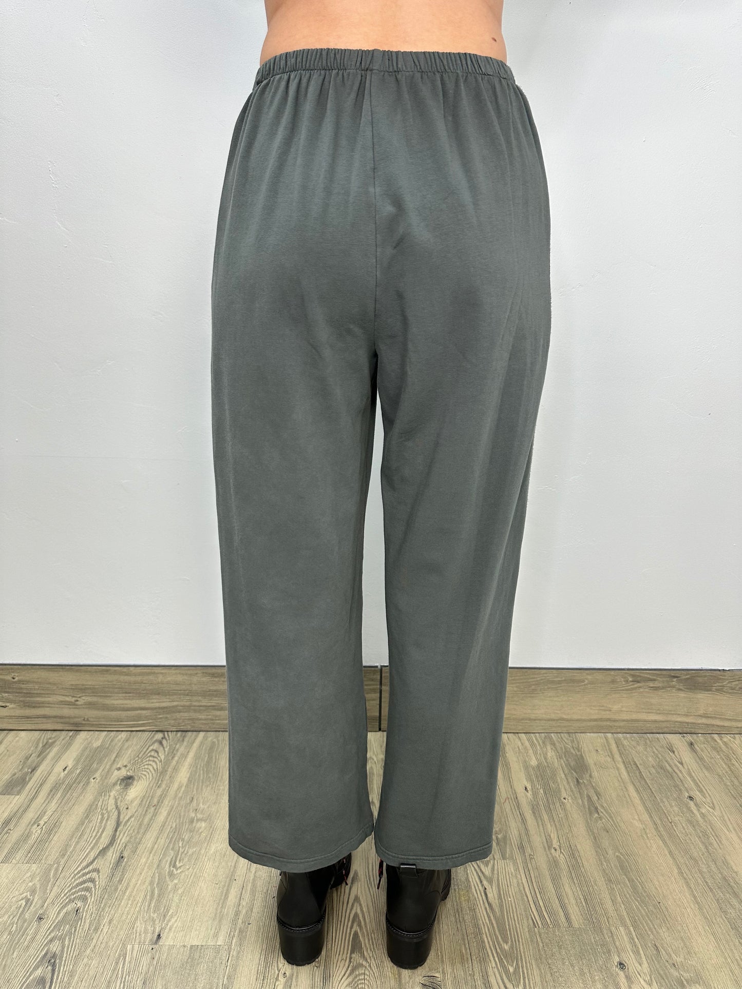 Wide Leg Iron Grey Fleece Pant with Pockets