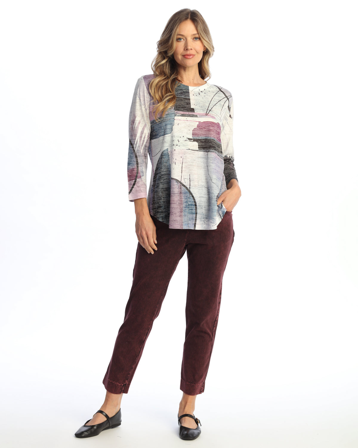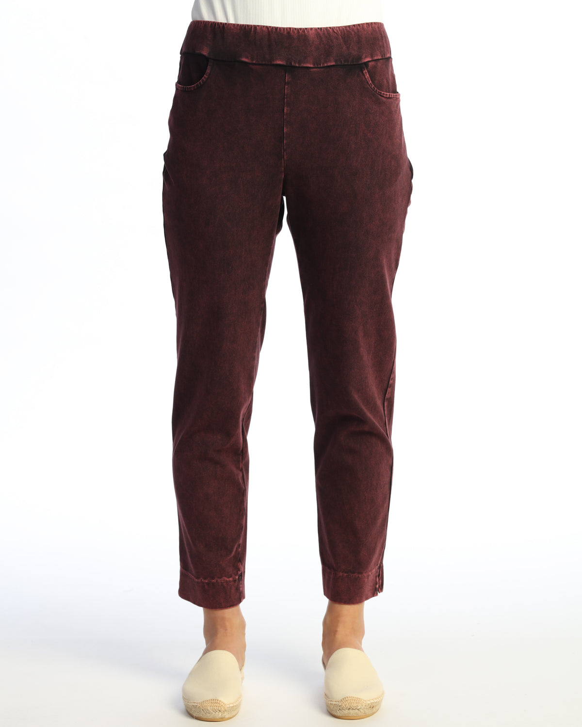 Wine Mineral Washed Slim Pant with Pockets and Split Ankle Hem