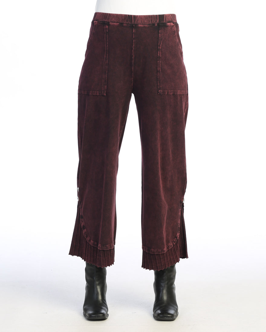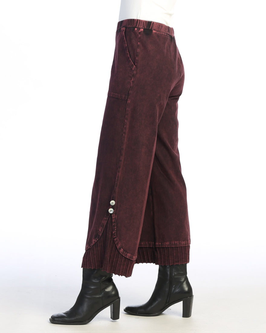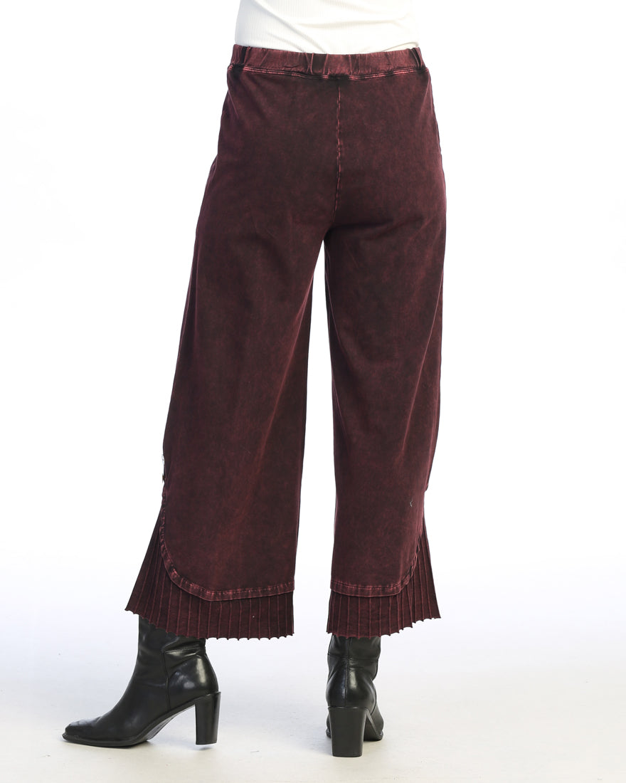 Wine Mineral Washed Wide Leg Pant with Rib Contrast