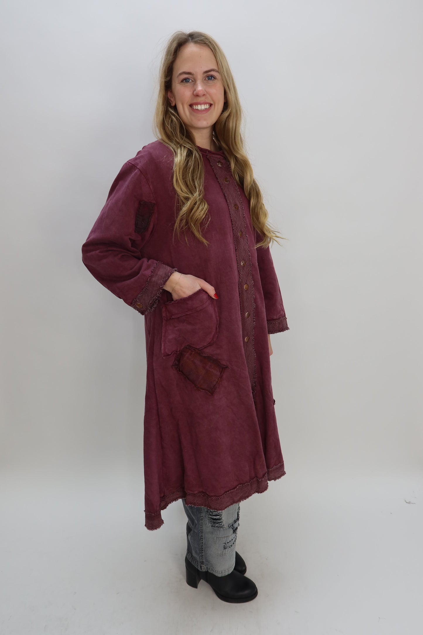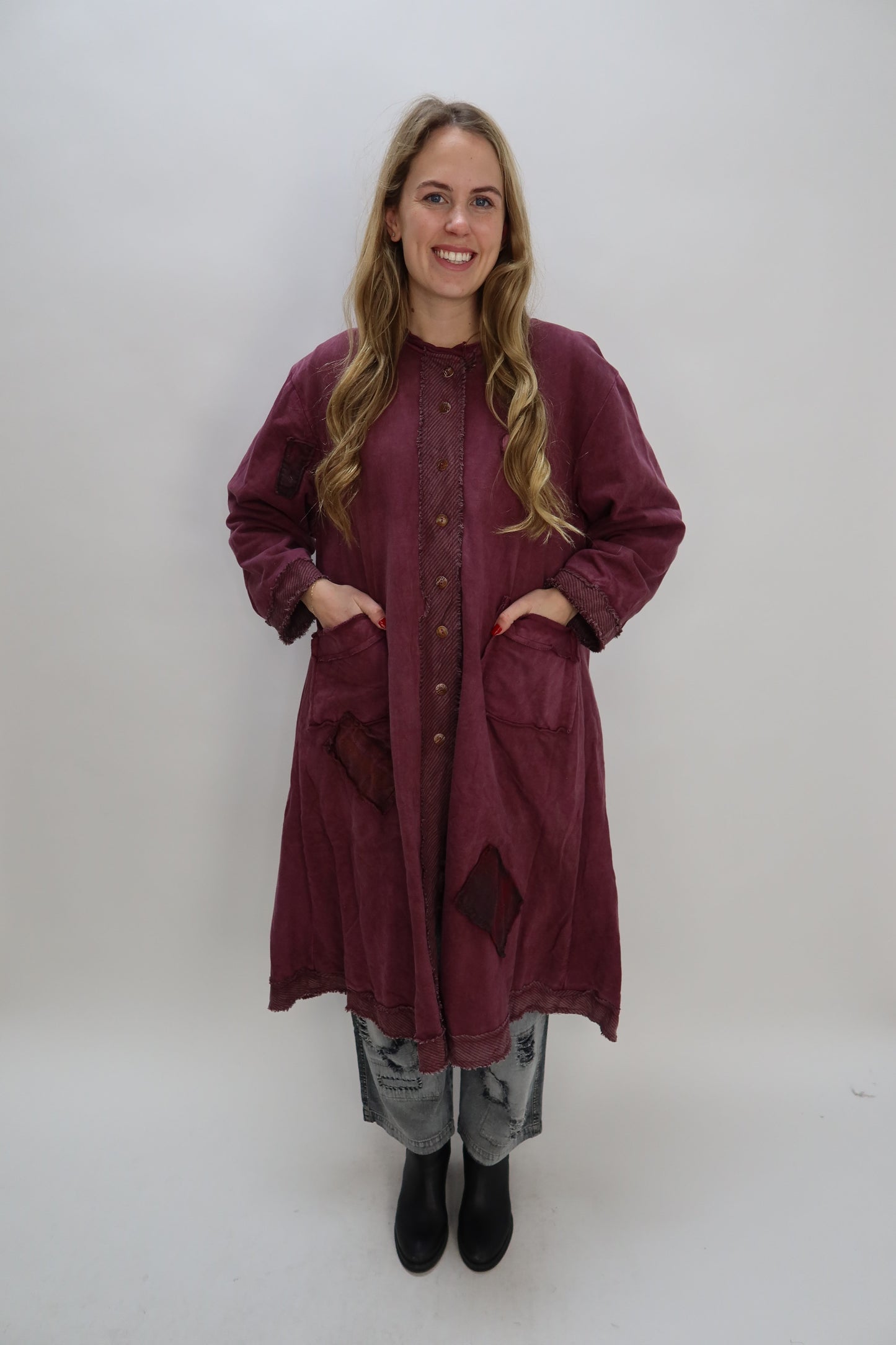 Long Berry Purple Hearts Reversible Jacket with Pockets One Size