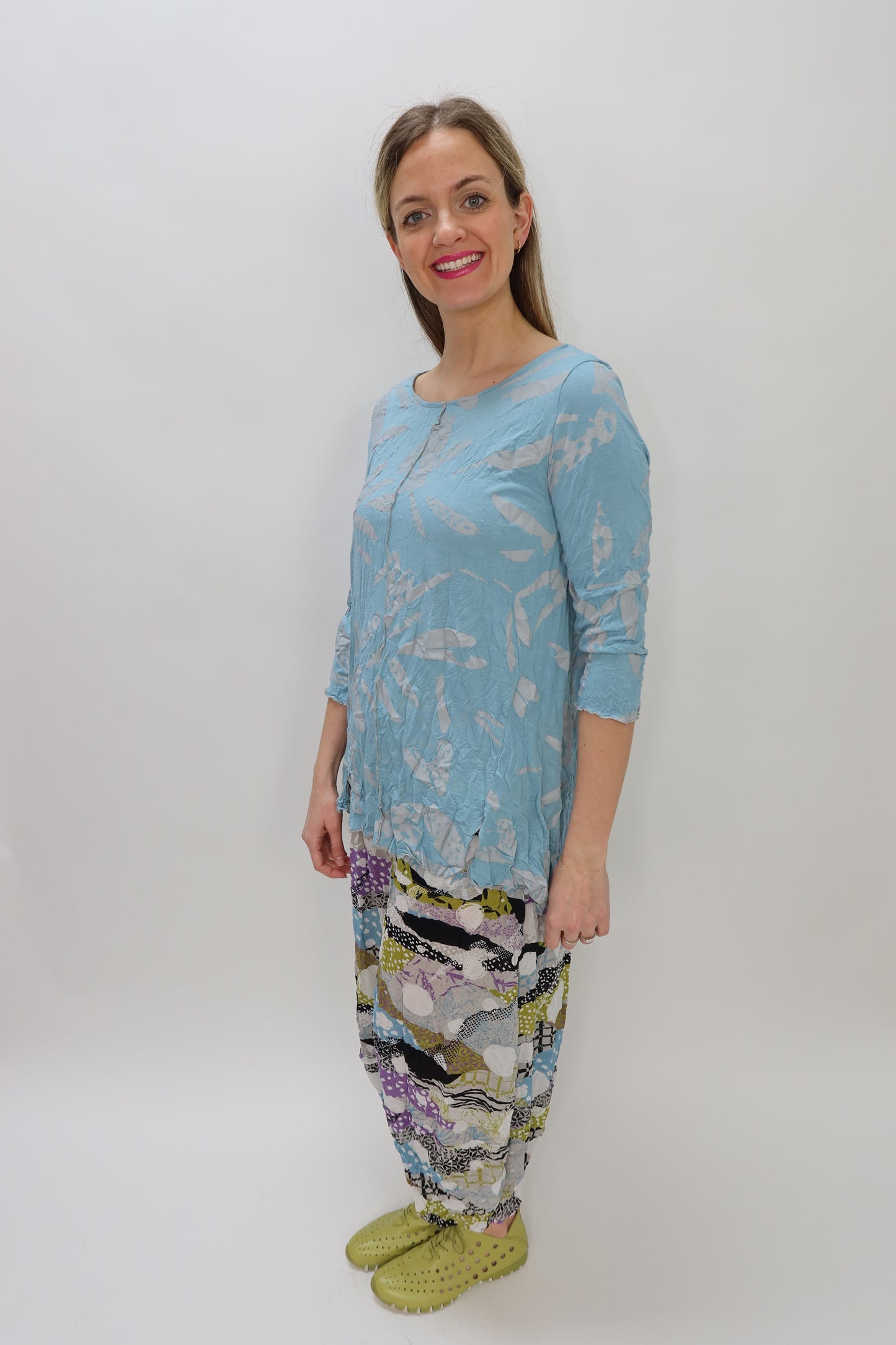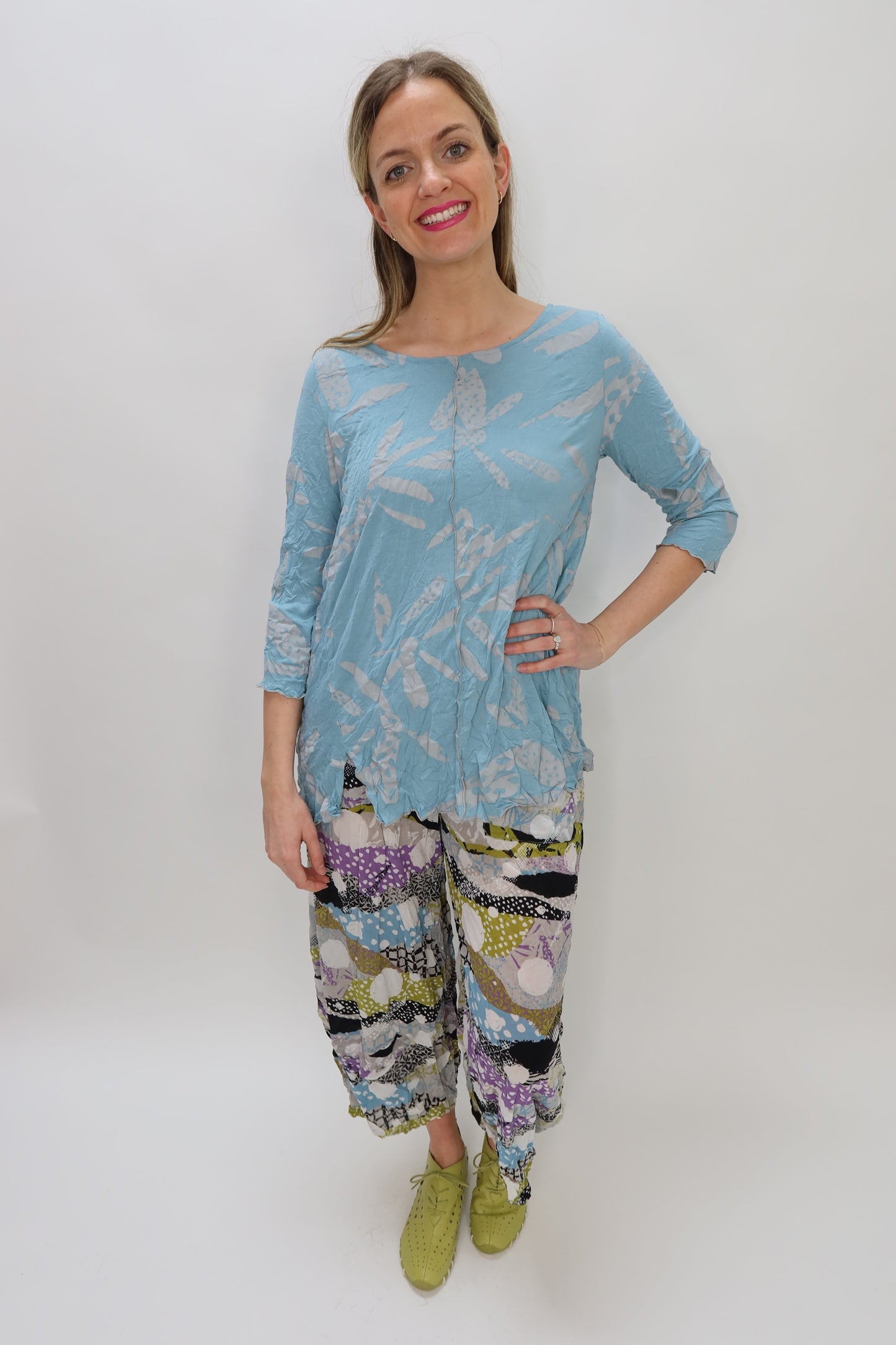 Sky Blue Dragonfly Wings Bamboo Crinkle Jersey 3/4 Sleeve Tunic