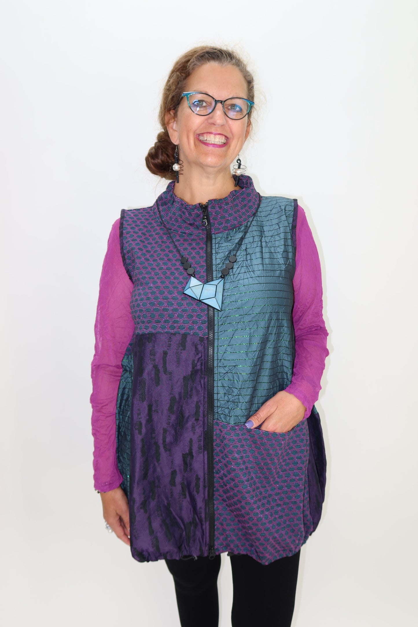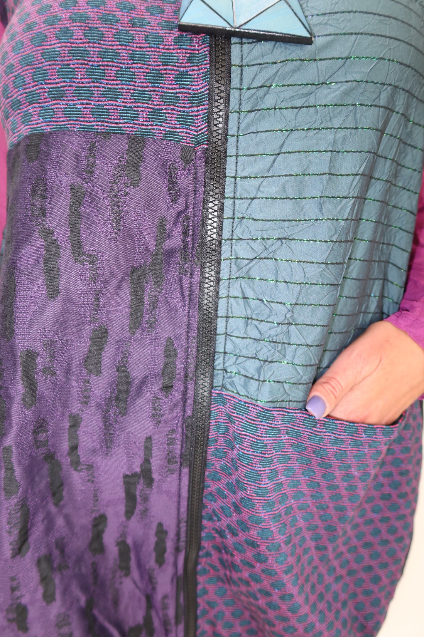 Purple and Teal Pattern Sleeveless Zip Up