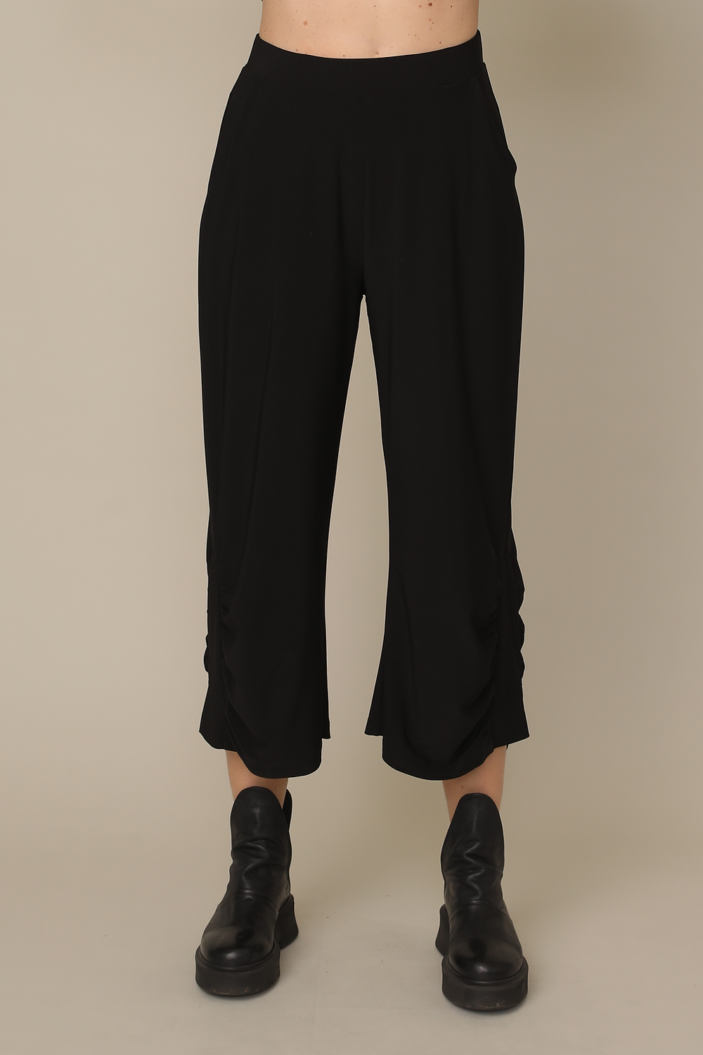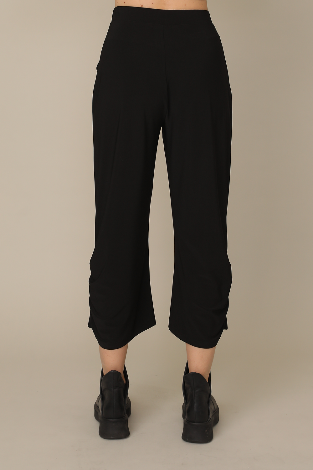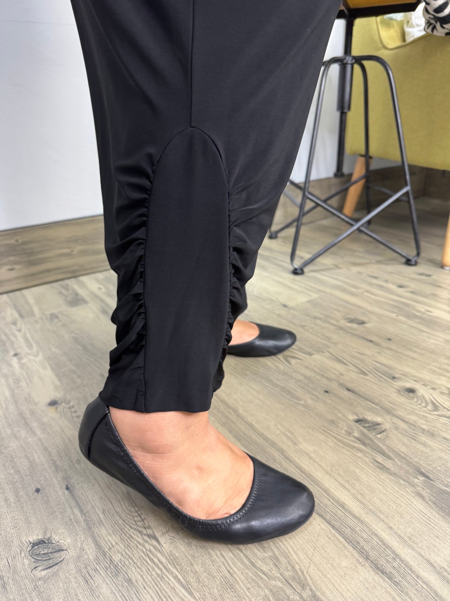 Elevate your wardrobe with the Black Nancy Trés Chic Crop Pant, designed for effortless style and comfort. These pull-on pants feature elegant ruching on the sides, adding a flattering detail that suits any figure. The wrinkle-resistant fabric keeps you looking polished all day, while the versatile crop length complements all heights. Perfect for dressing up or down, these pants blend ease and sophistication in one chic package.