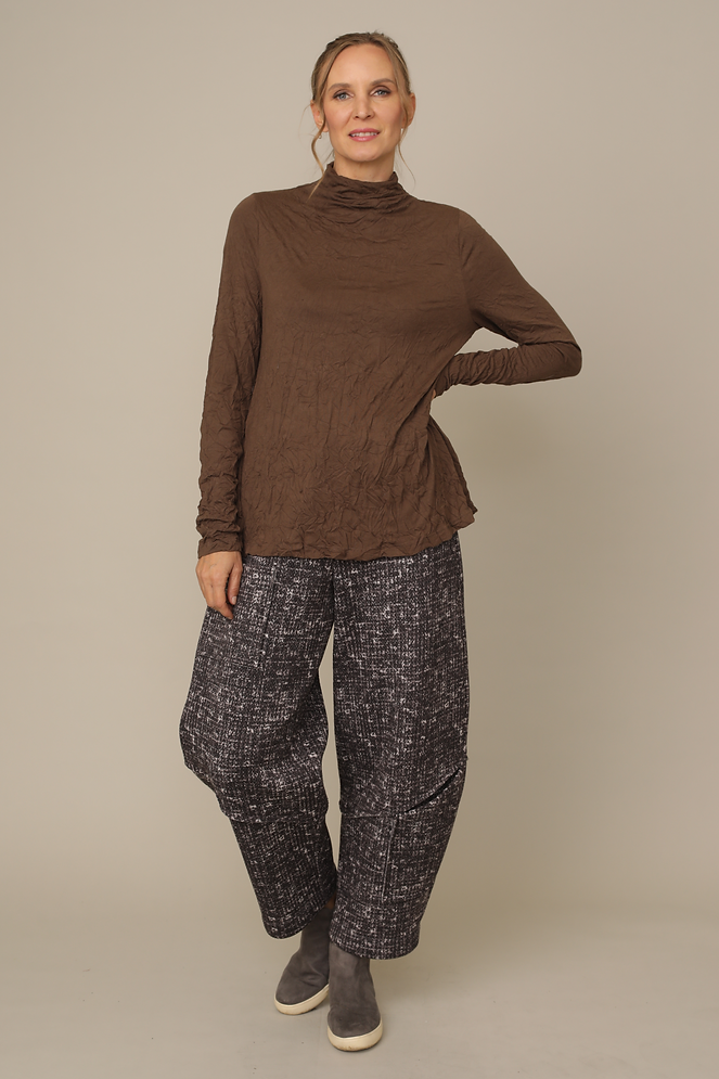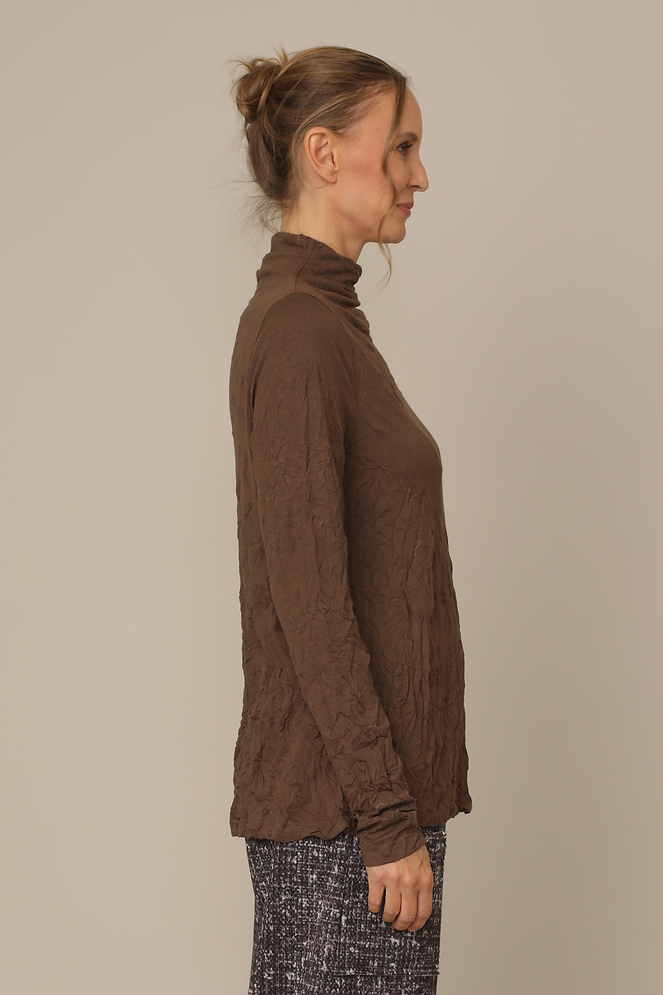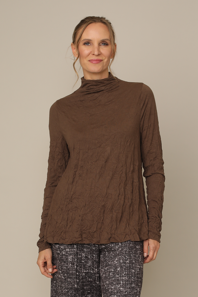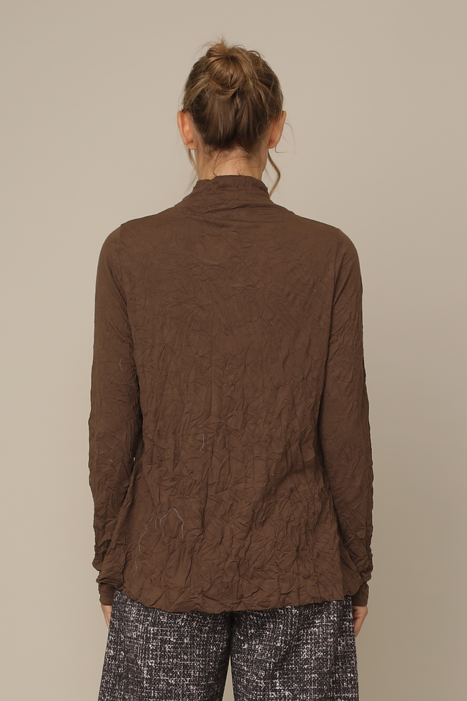 Chocolate Brown Crinkle Jersey Mock Neck Top