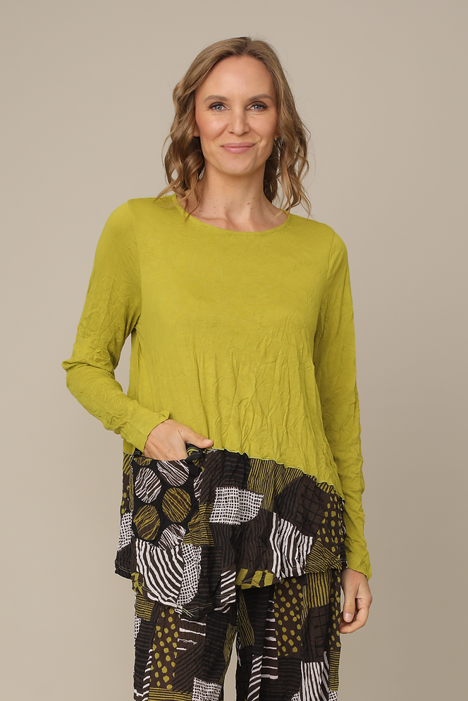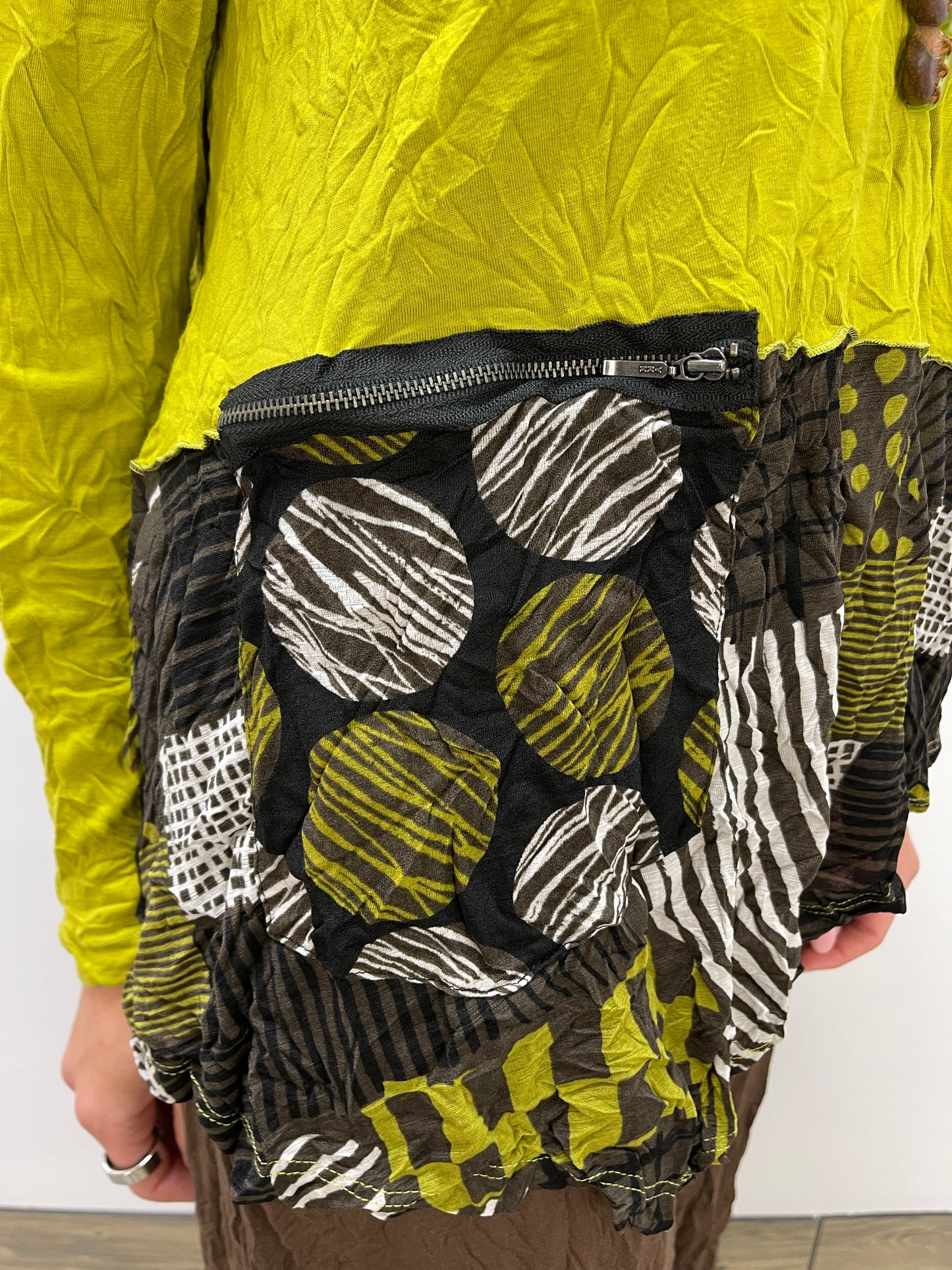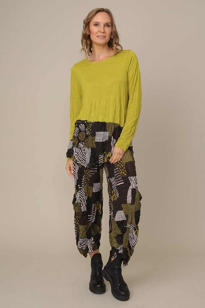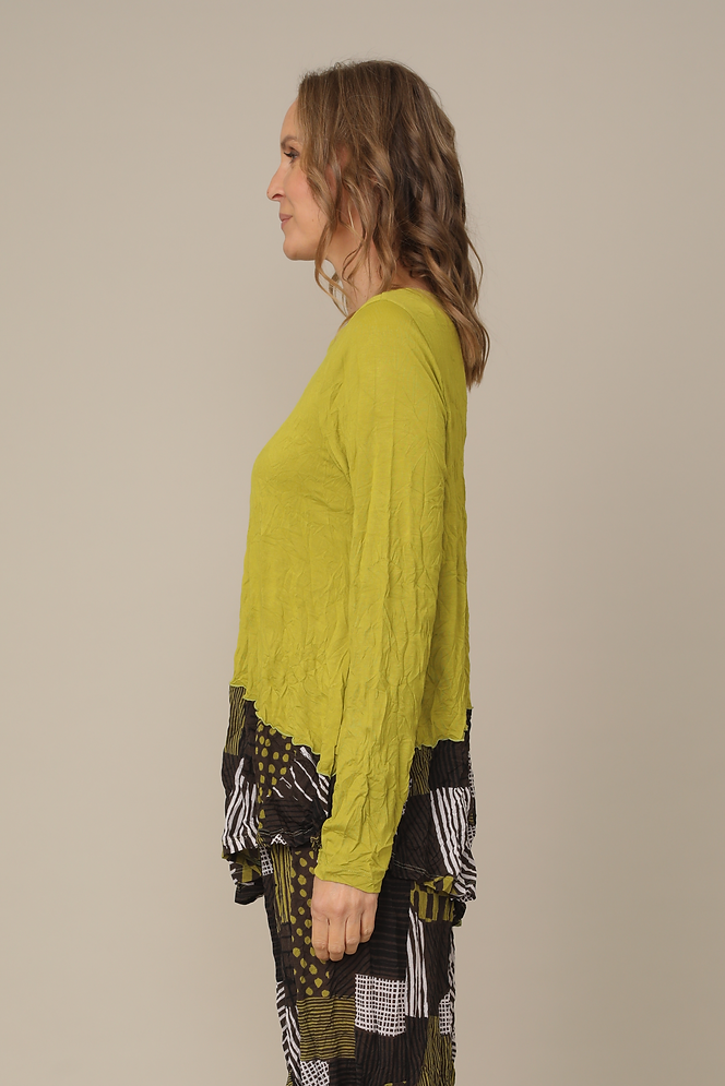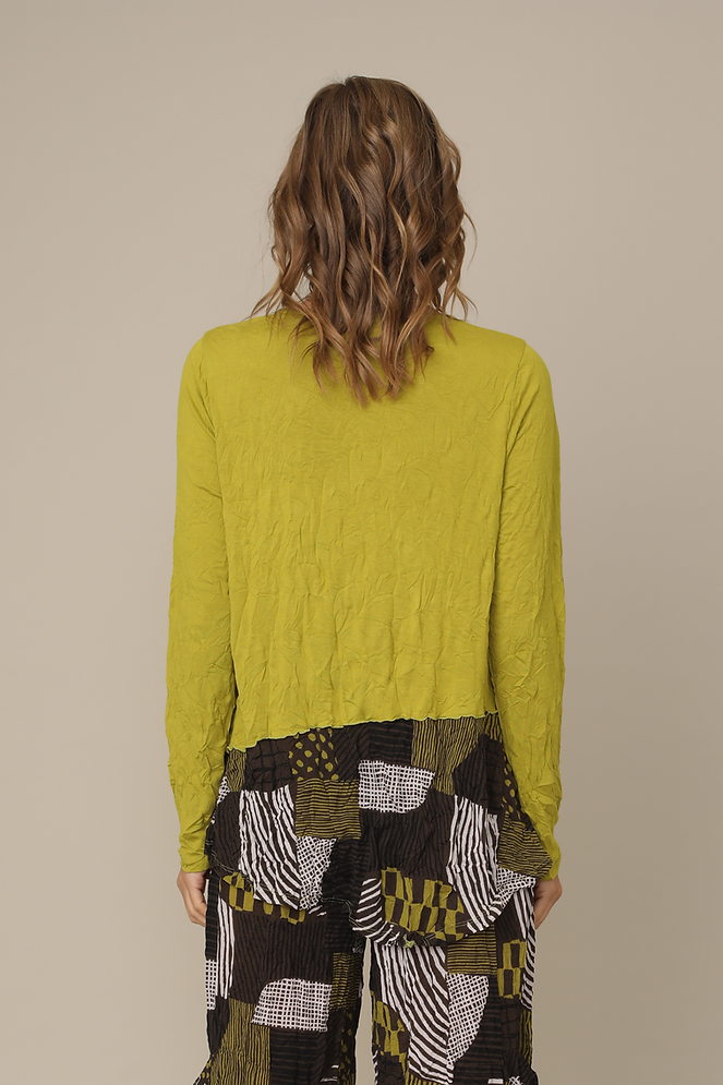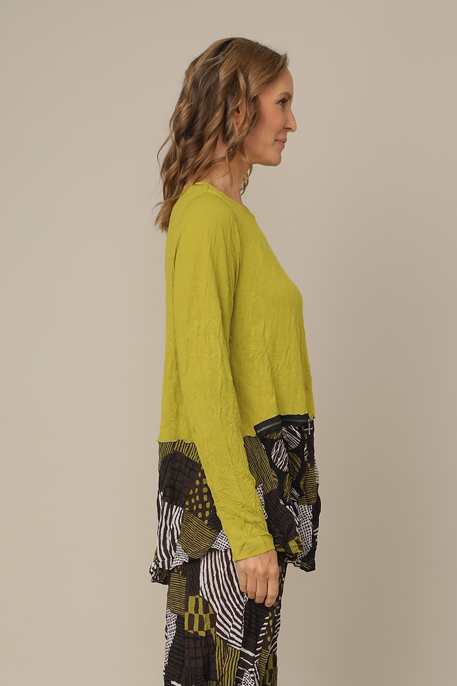 Deep Lime Crinkle Patch Pattern Detail Top with Zipper Pocket
