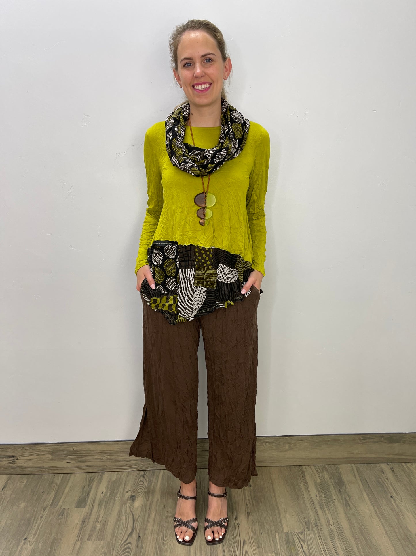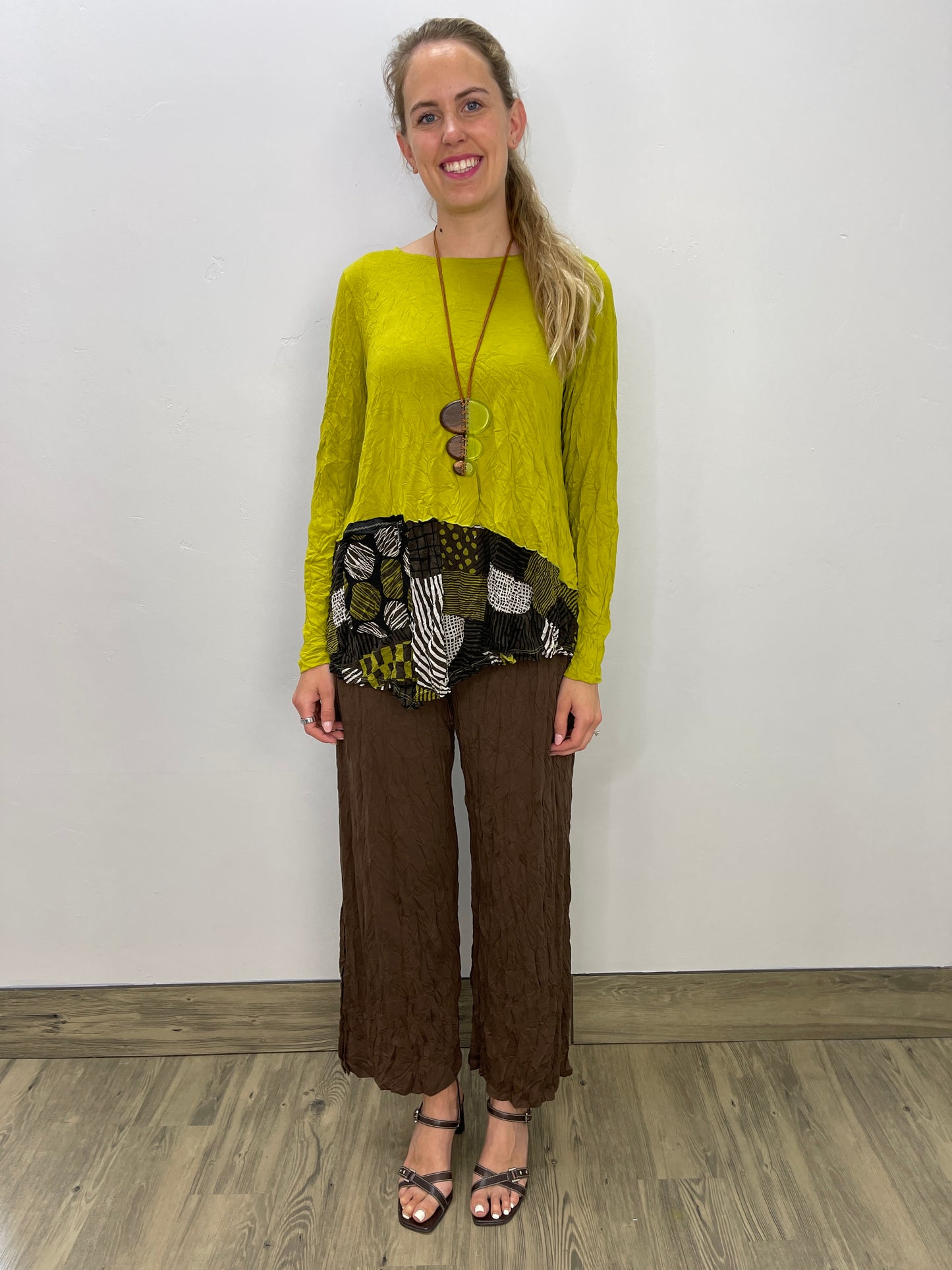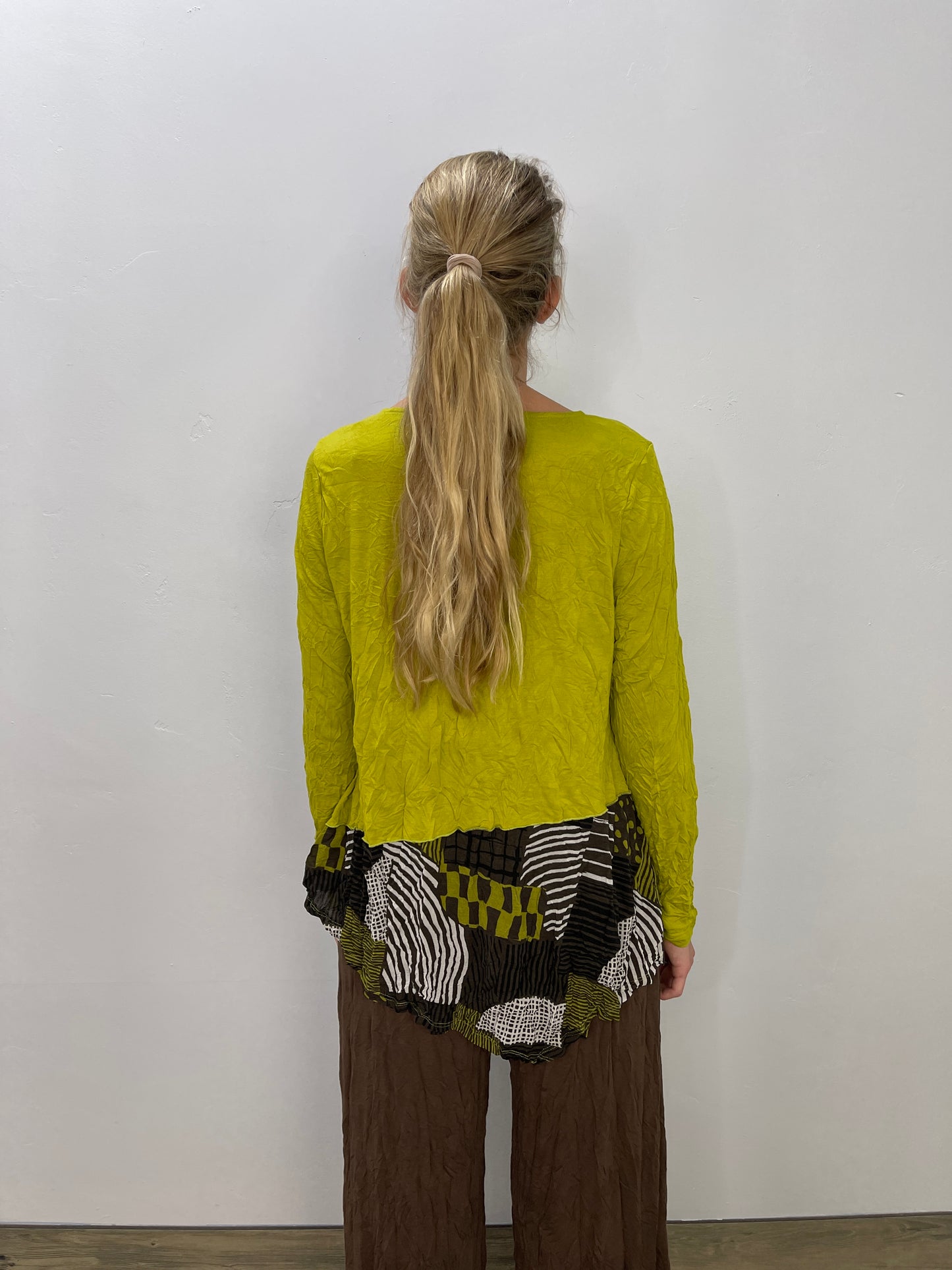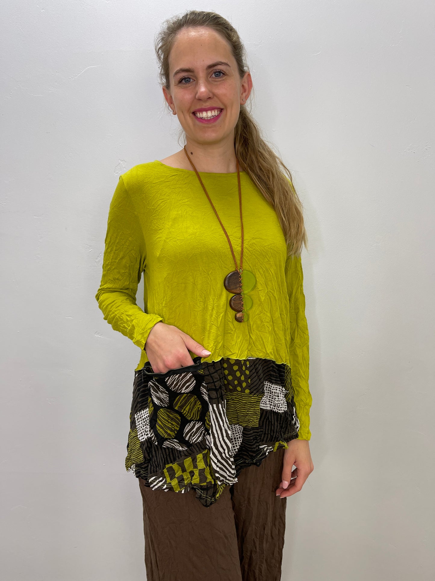 Deep Lime Crinkle Patch Pattern Detail Top with Zipper Pocket