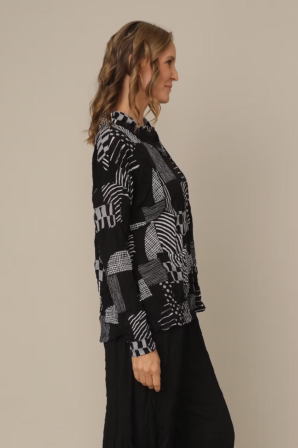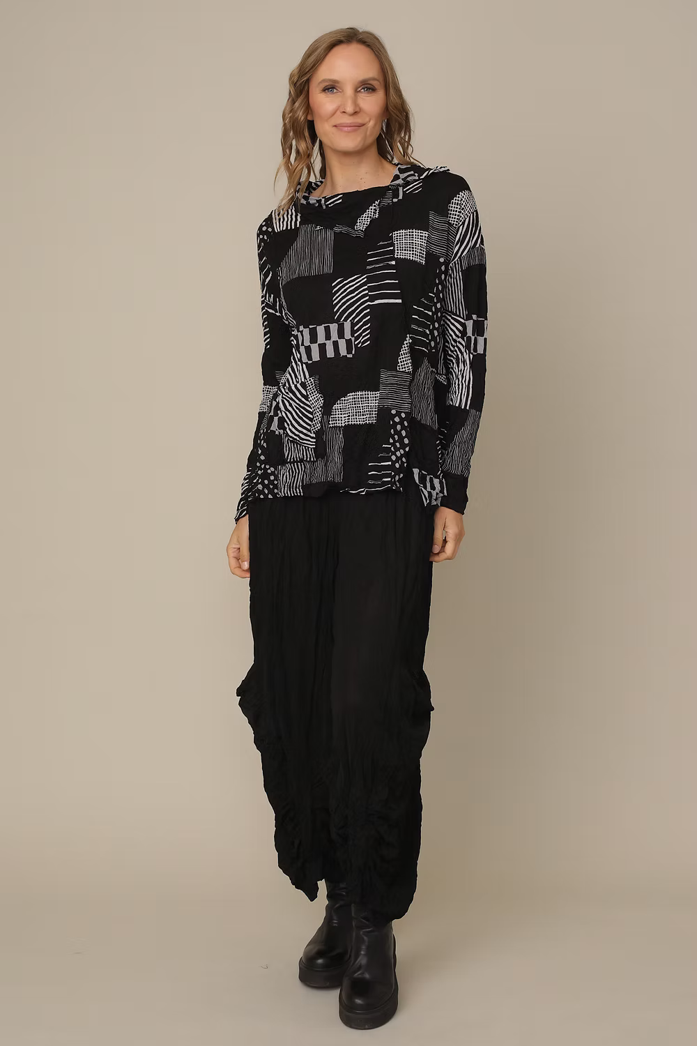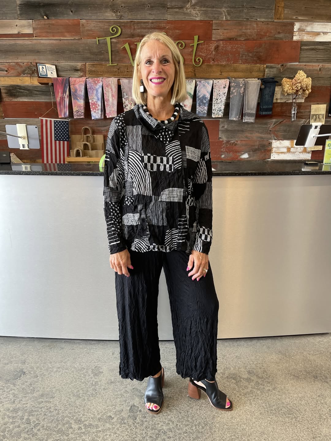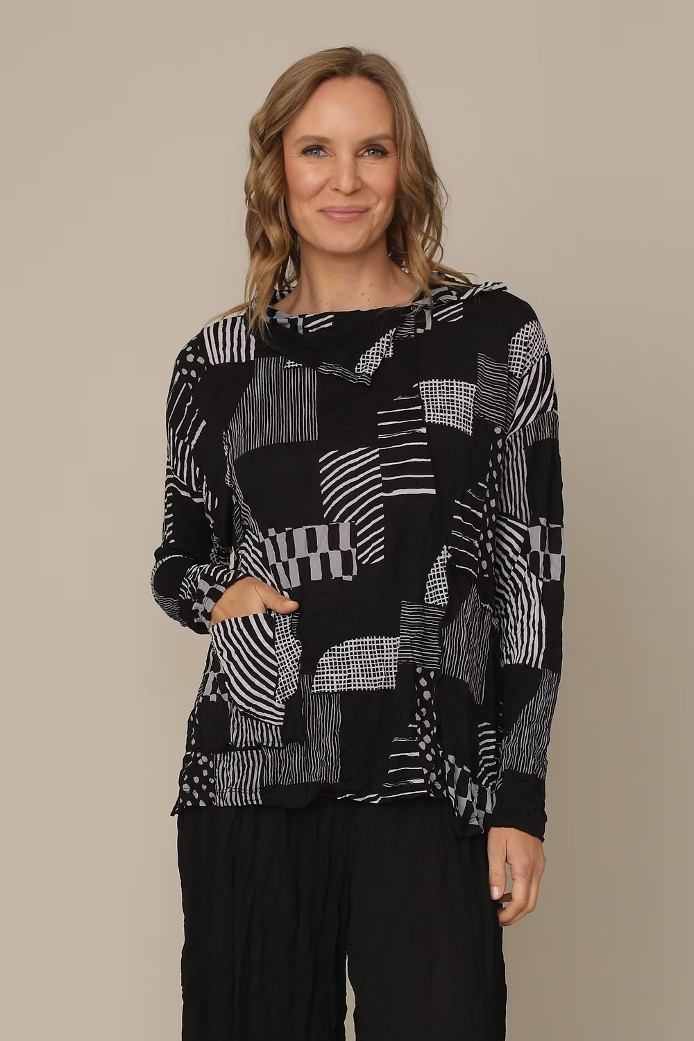 Elevate your wardrobe with our Chalet Mineral Hash Pattern Long Sleeve Top. Featuring an adorable drop asymmetrical neckline and long sleeves, this top combines comfort with a playful pattern that captures the season’s spirit. Perfect for layering or wearing on its own, it adds a stylish twist to any outfit while keeping you cozy during cooler days.