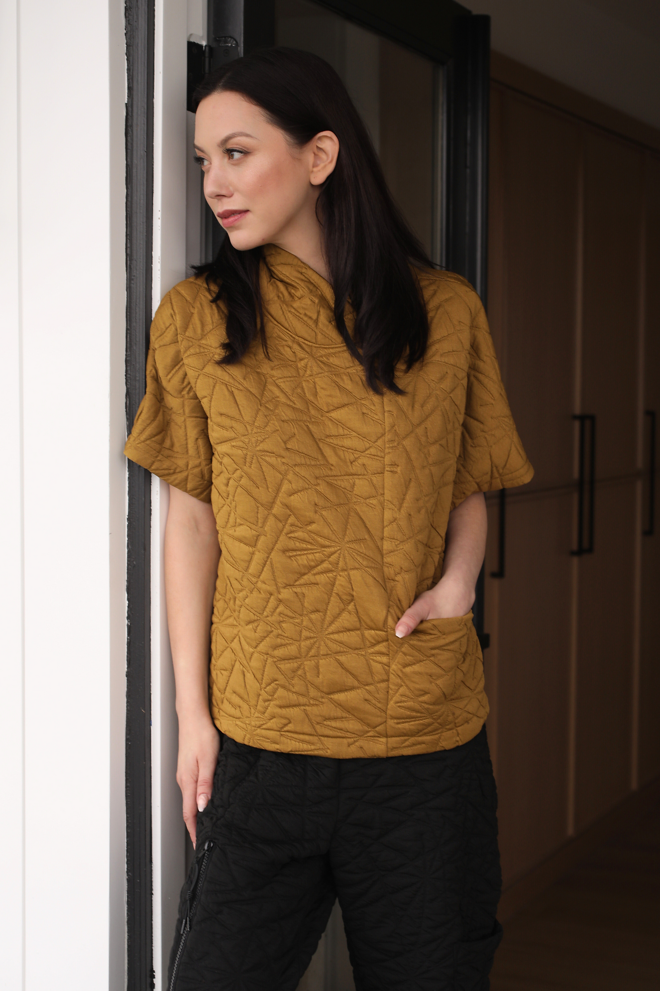 Stay comfortably warm this fall with our Mustard Yellow Novelty Puff Jacquard Top. Featuring cozy elbow sleeves and a convenient front pocket, it’s designed to keep you snug while adding a touch of style to your seasonal wardrobe. Perfect for layering or wearing on its own, this top blends comfort with functionality effortlessly.