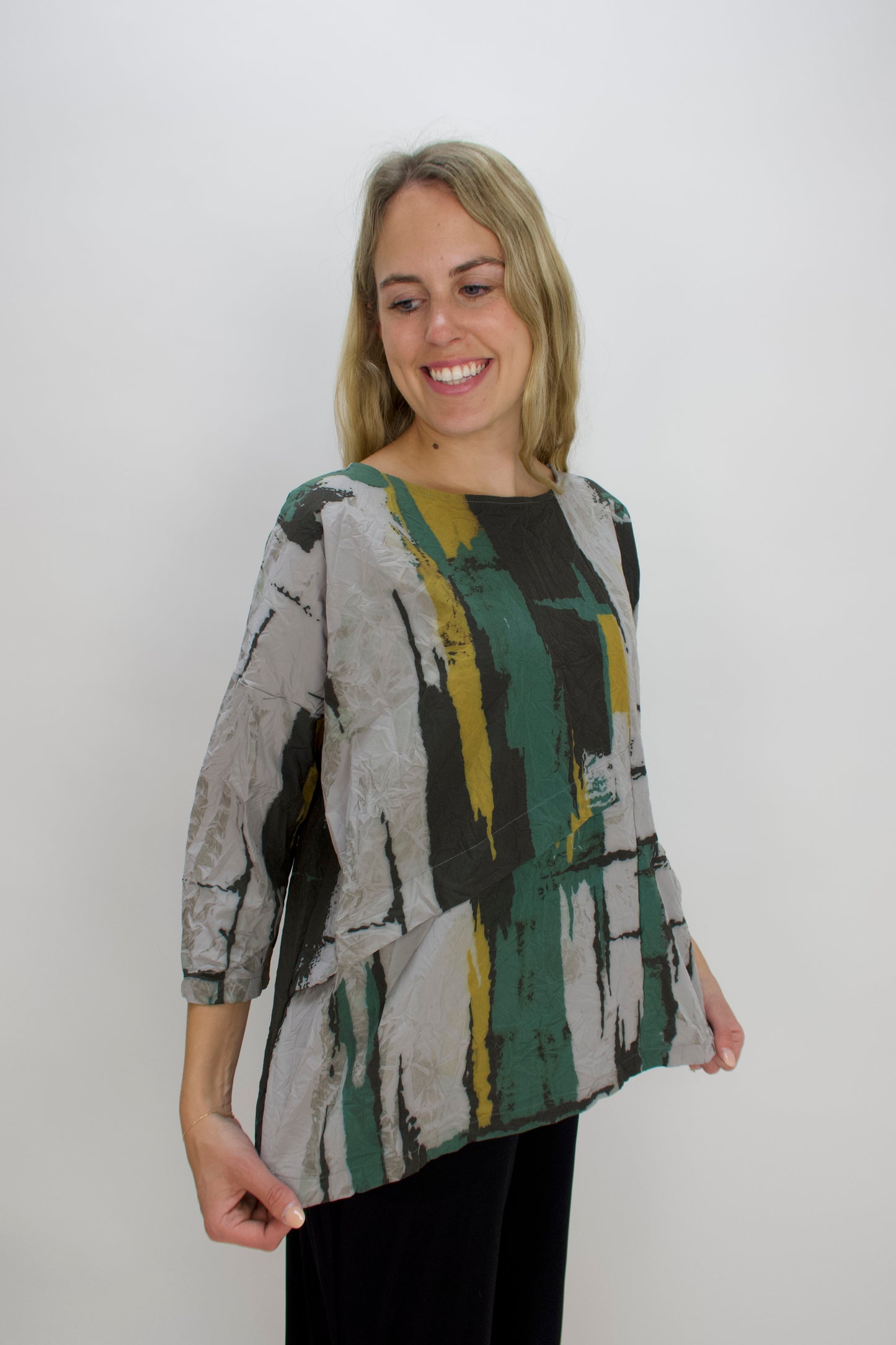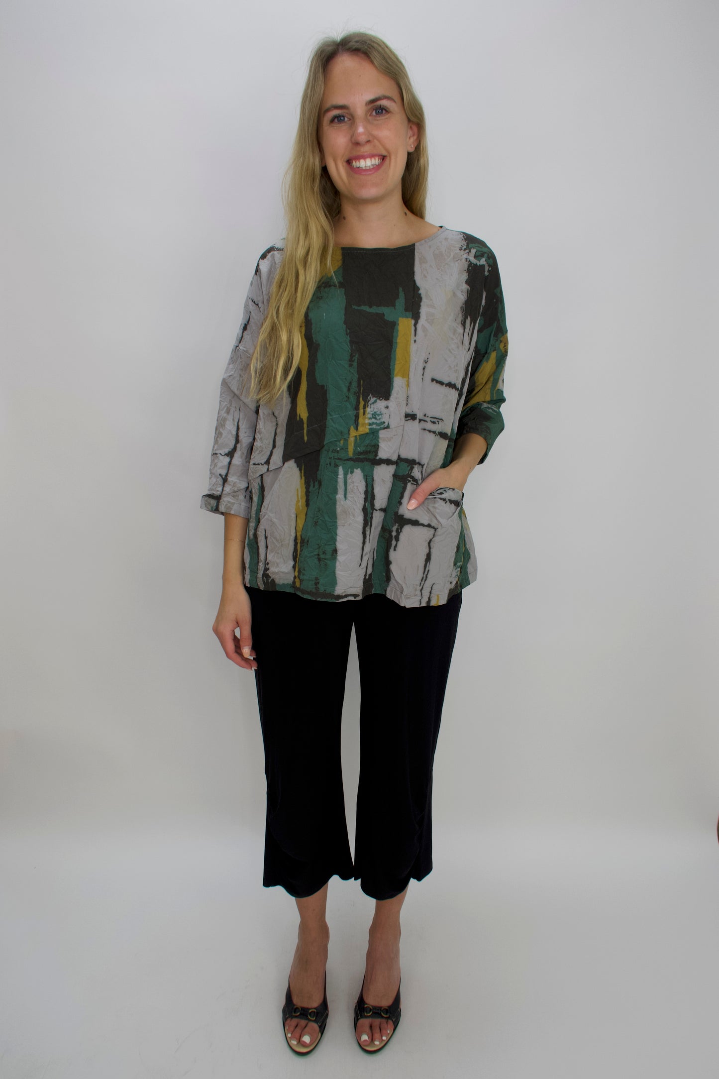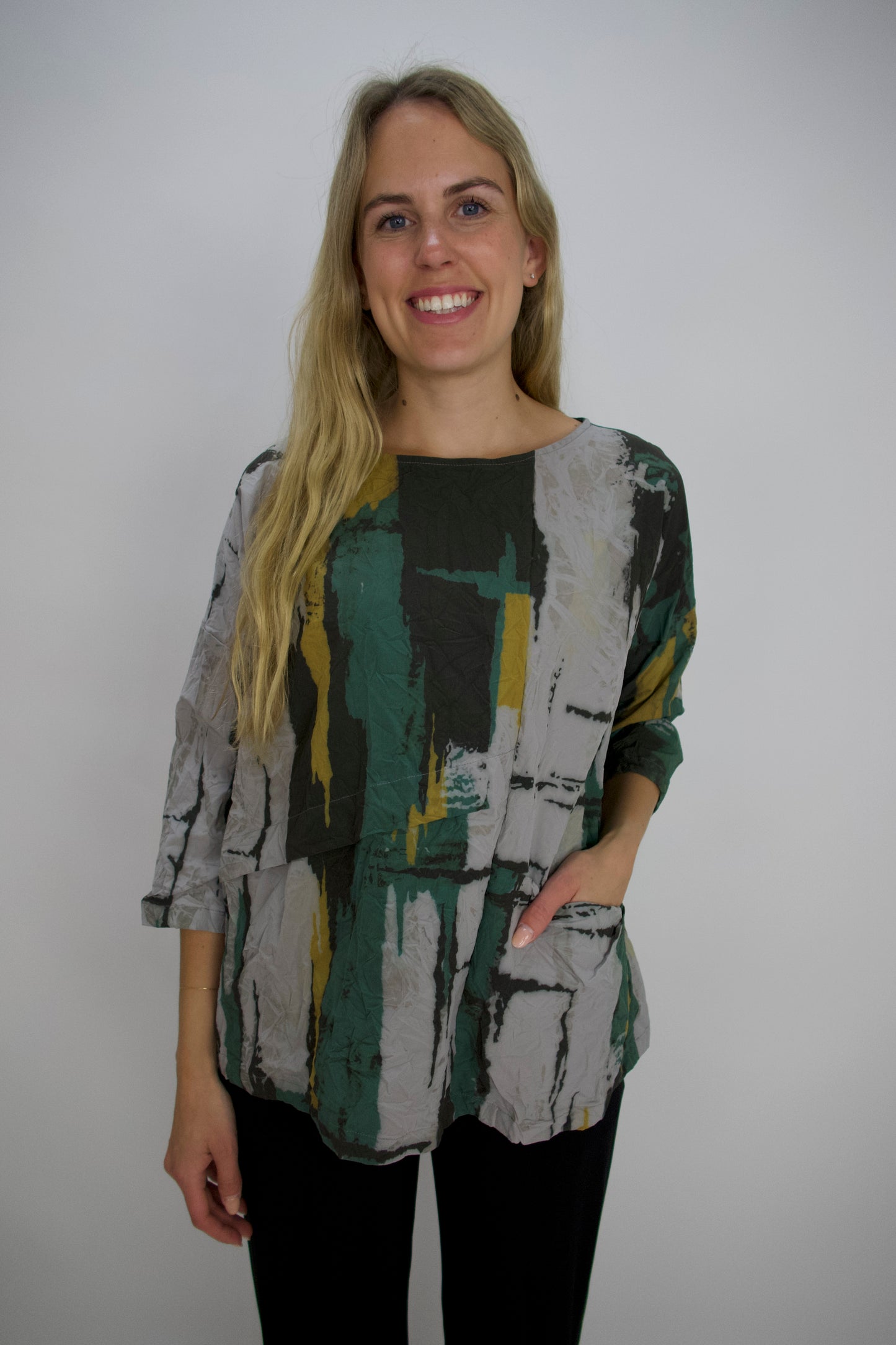 Pine Green Pattern Parachute Euro Crush 3/4 Sleeve Top