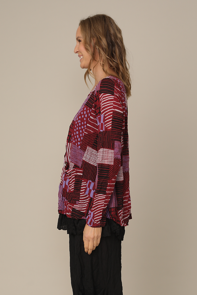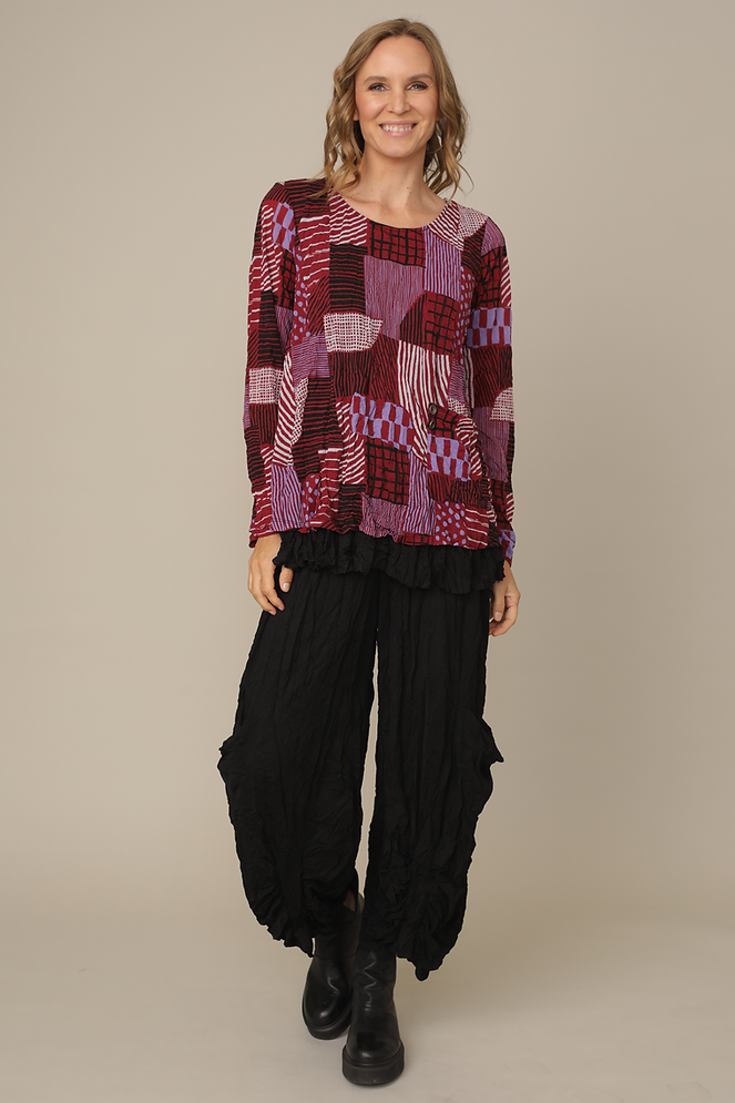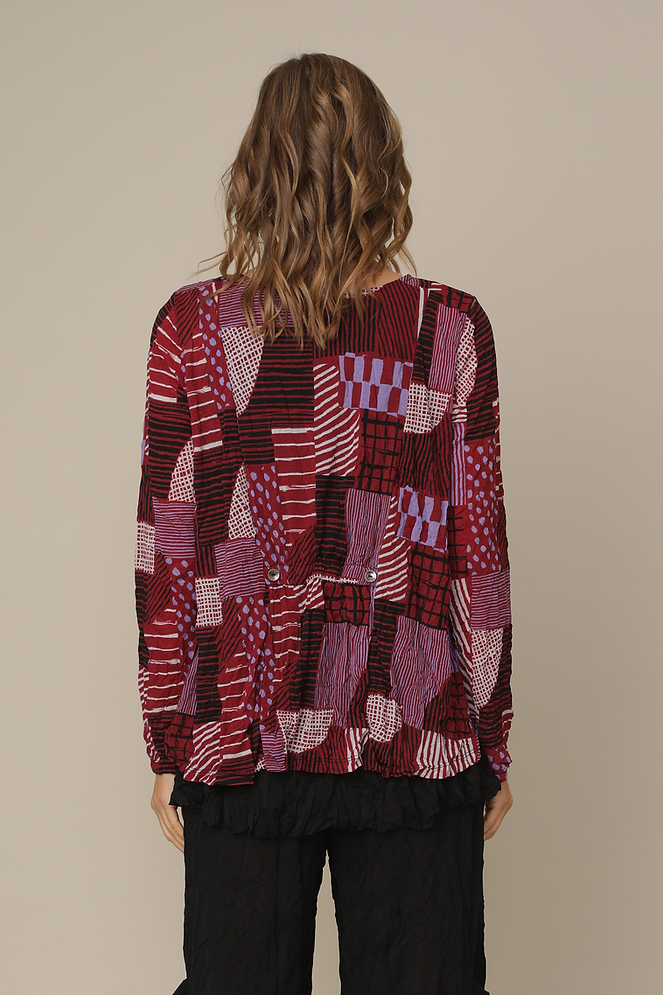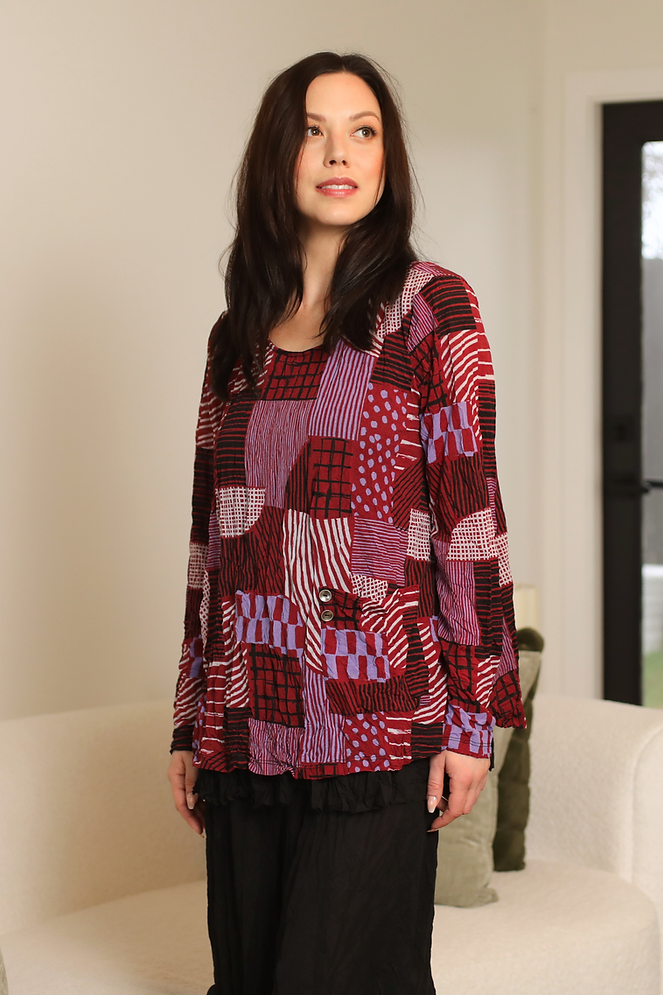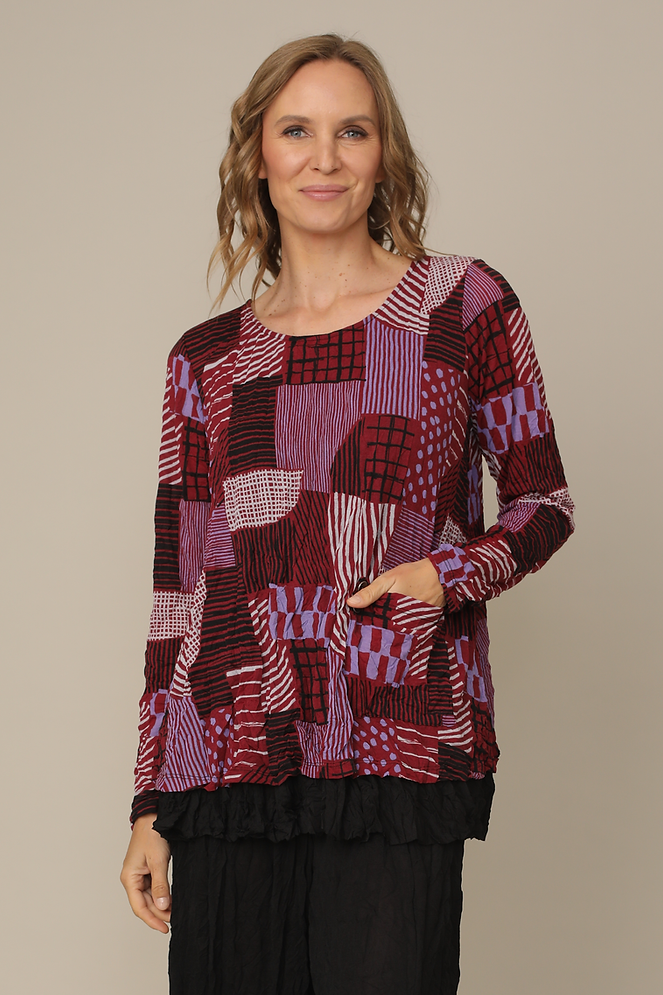 Ruby Red Hashtag Pattern Gizel Top with Pocket