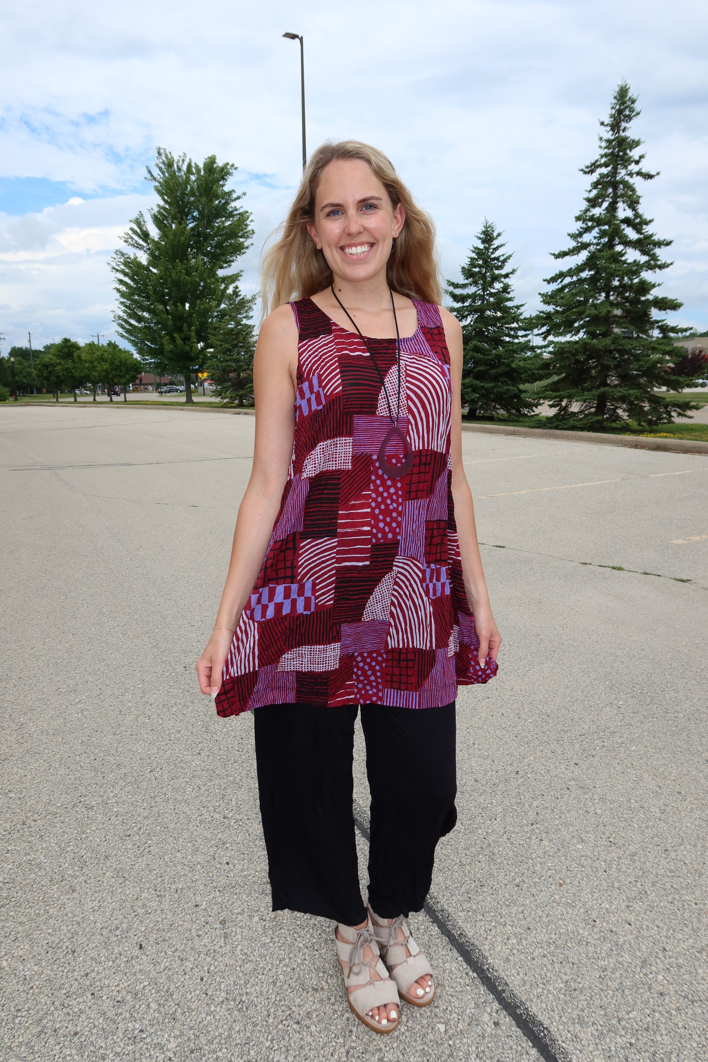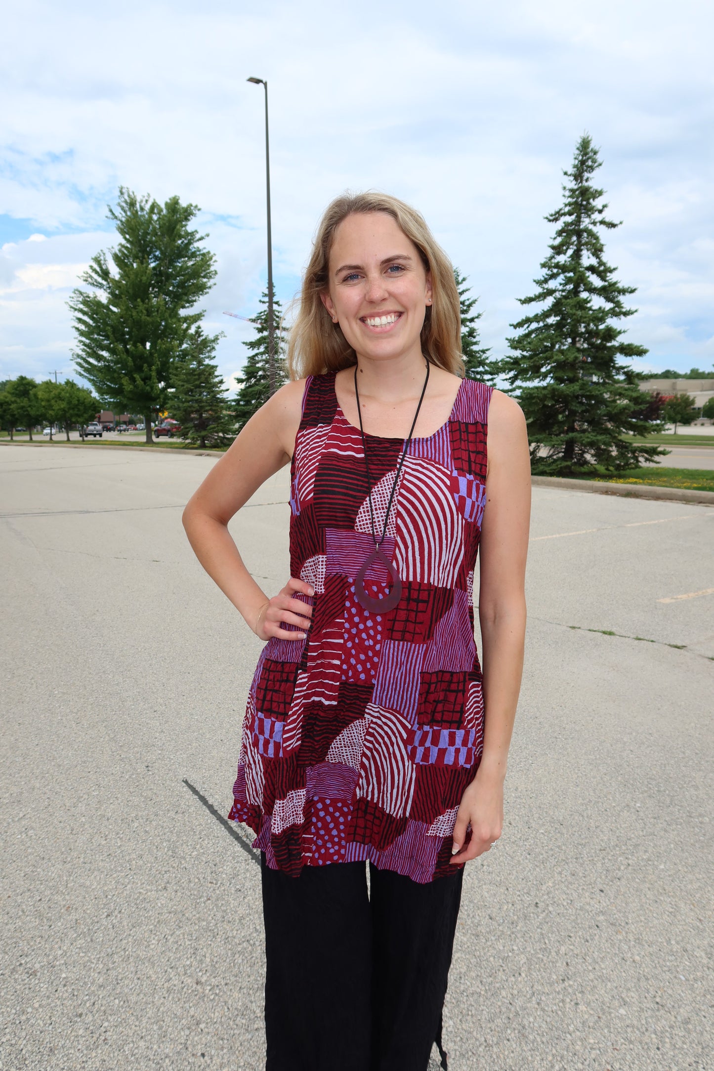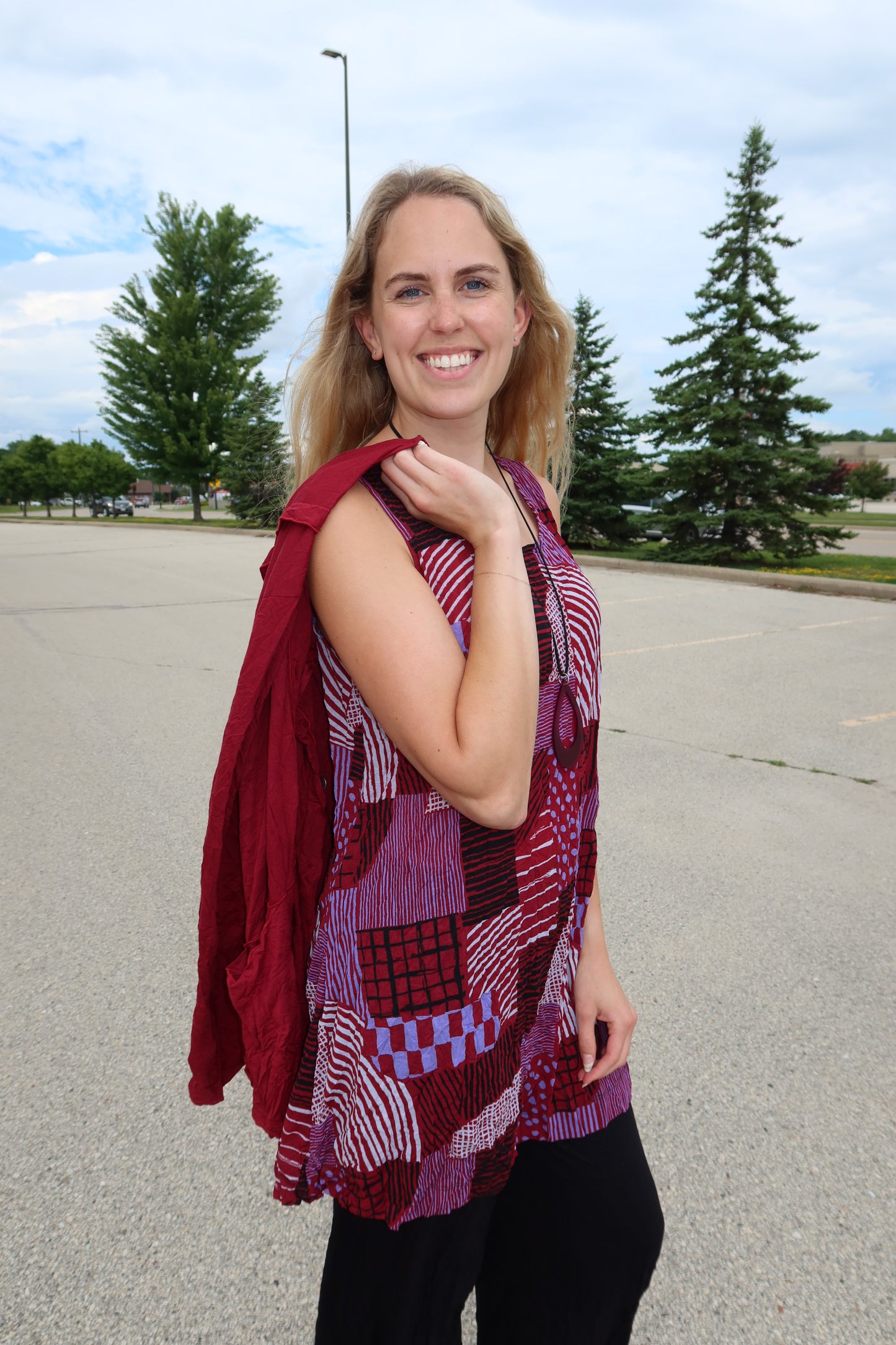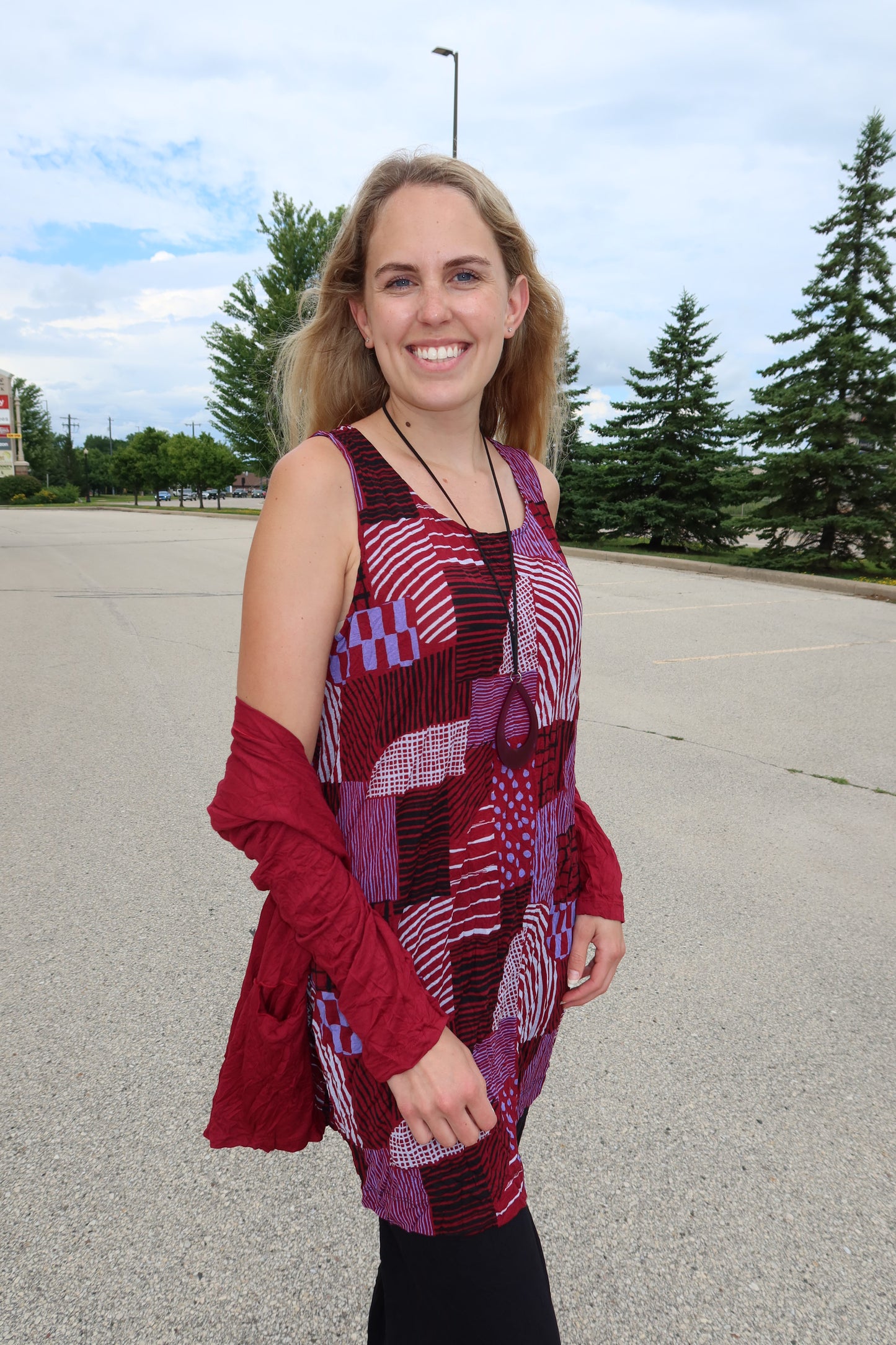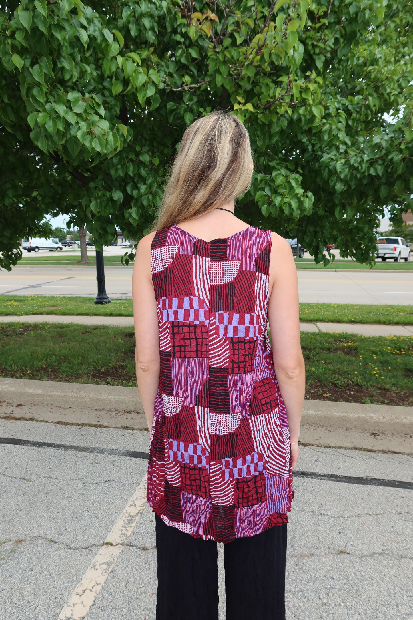 Ruby Red Hash Pattern Liz Crinkle Tank