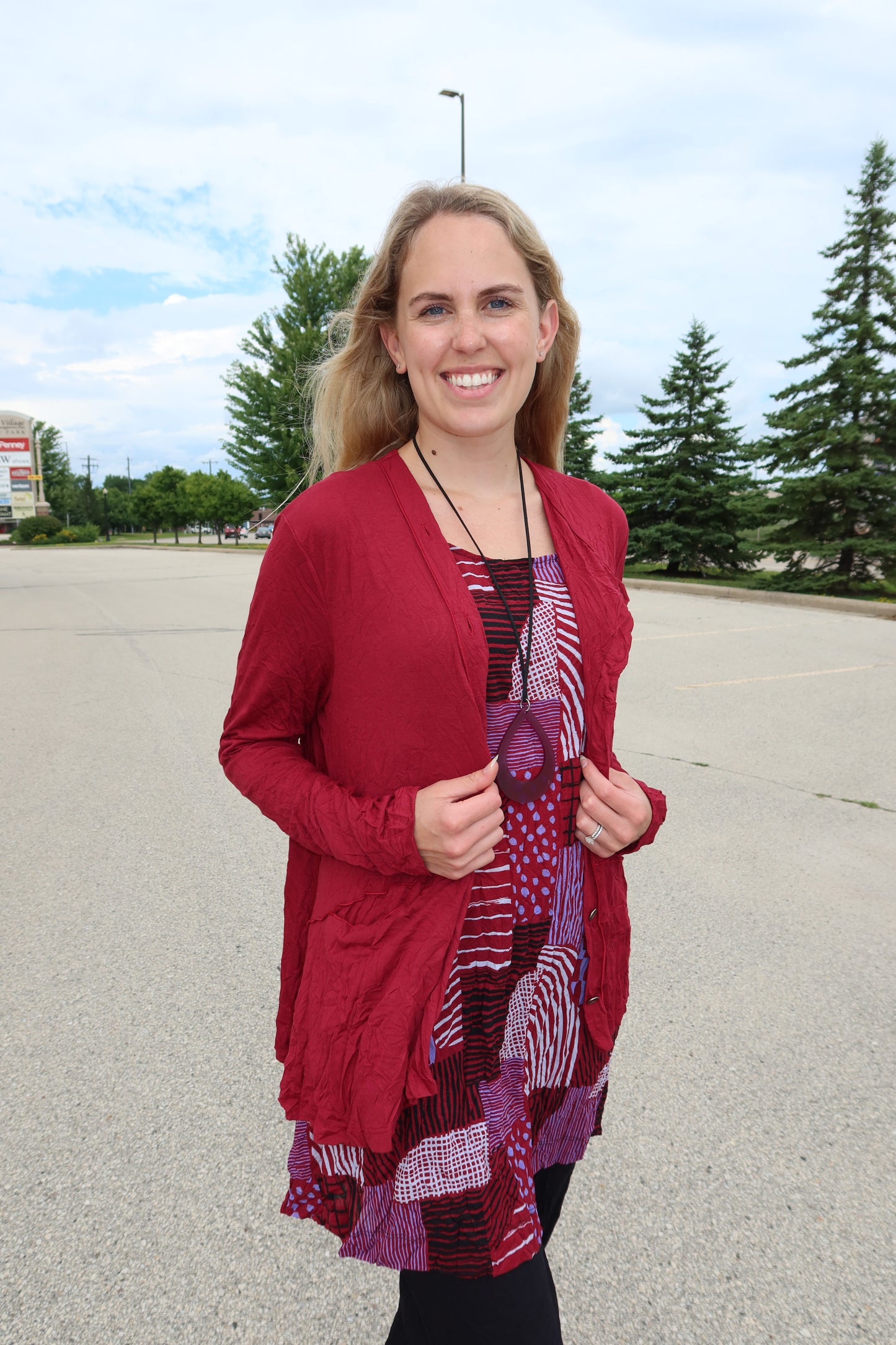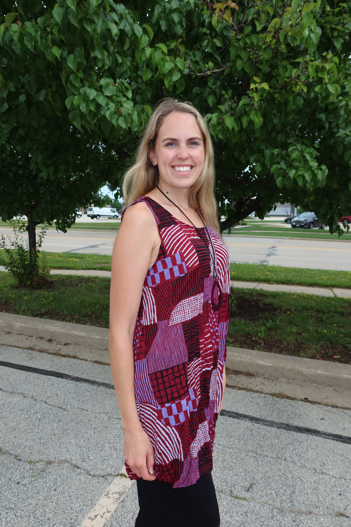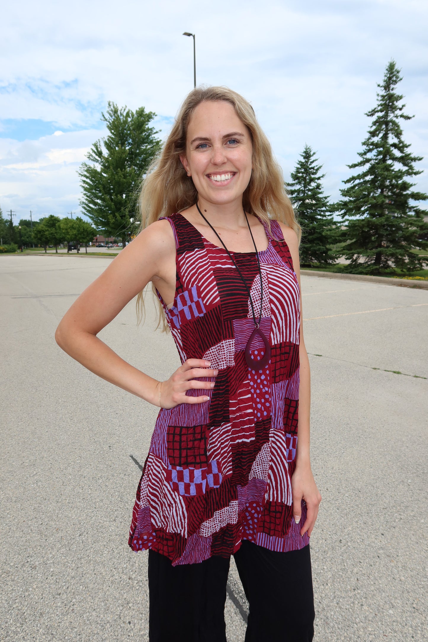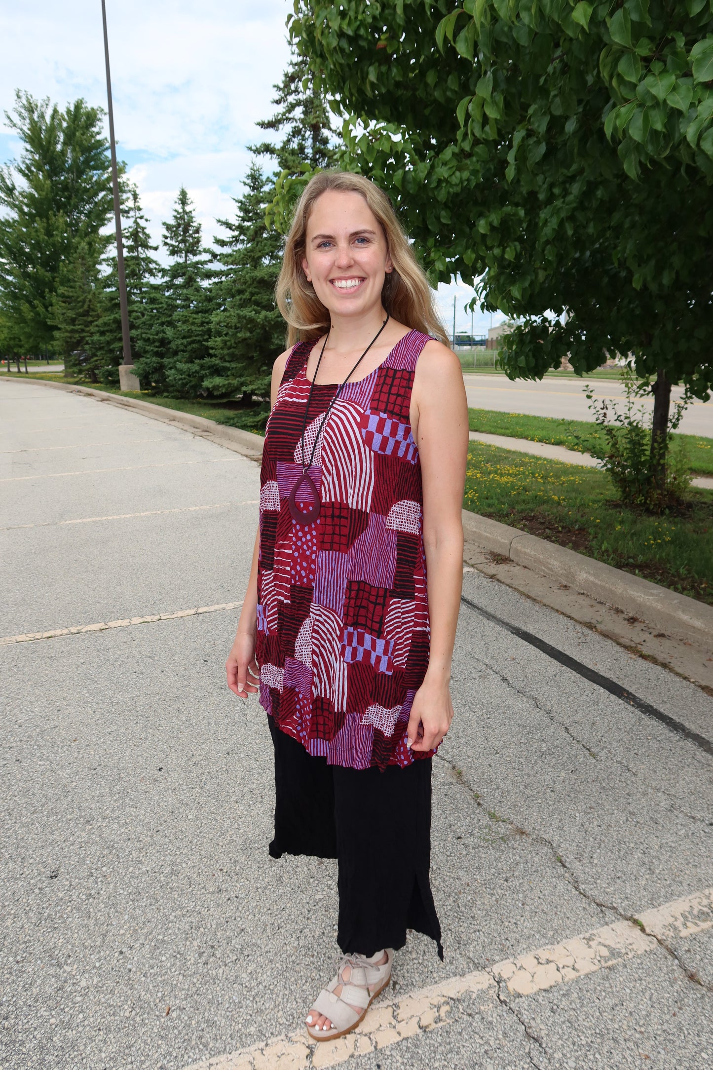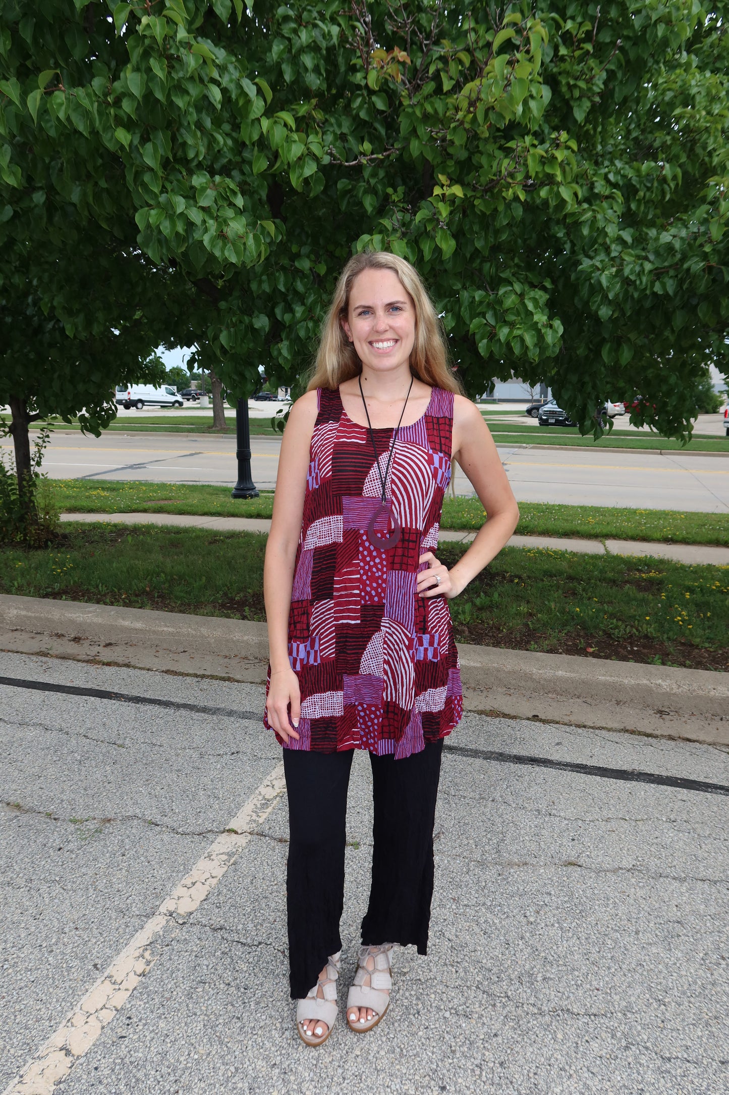 Ruby Red Hash Pattern Liz Crinkle Tank
