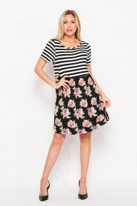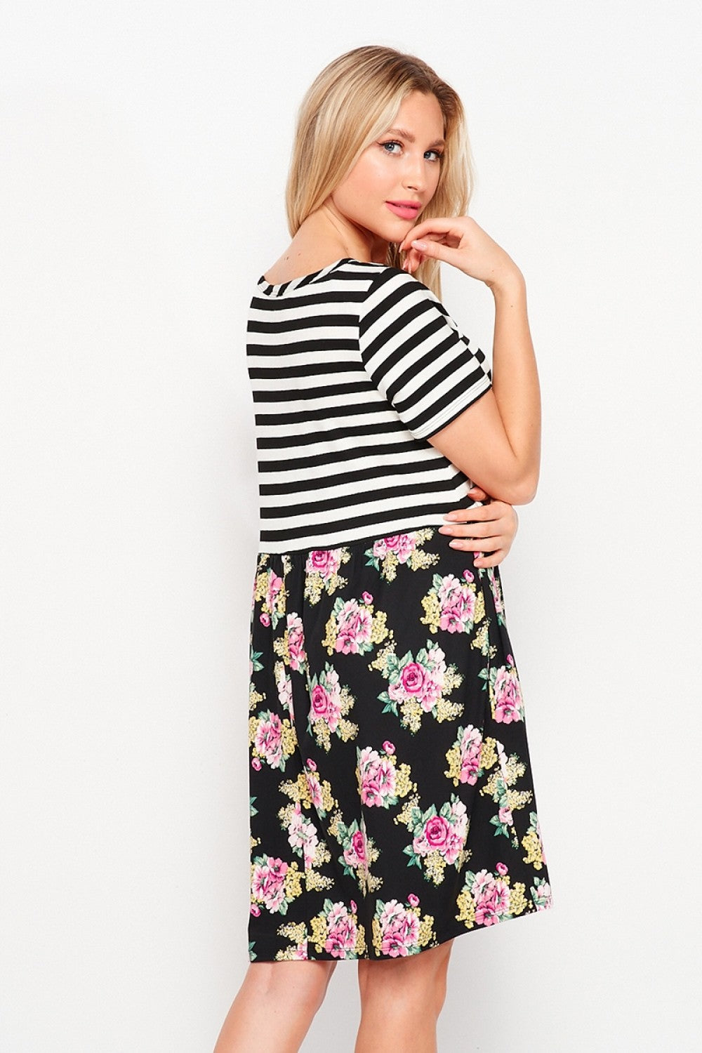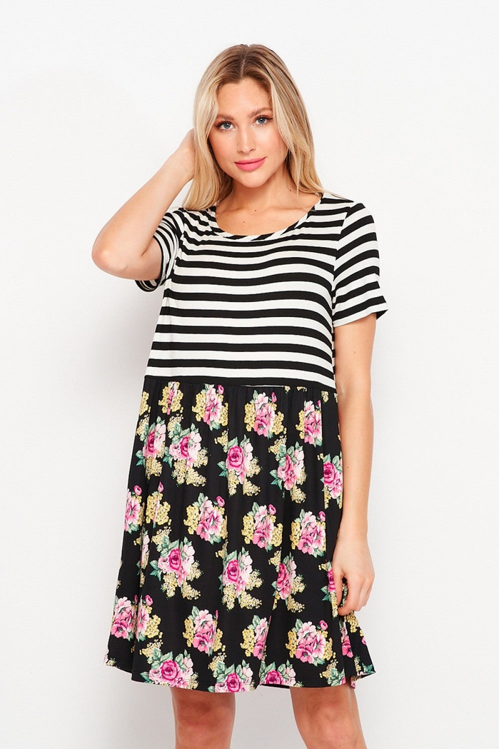 Regular price $24.50Look effortlessly cute in this super fun babydoll dress! Featuring a stripe top and floral bottom, this dress is perfect for any occasion. With soft fabric and a knee length cut, you'll be both comfortable and stylish!