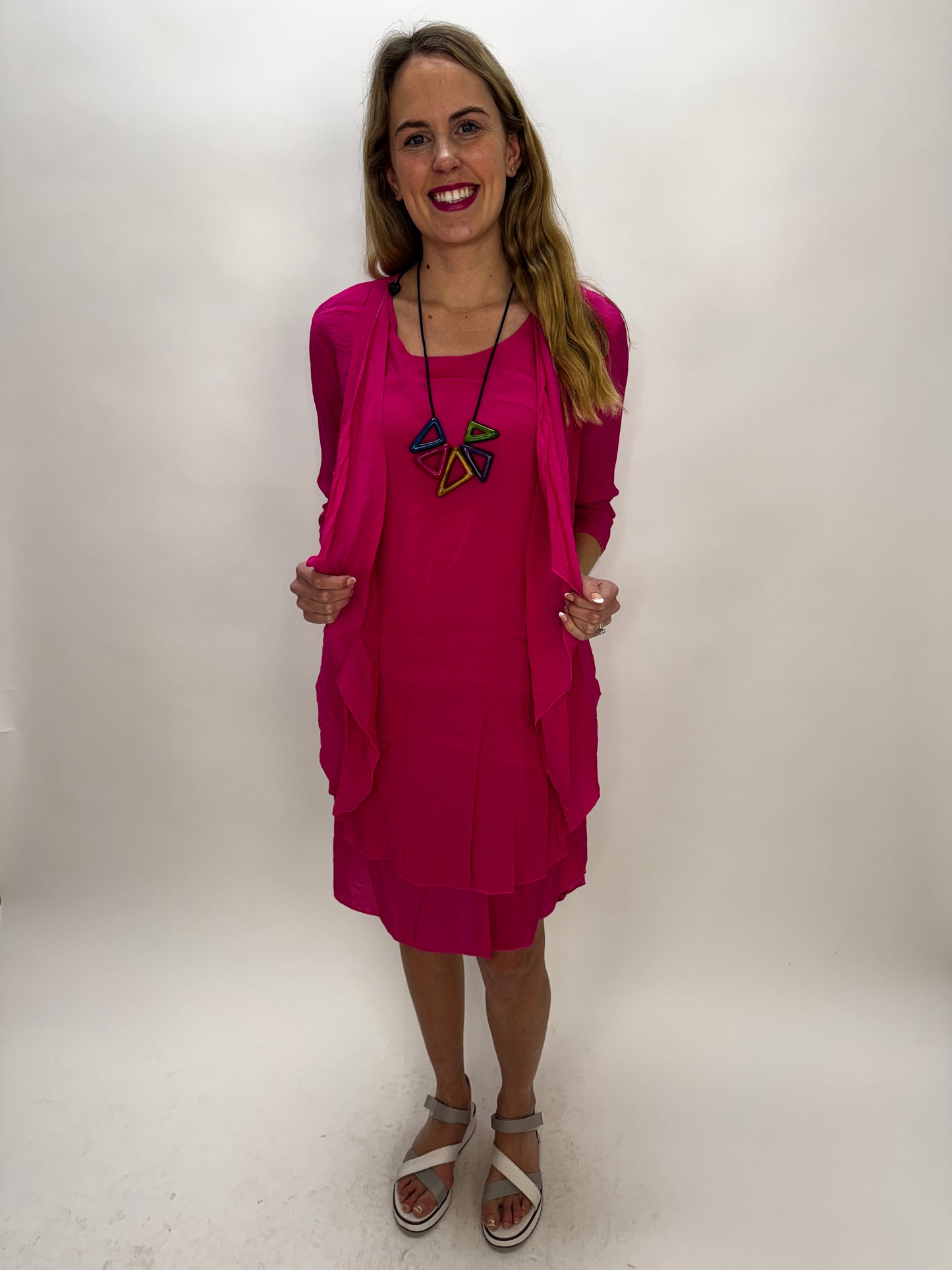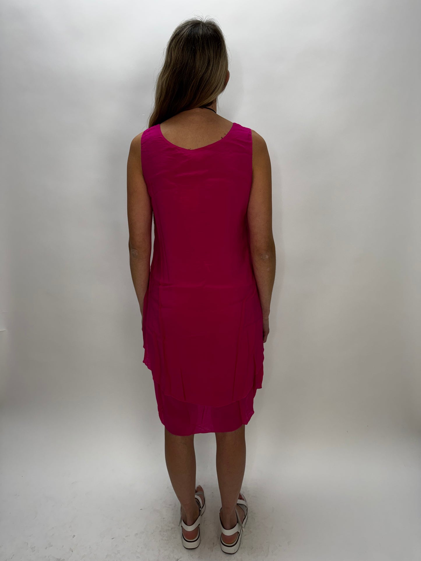 Fuchsia Pink Front Pleat Sleeveless Cotton Dress