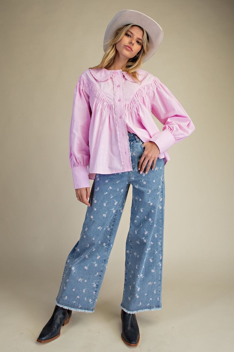 Dusty Magenta Pink Flower Patch Washed 100% Cotton Slub Top