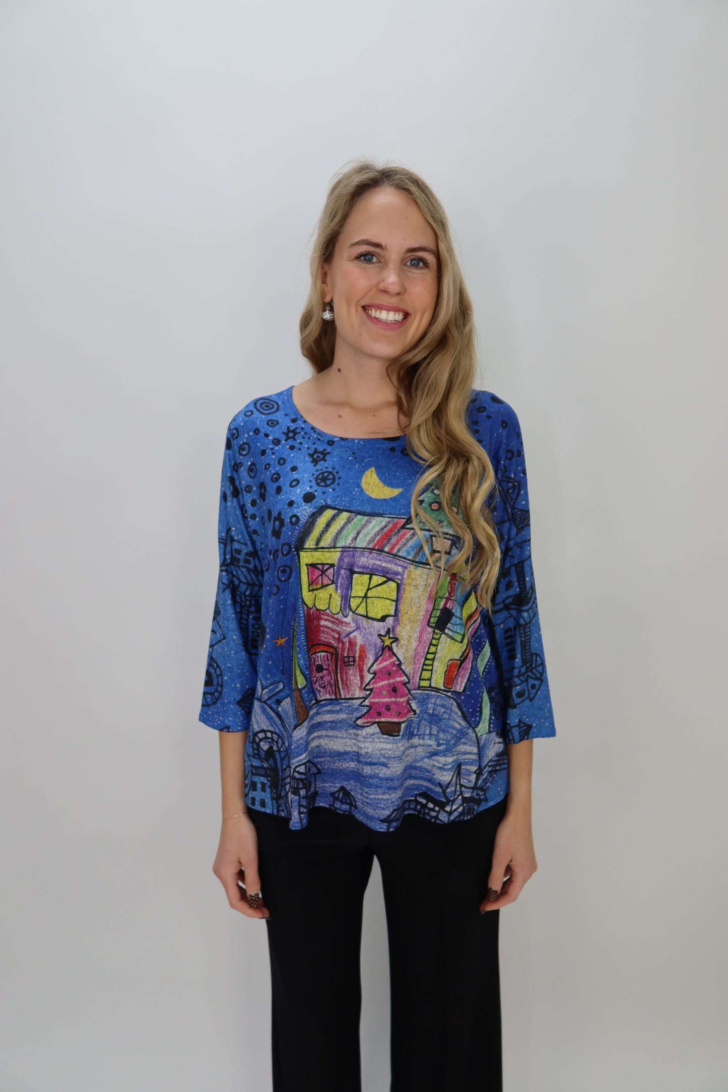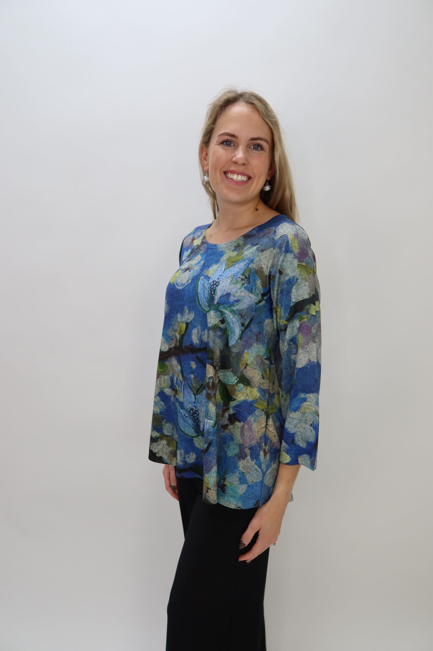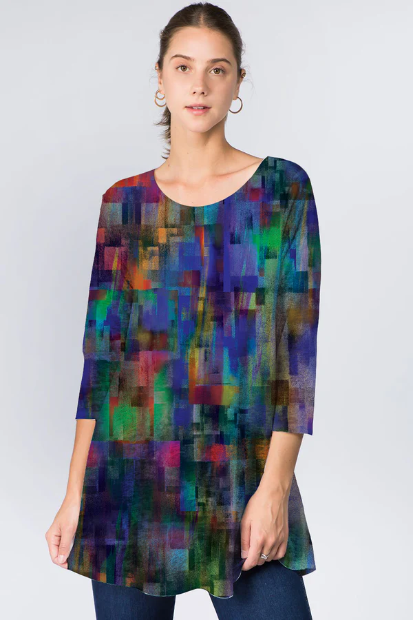 Northern Lights Watercolor 3/4 Sleeve Hacci A-Line Top
