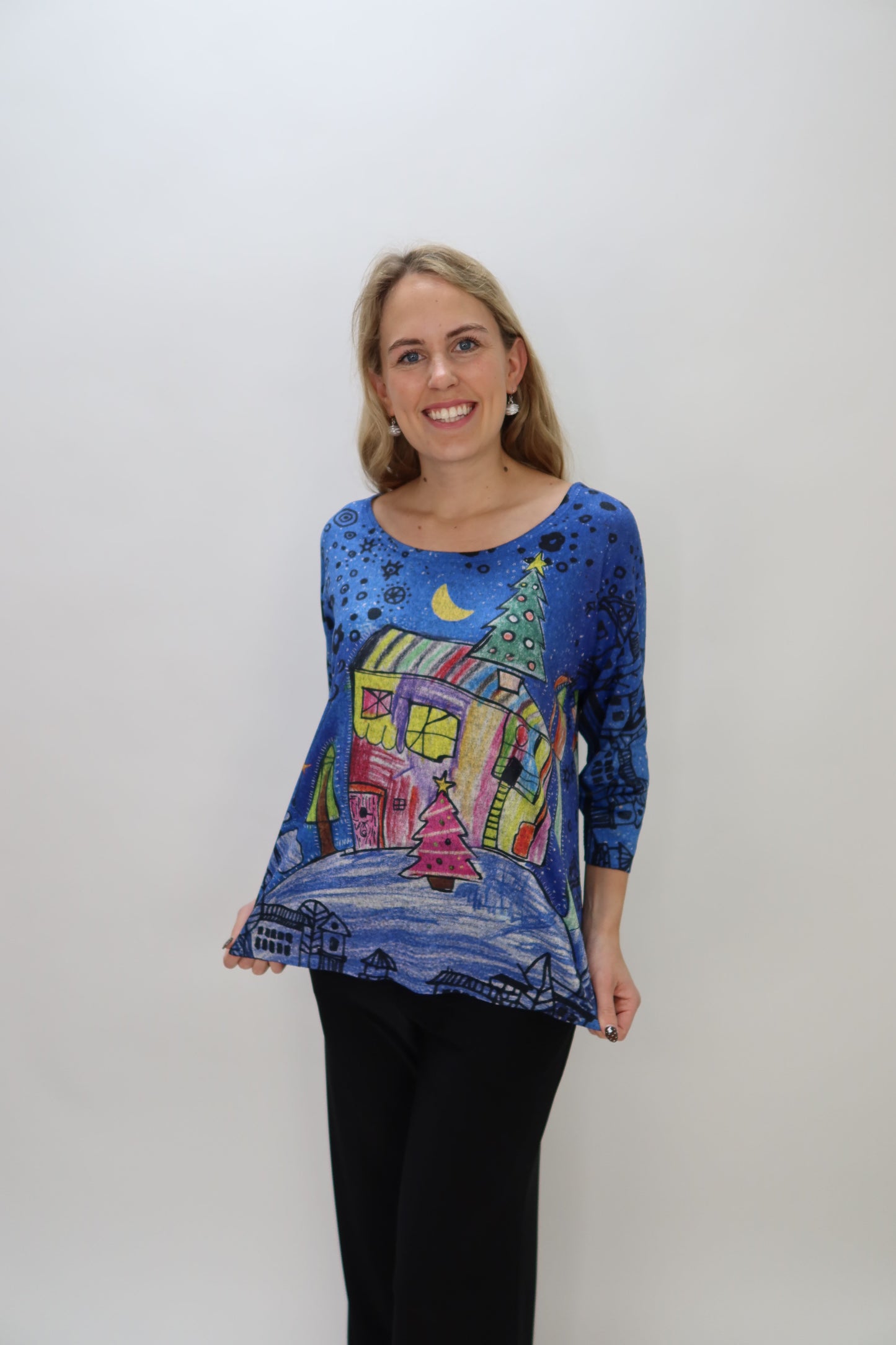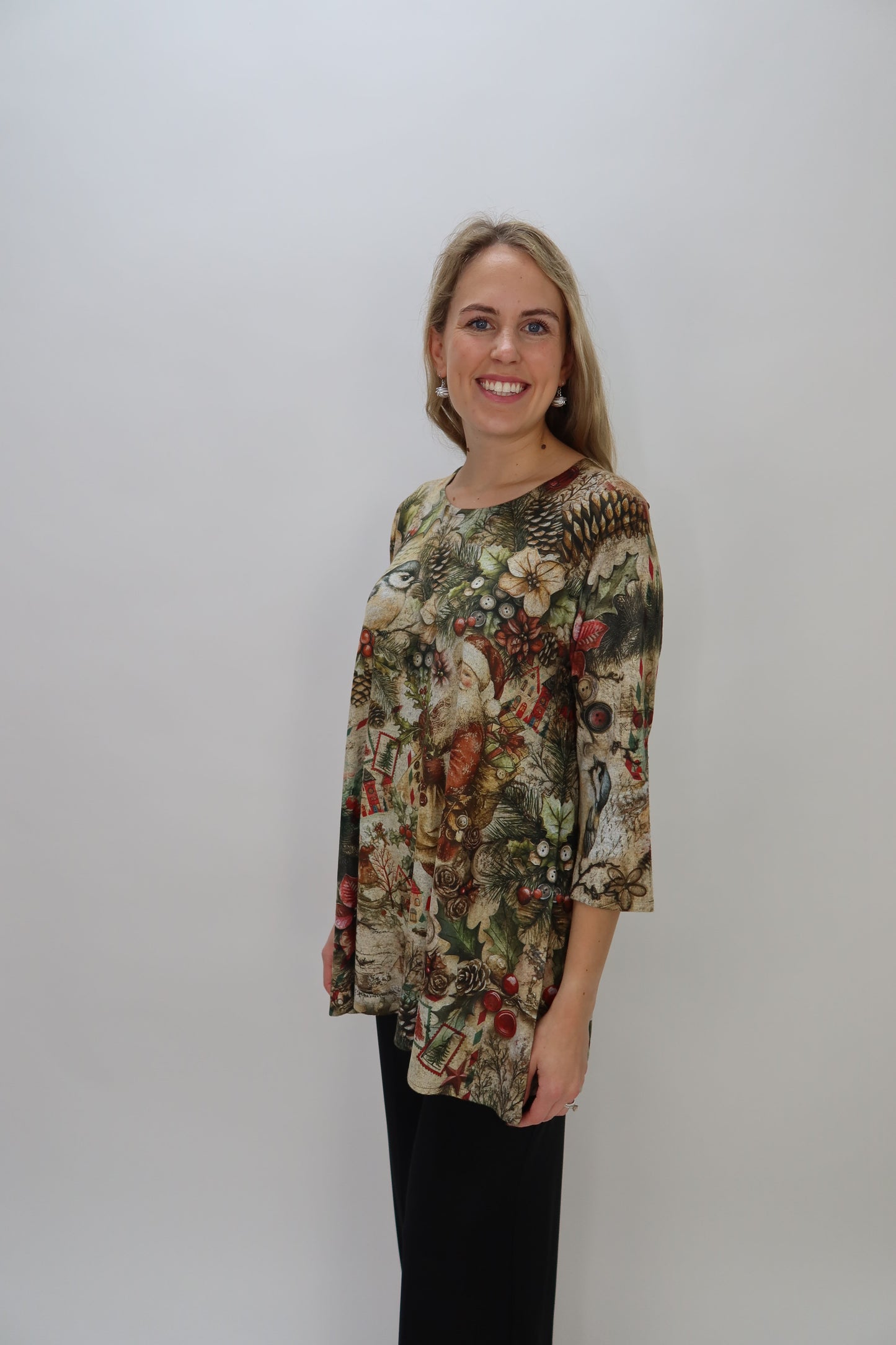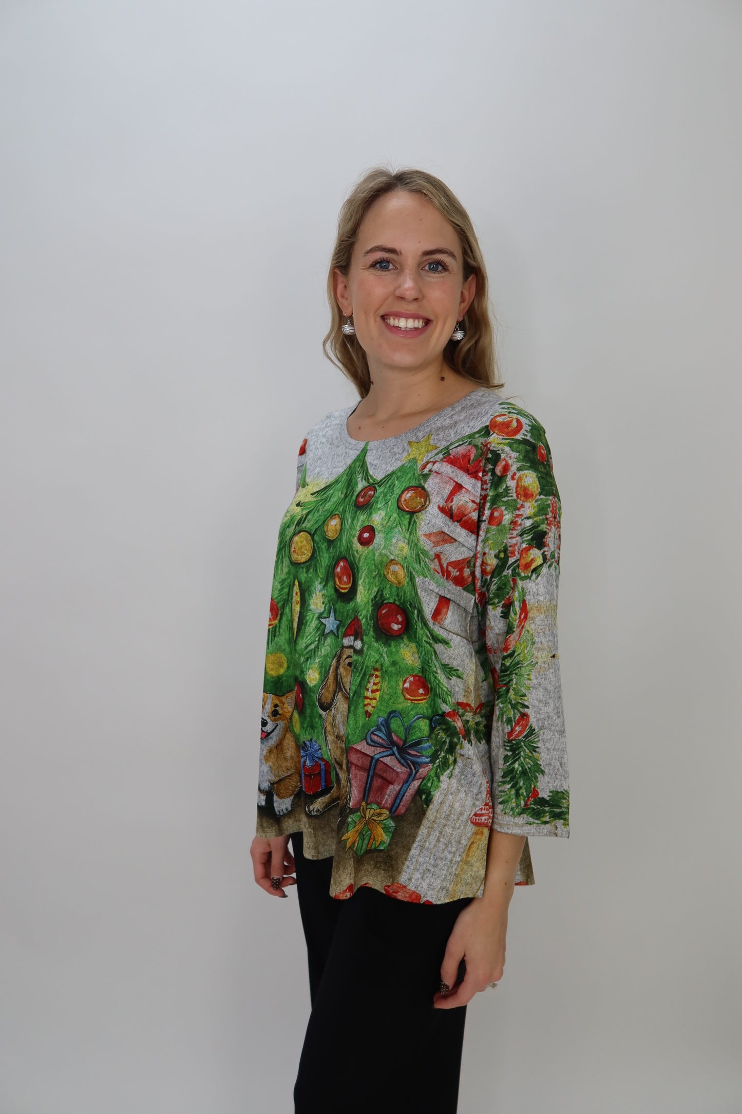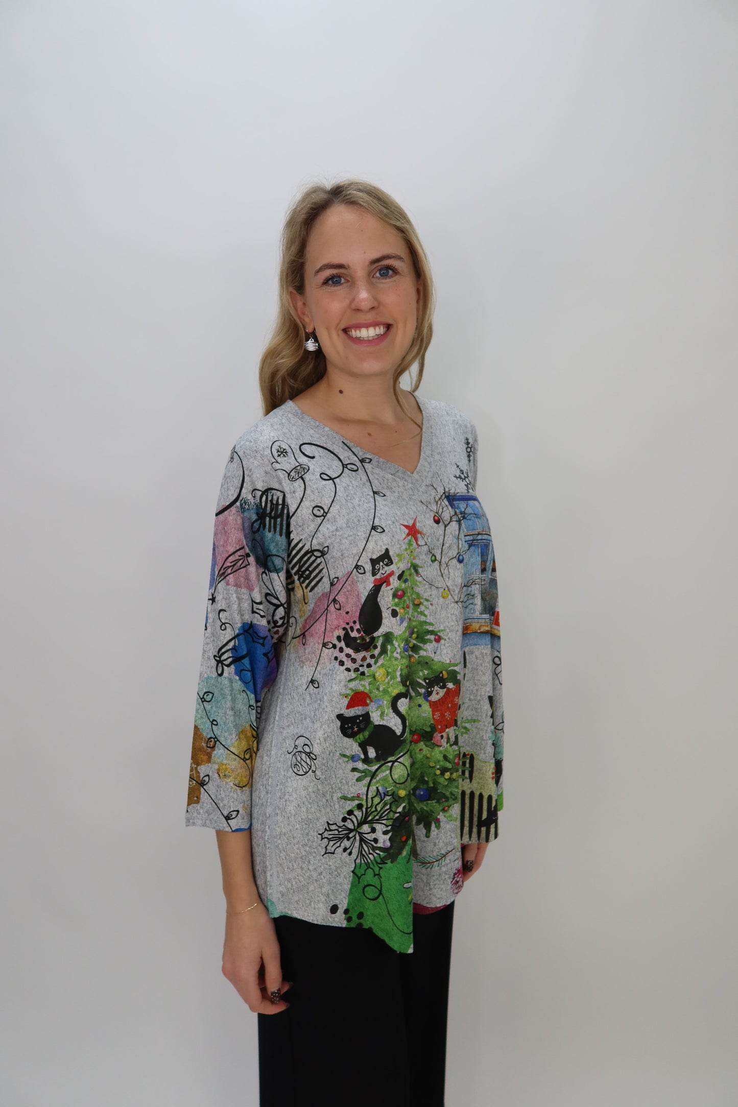 Asymmetric Christmas Tree Cats 3/4 Sleeve Top