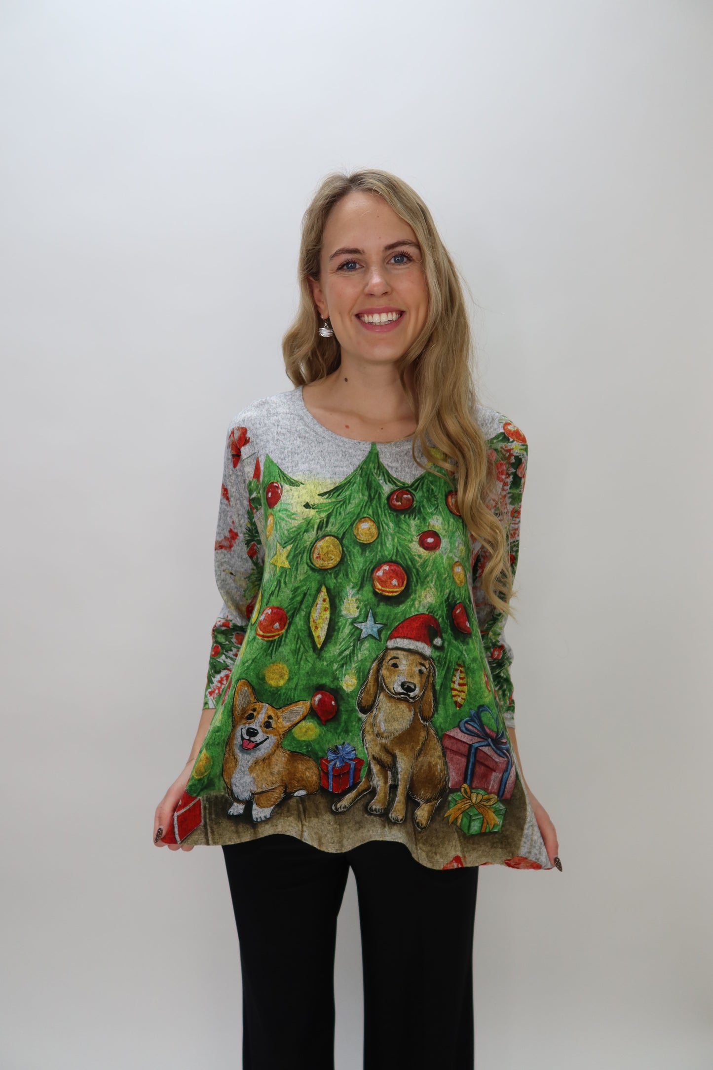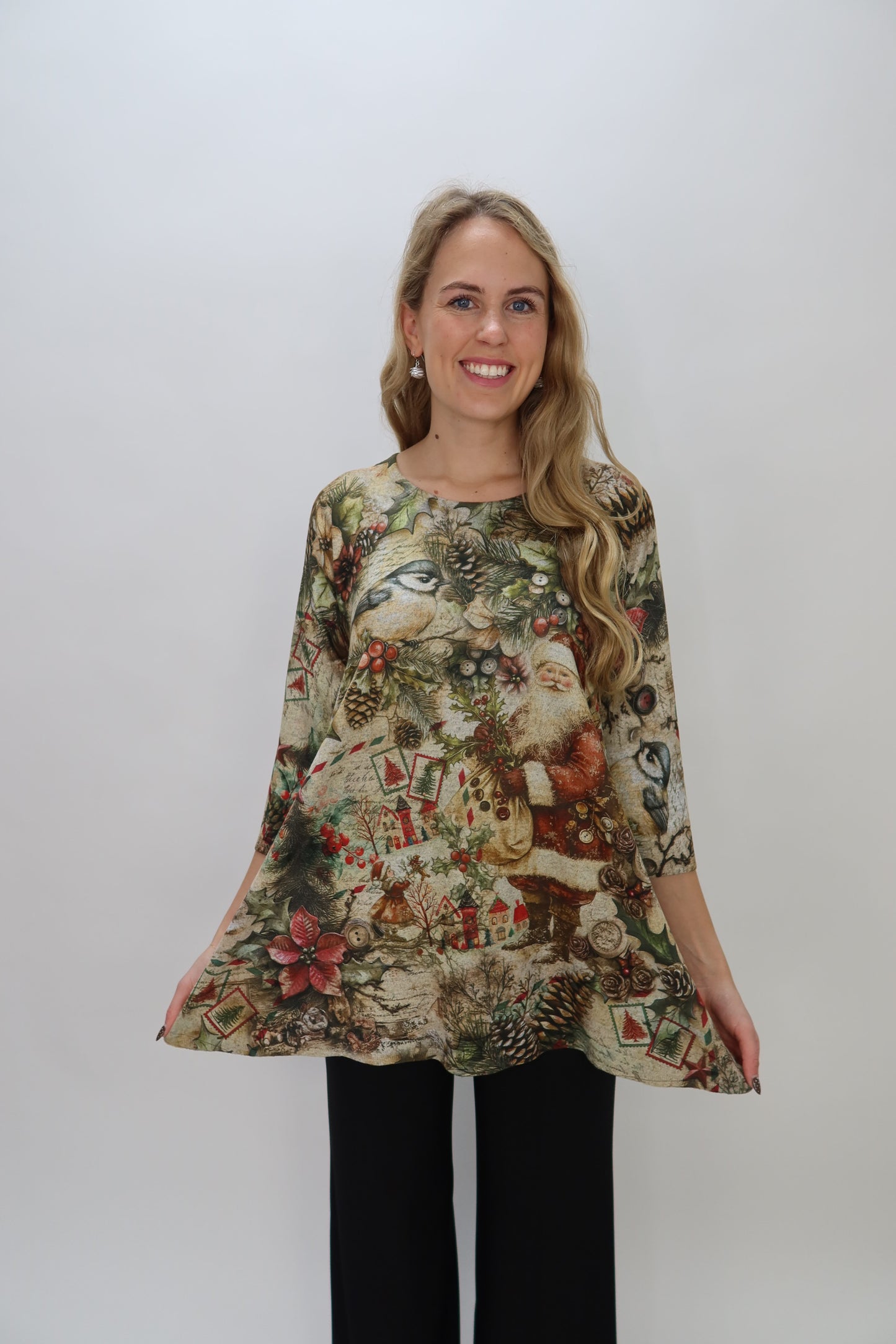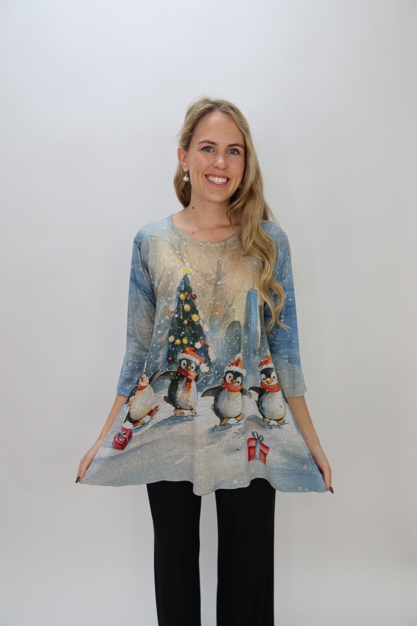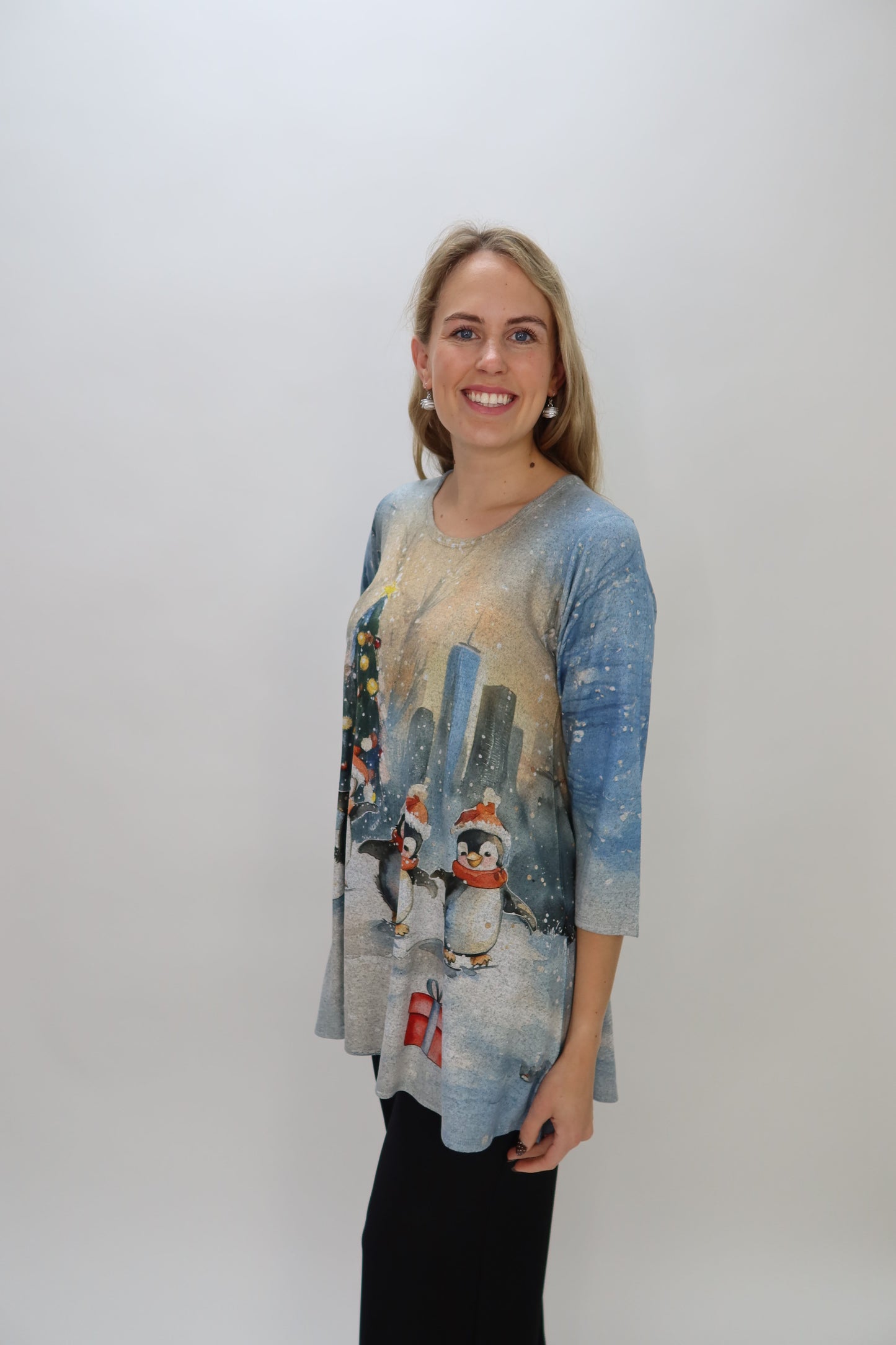 Asymmetric Christmas Tree Cats 3/4 Sleeve Top