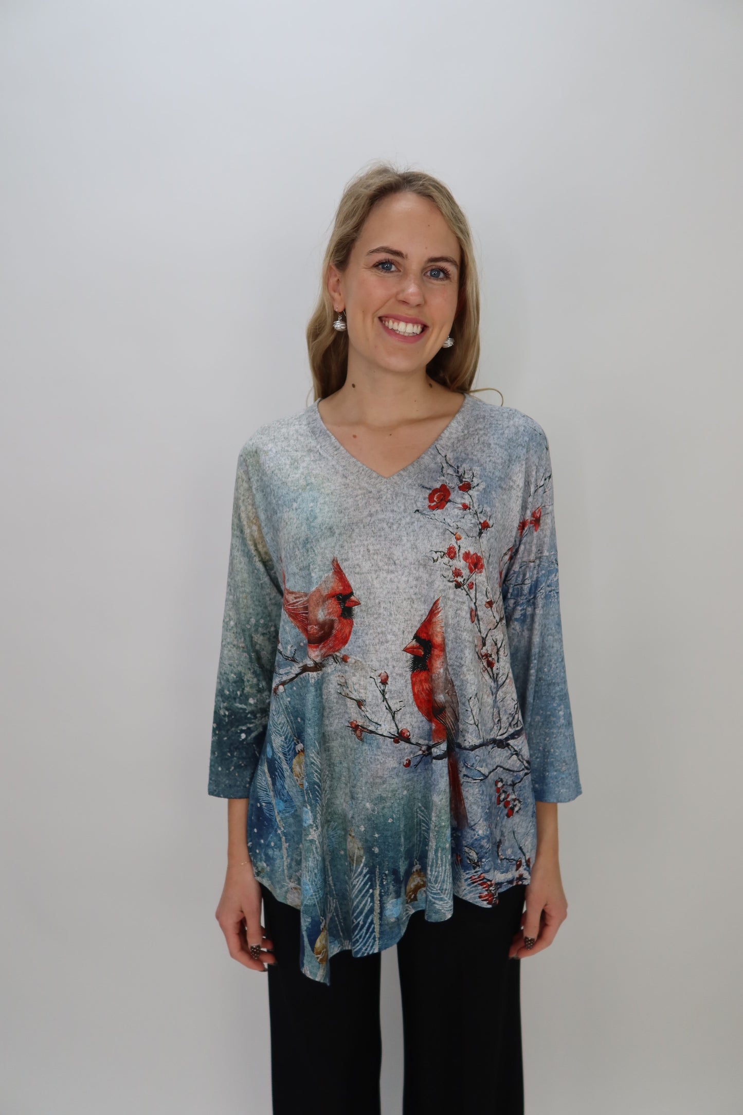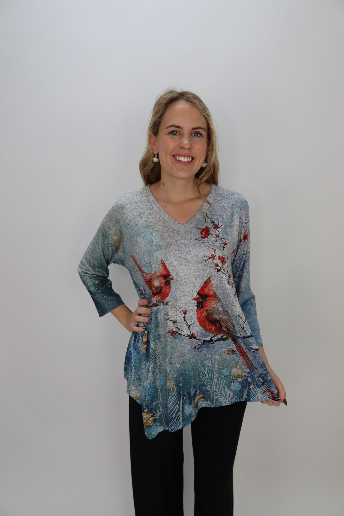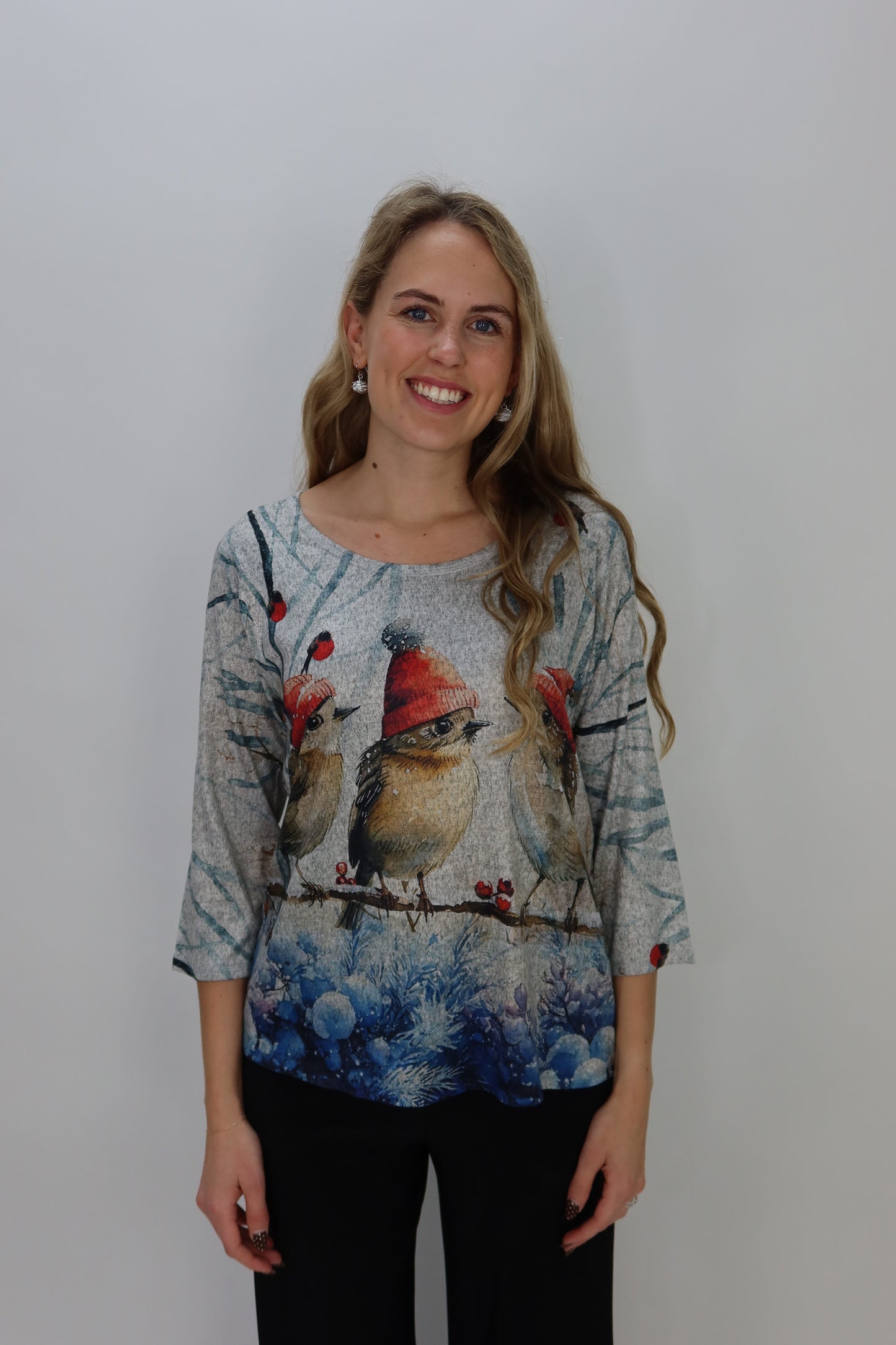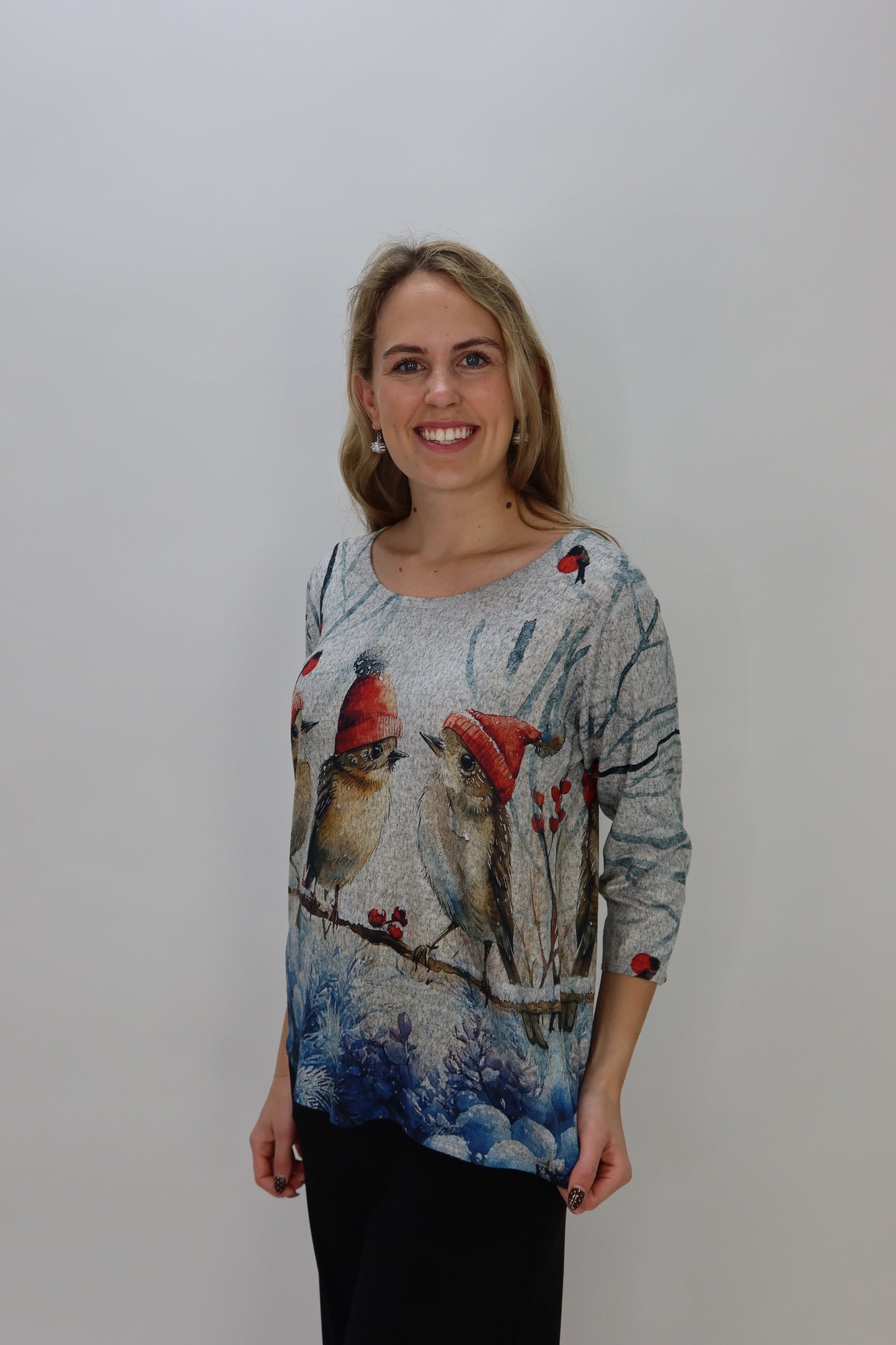 Asymmetric Christmas Tree Cats 3/4 Sleeve Top