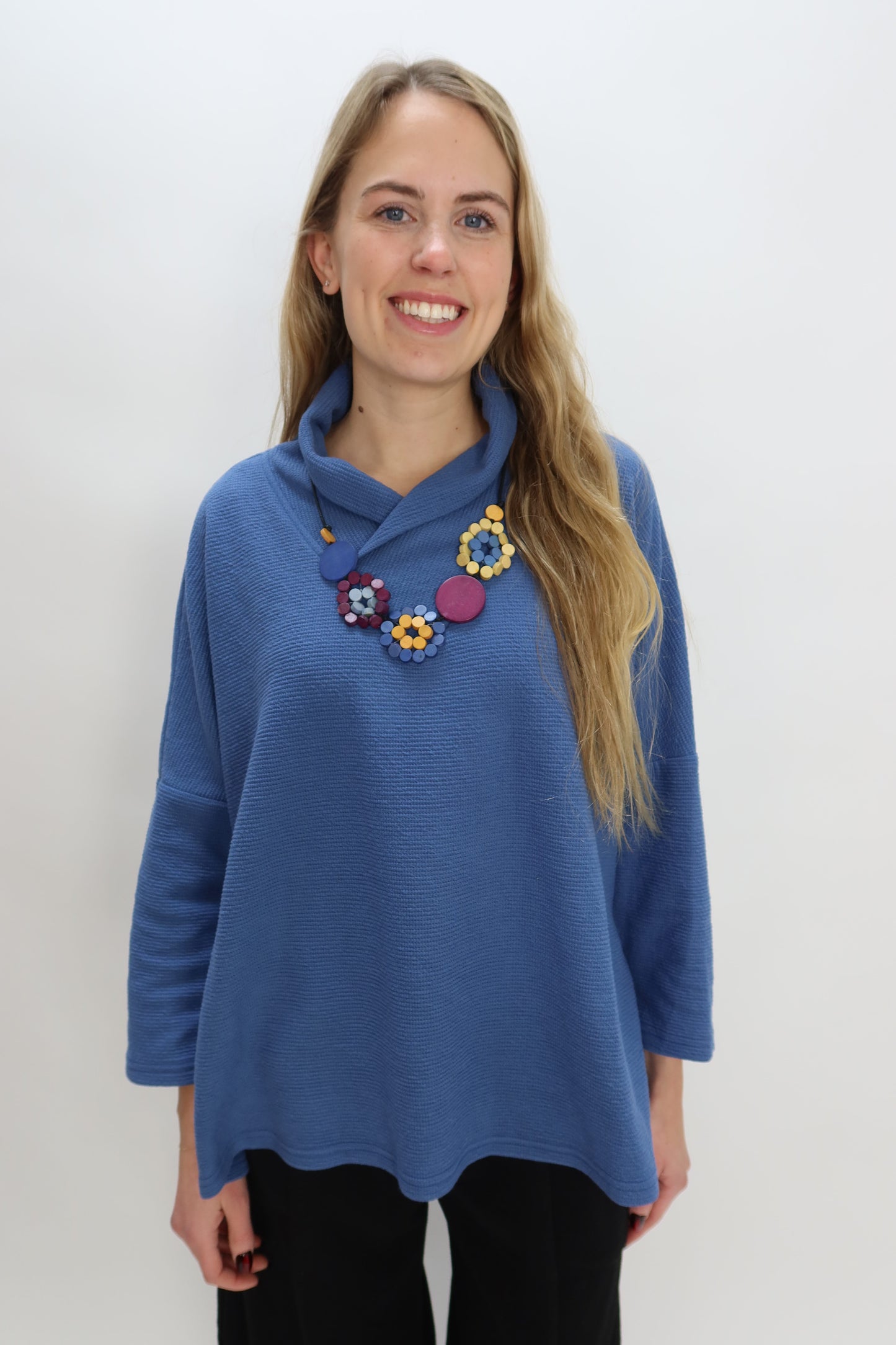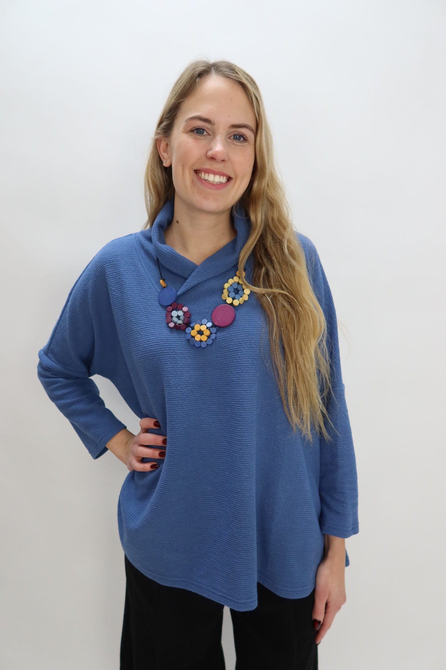 Sapphire Mineral Washed 100% Cotton Long Sleeve Cowl Neck Top