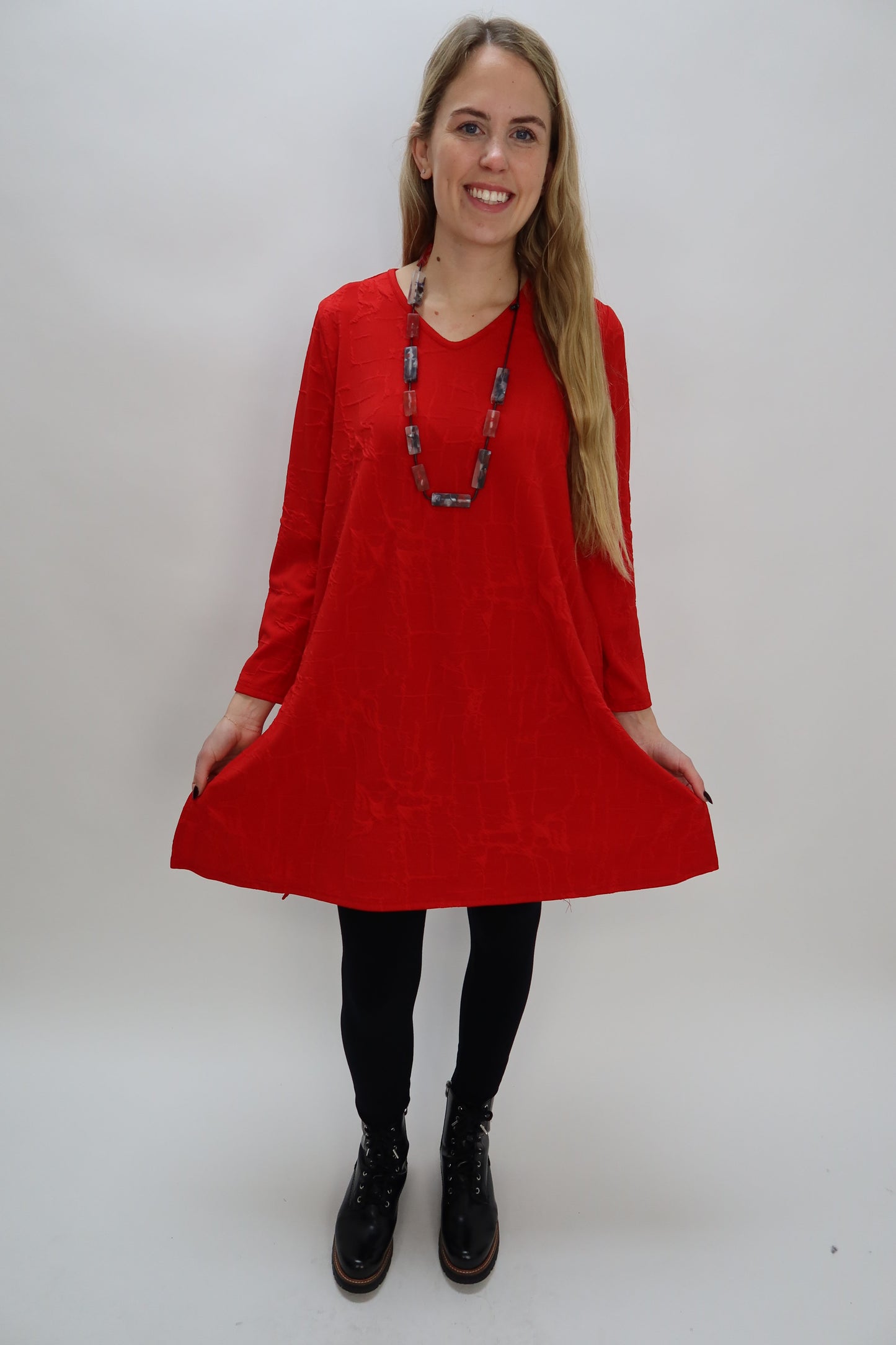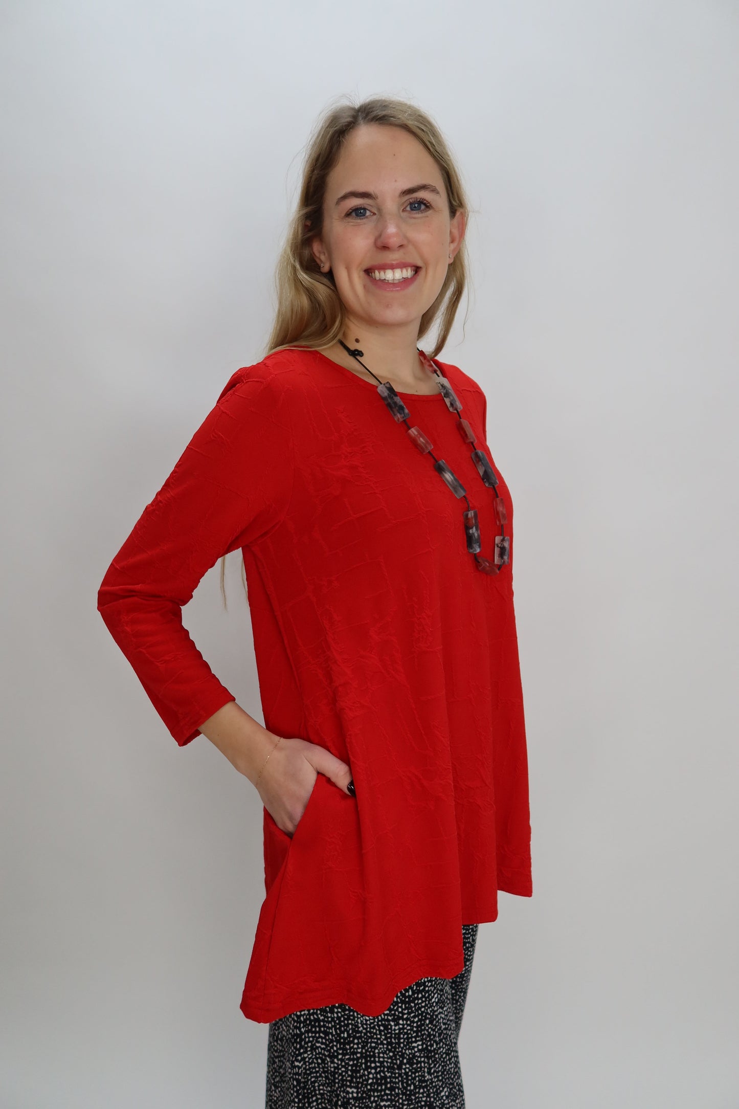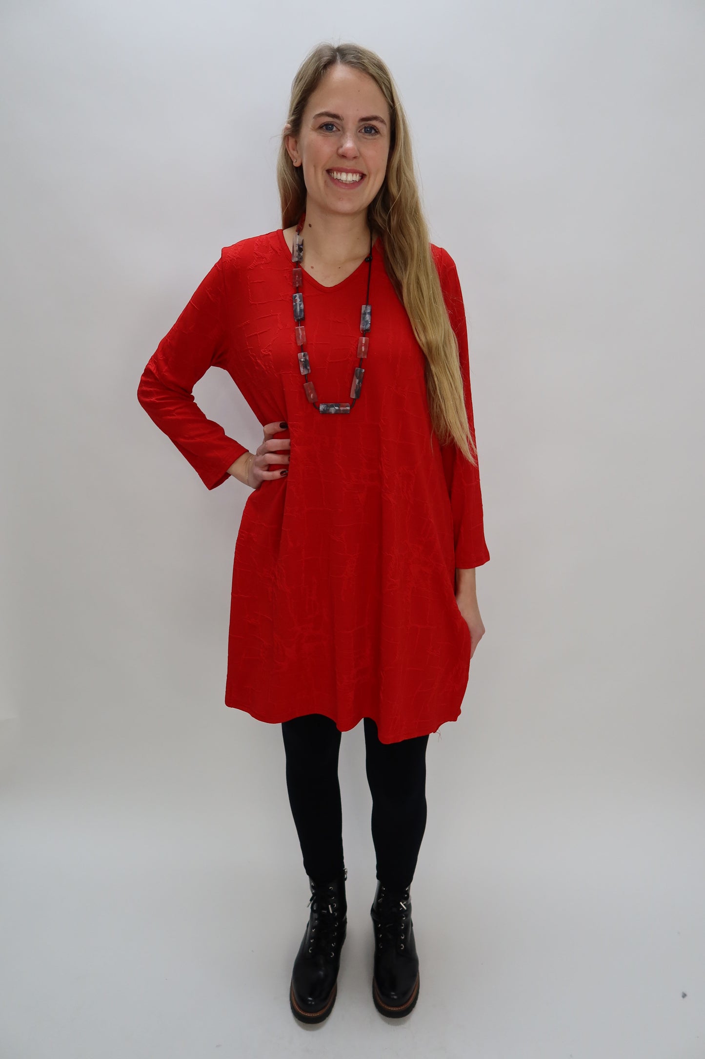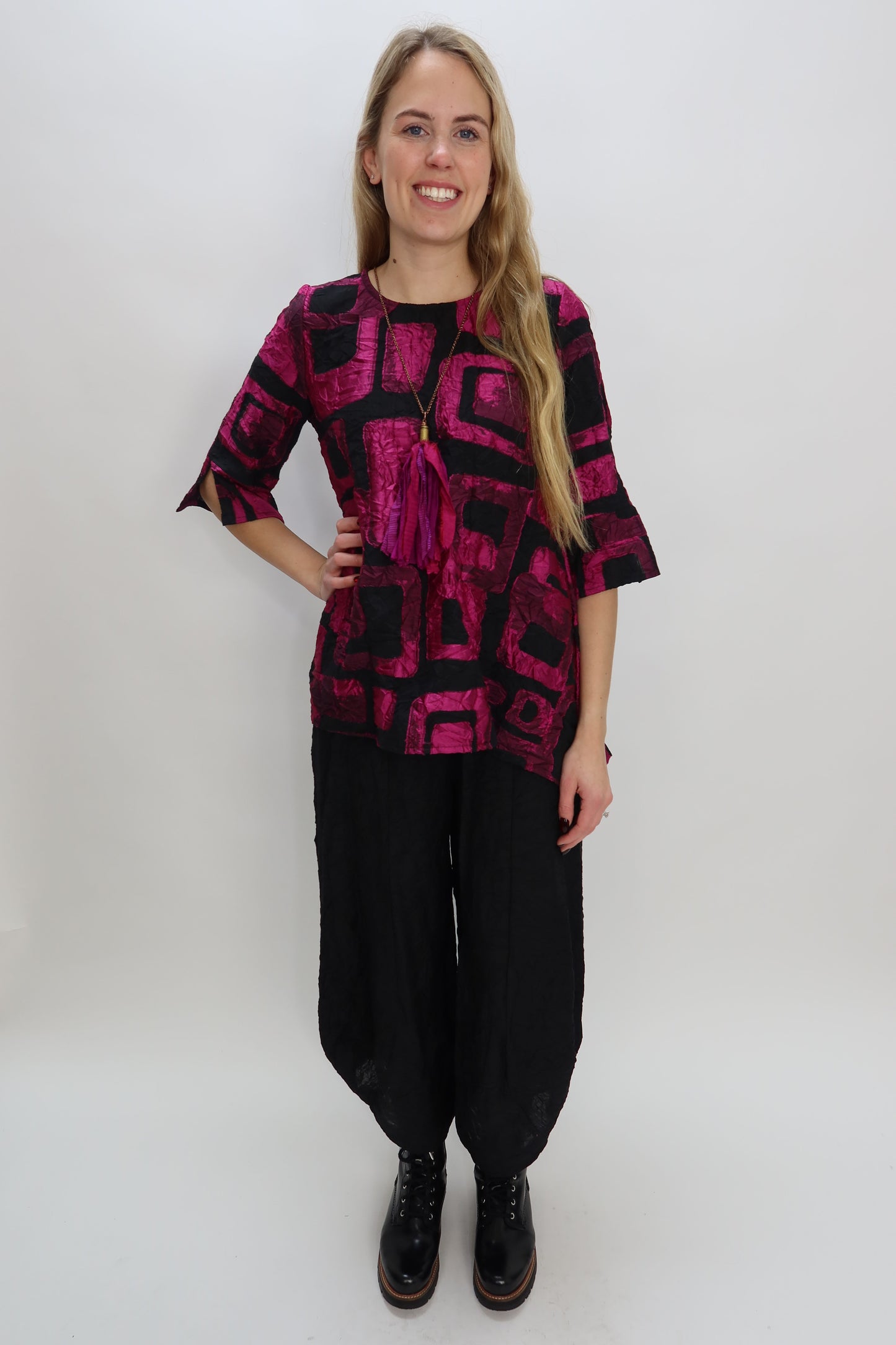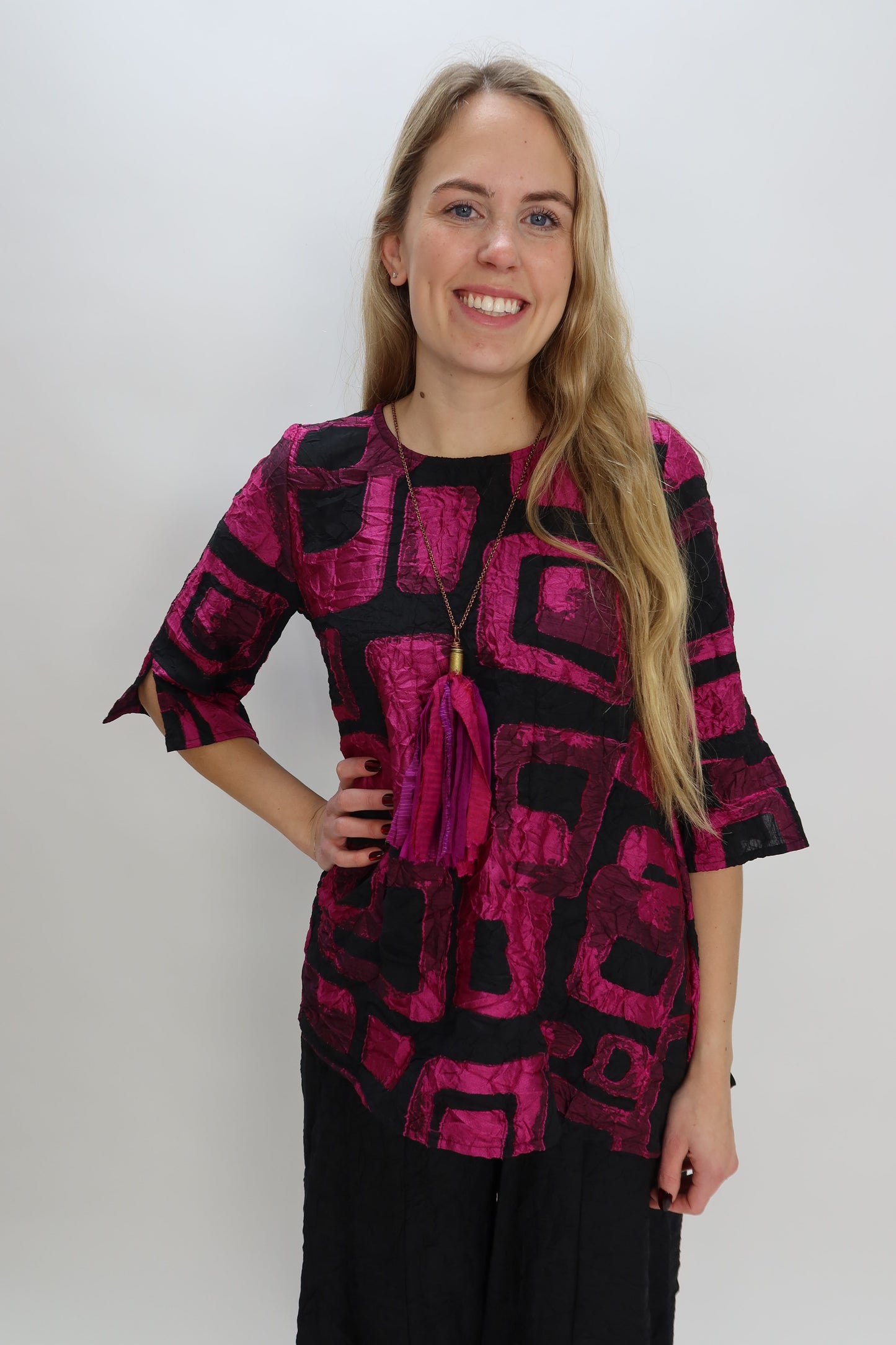 Pink Magenta Blocks Crinkle Crepe Bell Sleeve Tunic