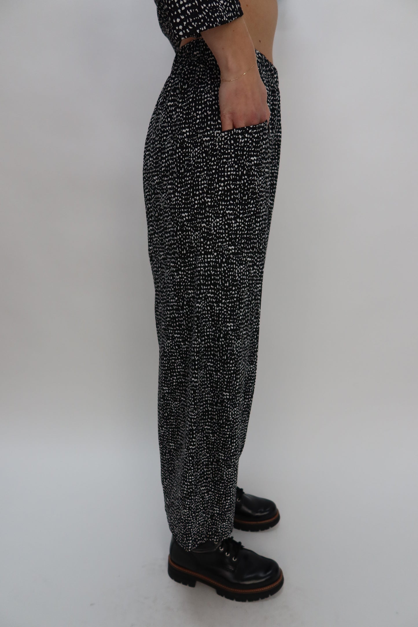 Black and White Dots Knit Jacquard Cargo Pocket Pants