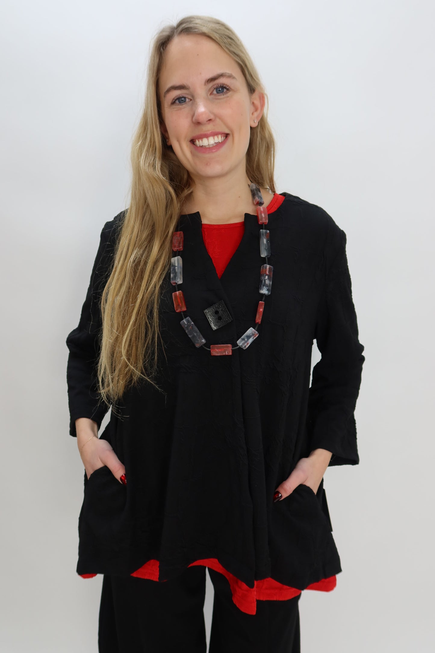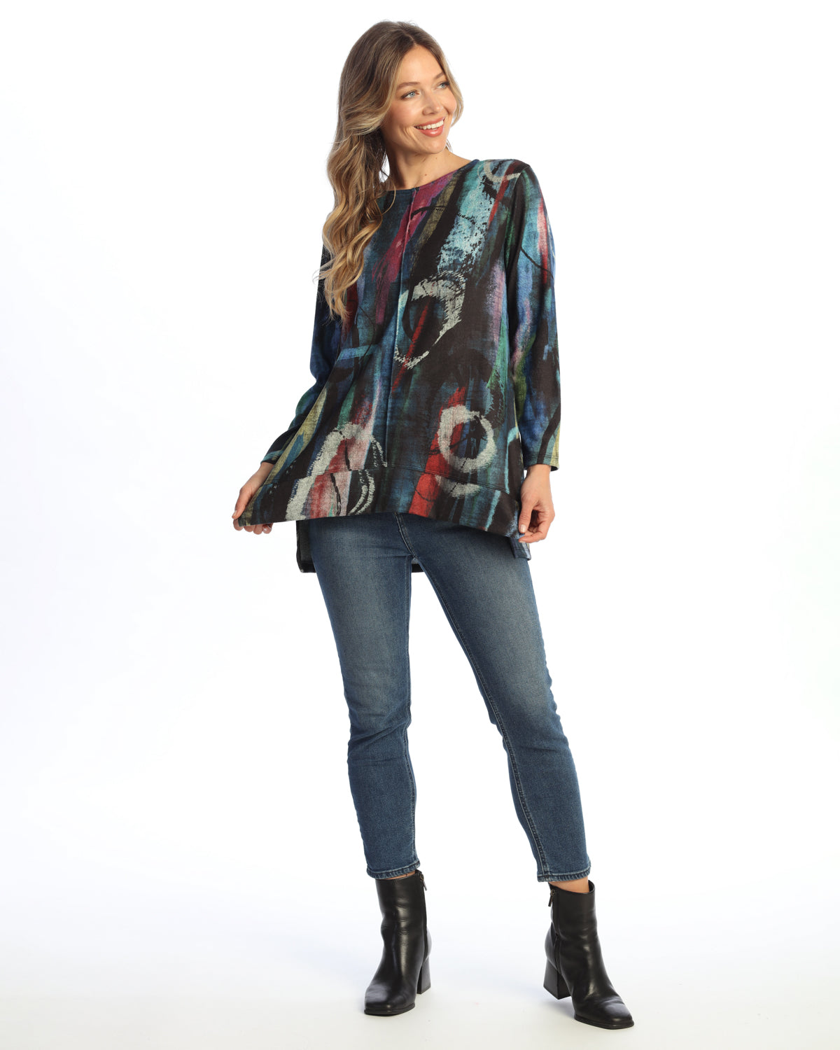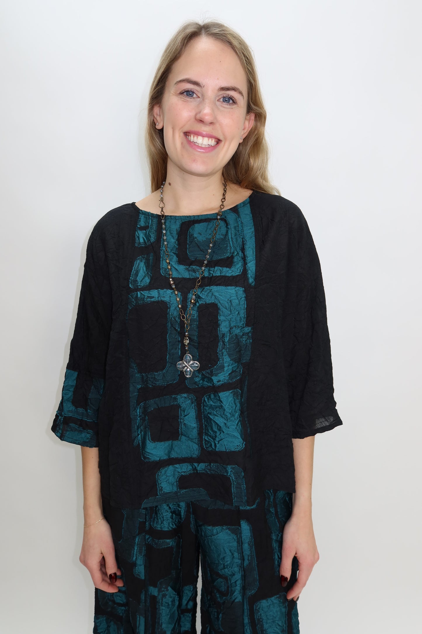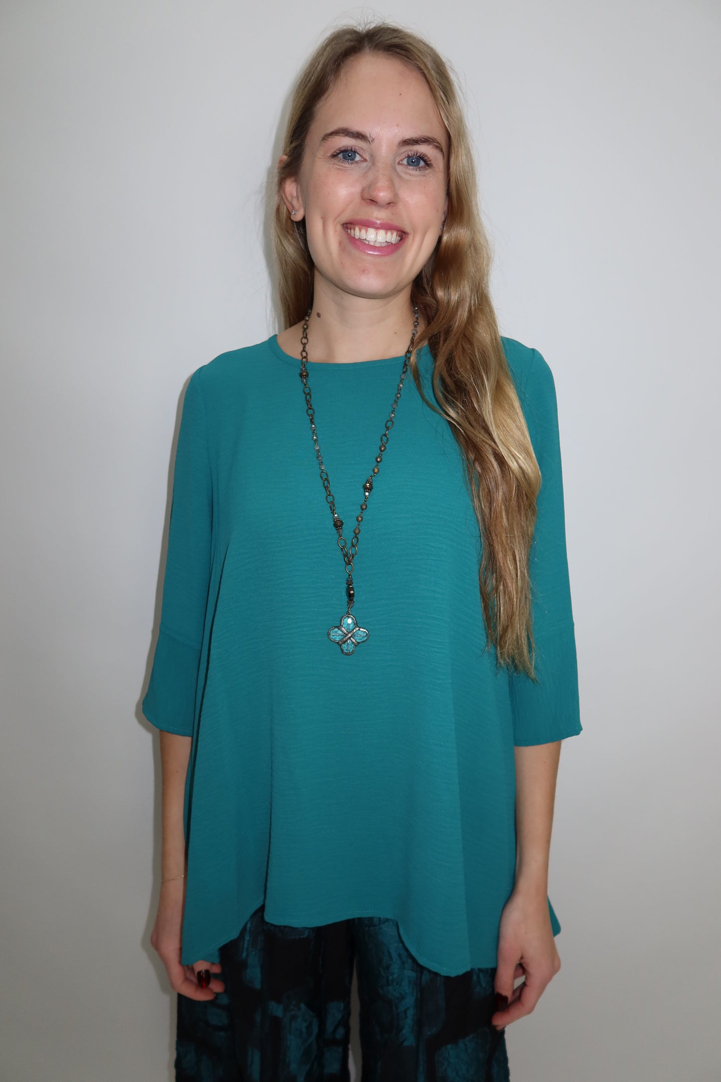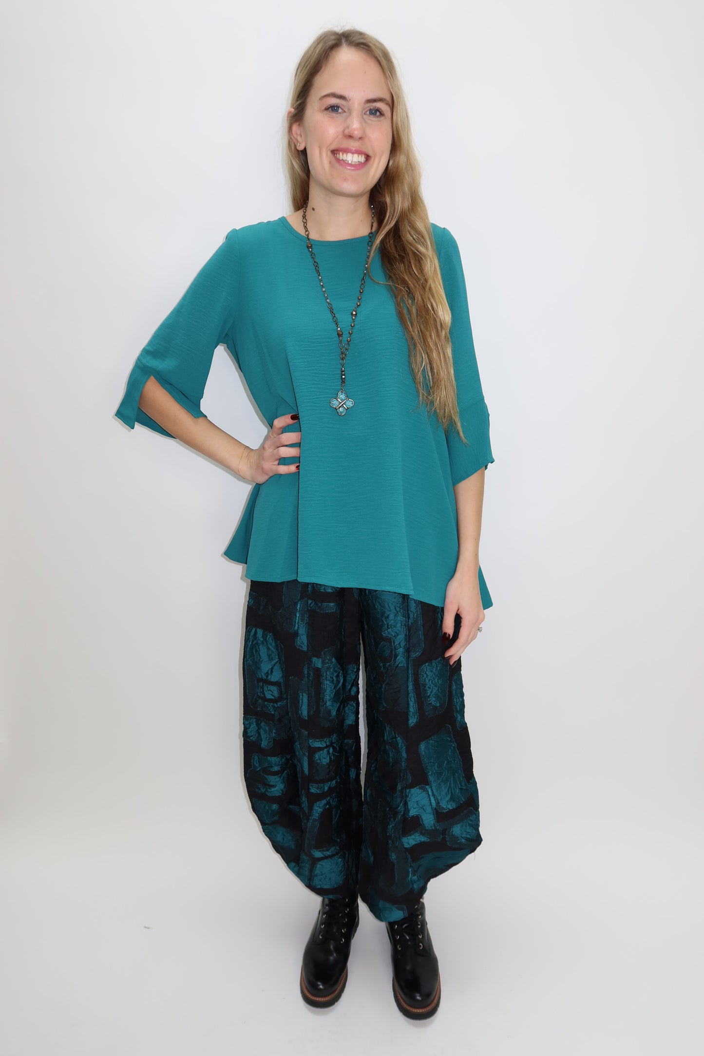 Teal Novelty Brush Overlap Hemline Top with Buttons