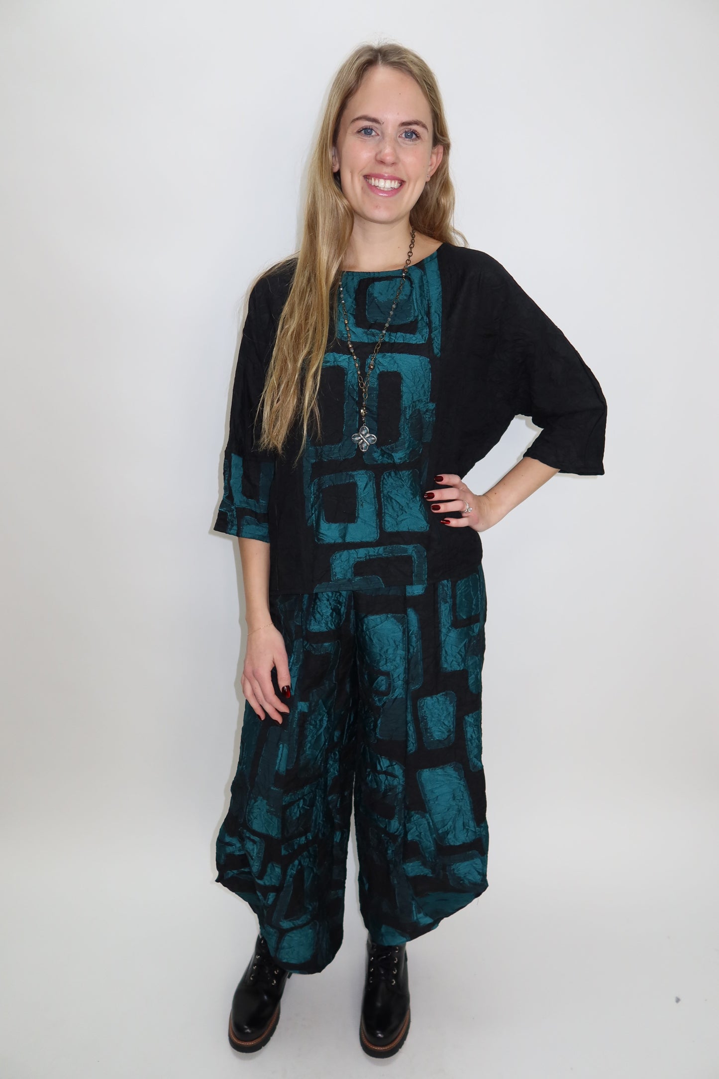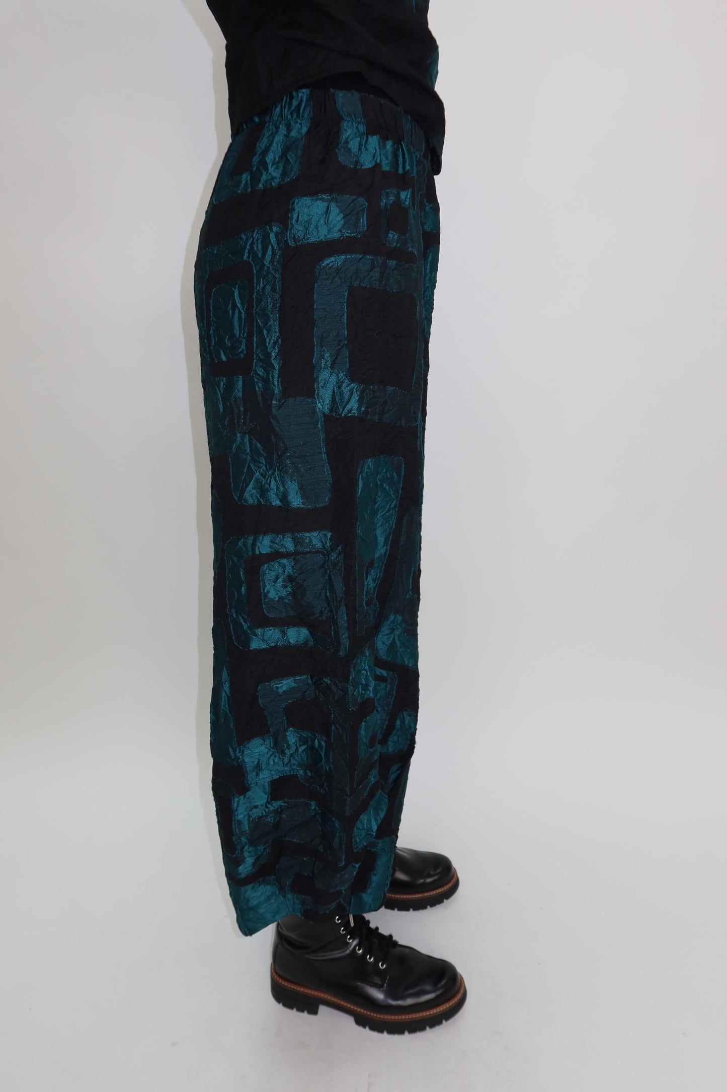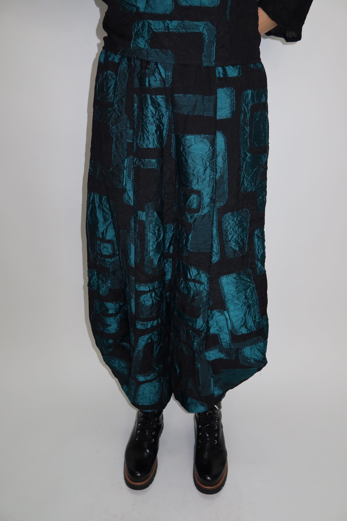Jade Teal and Black Crinkle Crepe Harem Pant