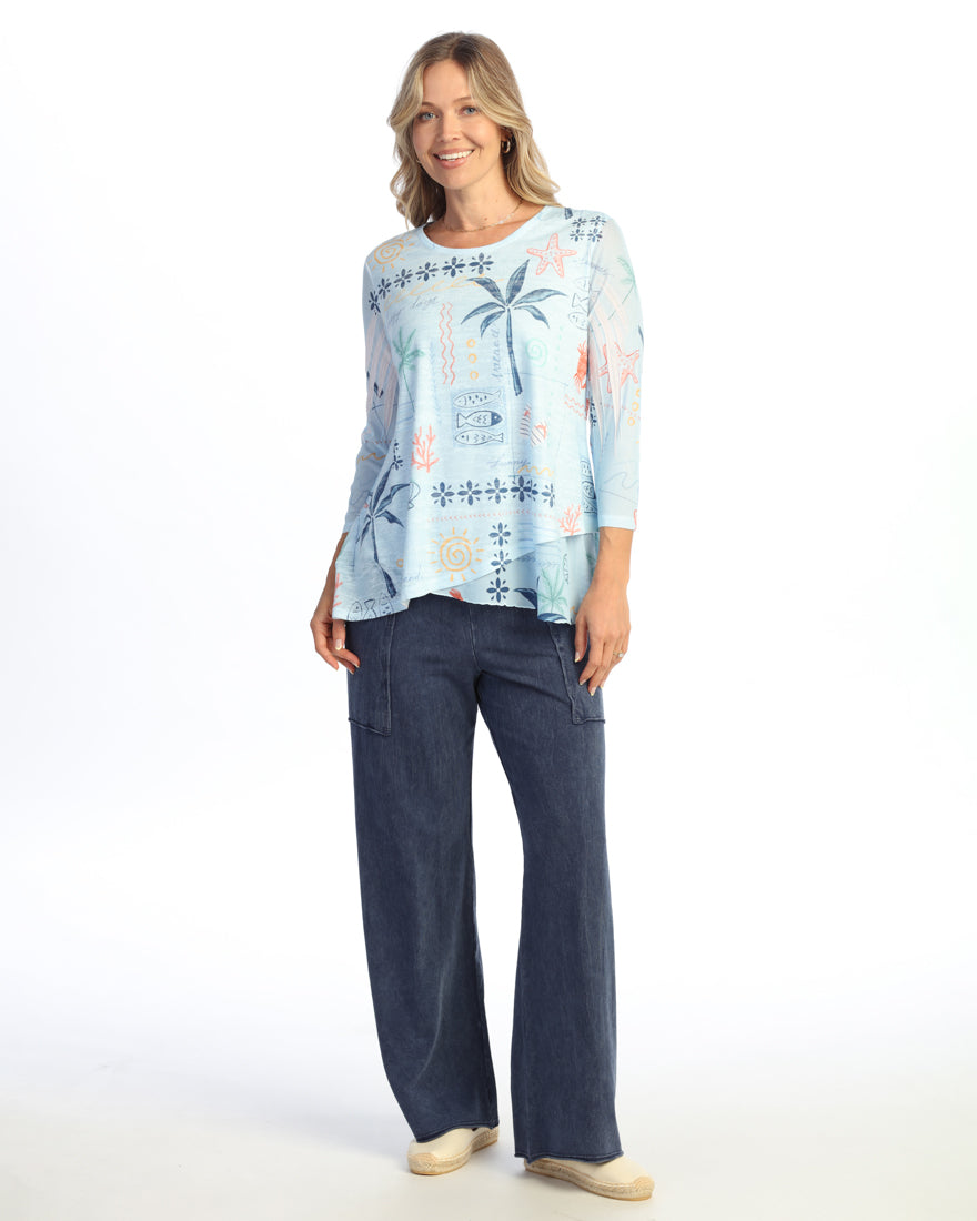 Turquoise Pattern Burnout Tunic with Mesh Sleeves