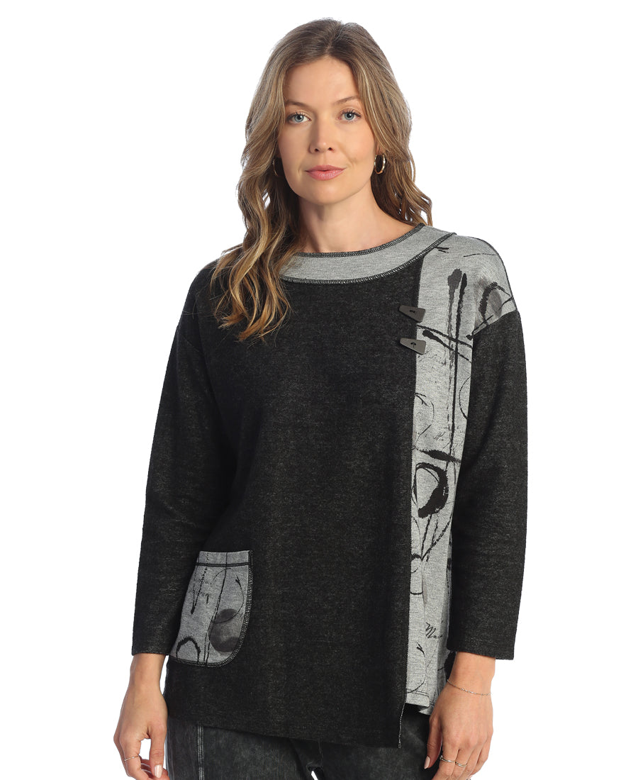 Gray French Brushed Knit Tunic Top With Patch Pocket