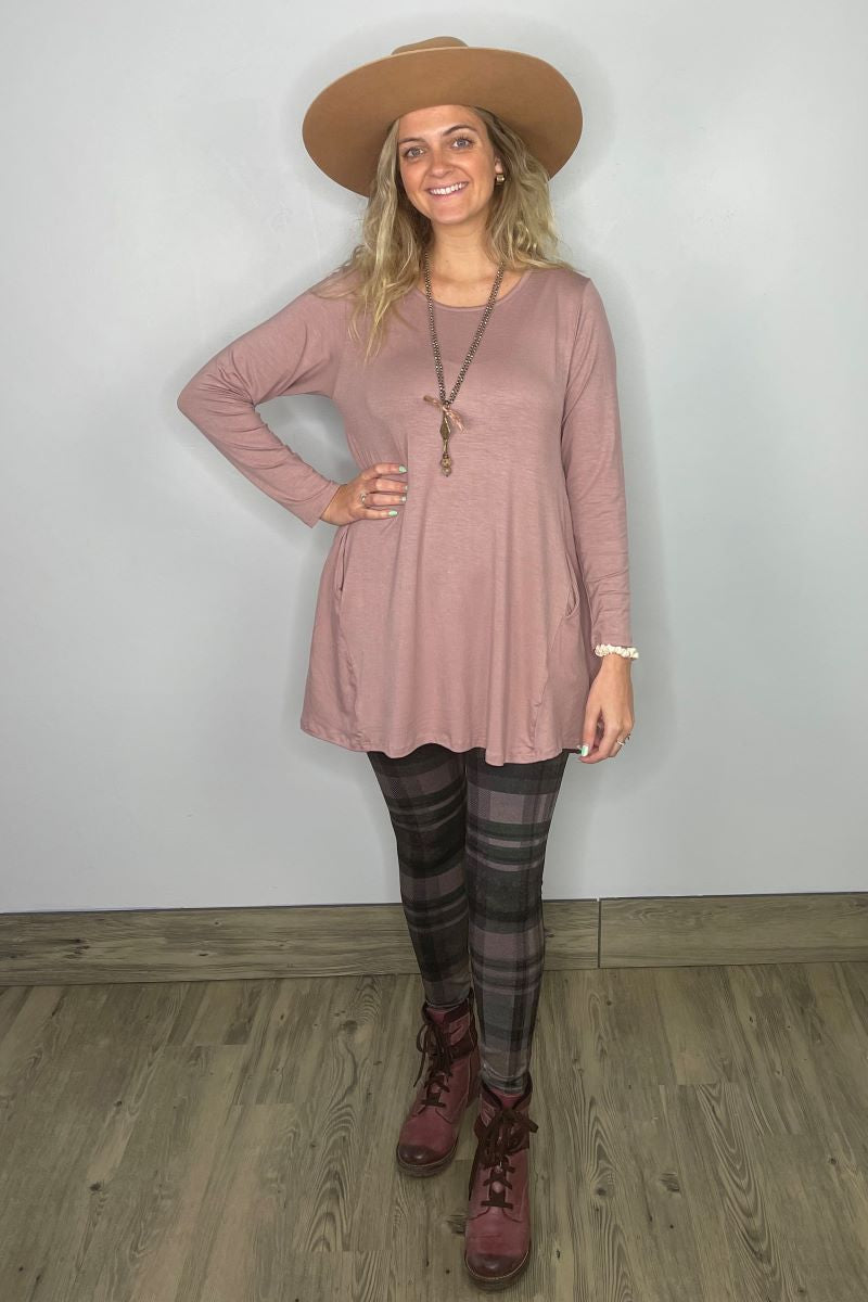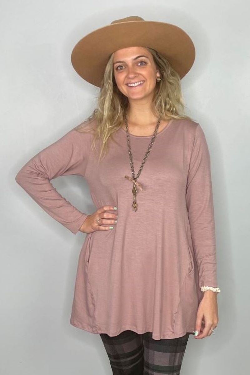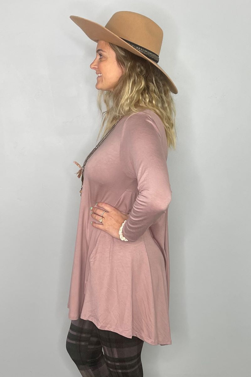 2AM Long Sleeve Tunic with Pockets - Rose