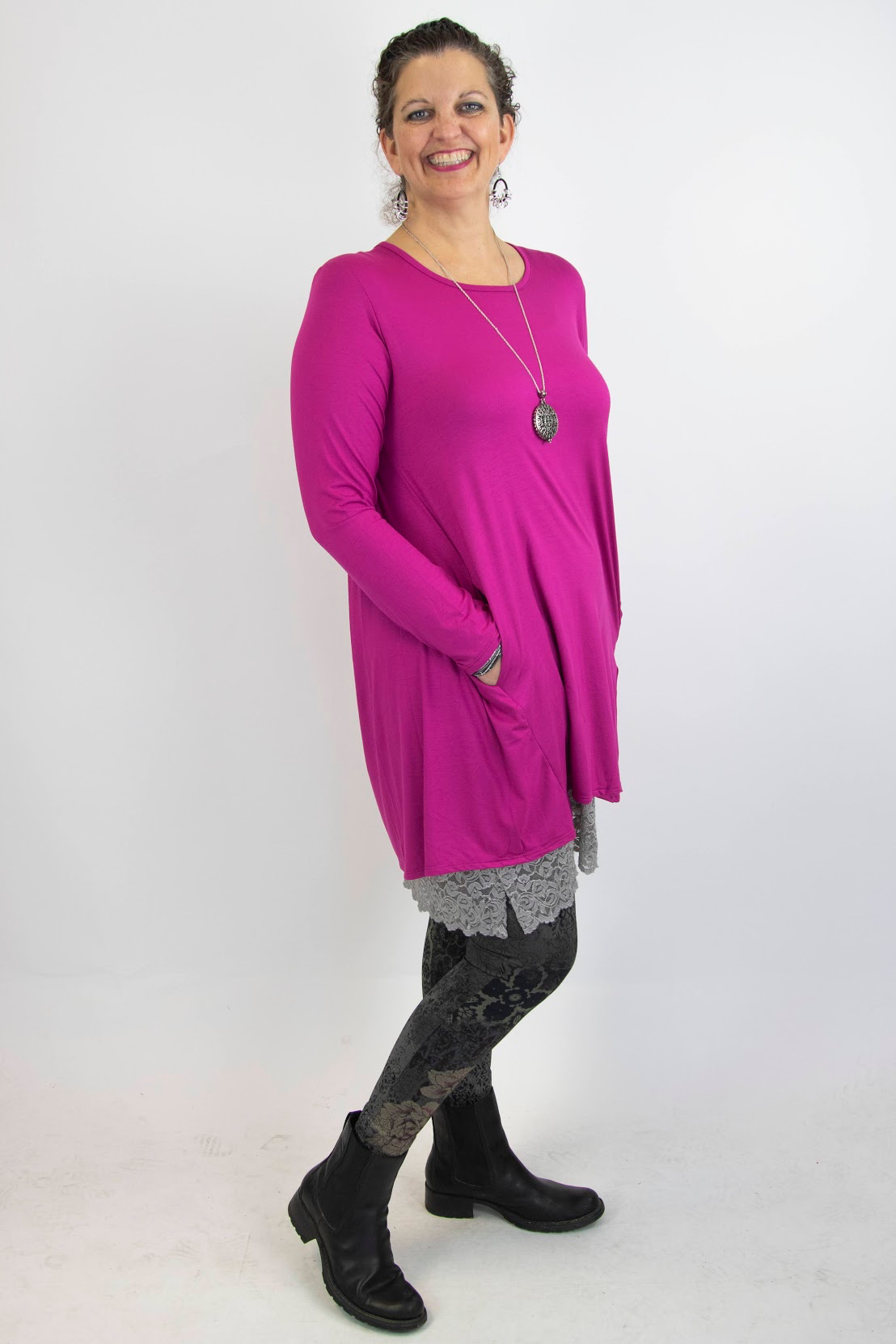 - Stay with your normal sizing and embrace the natural flow of this super soft modal fabric. The generous fit of the 2 AM Long Sleeve Tunic pairs perfectly with the Twist High Low Ruffled Extender top.