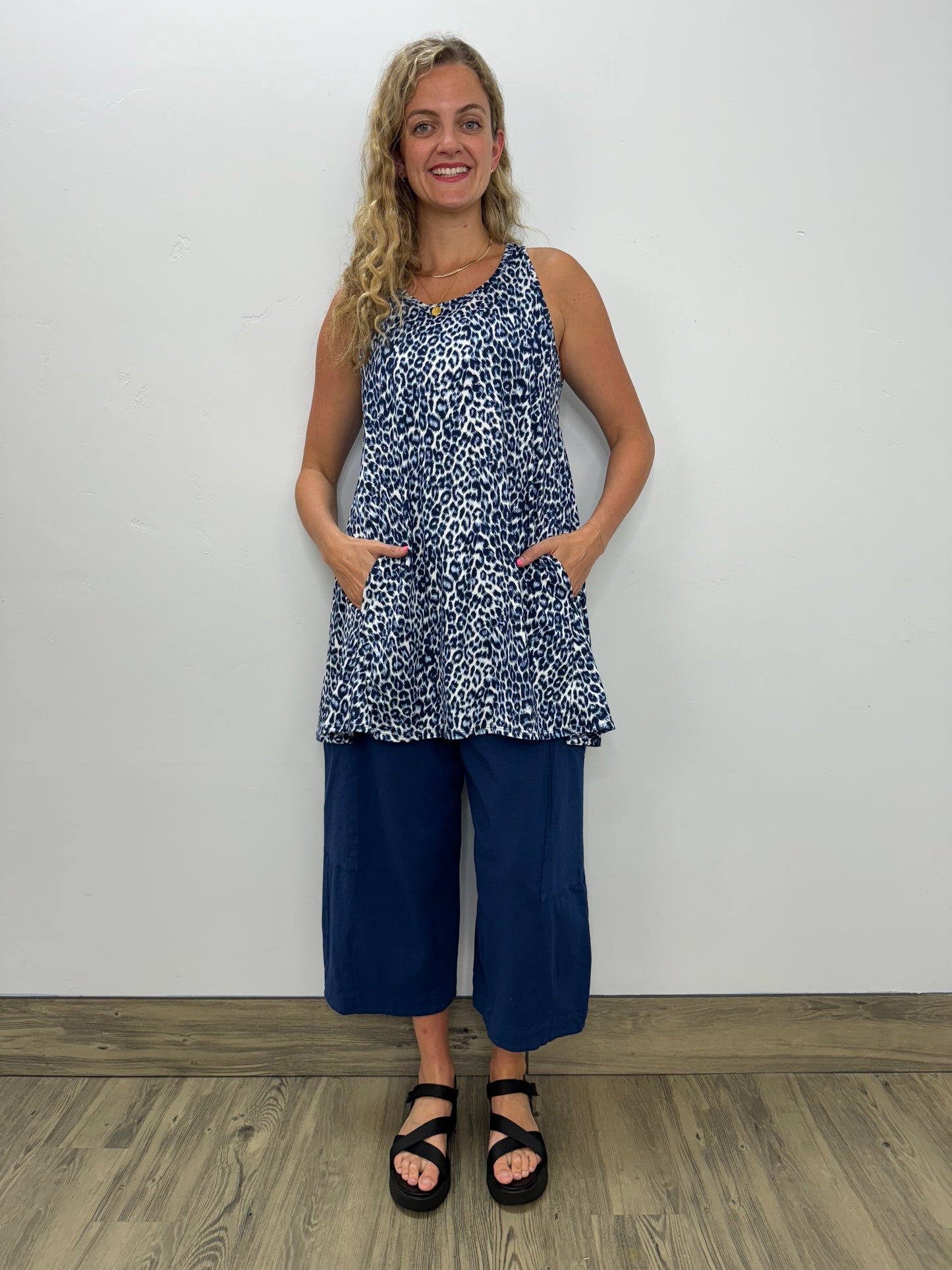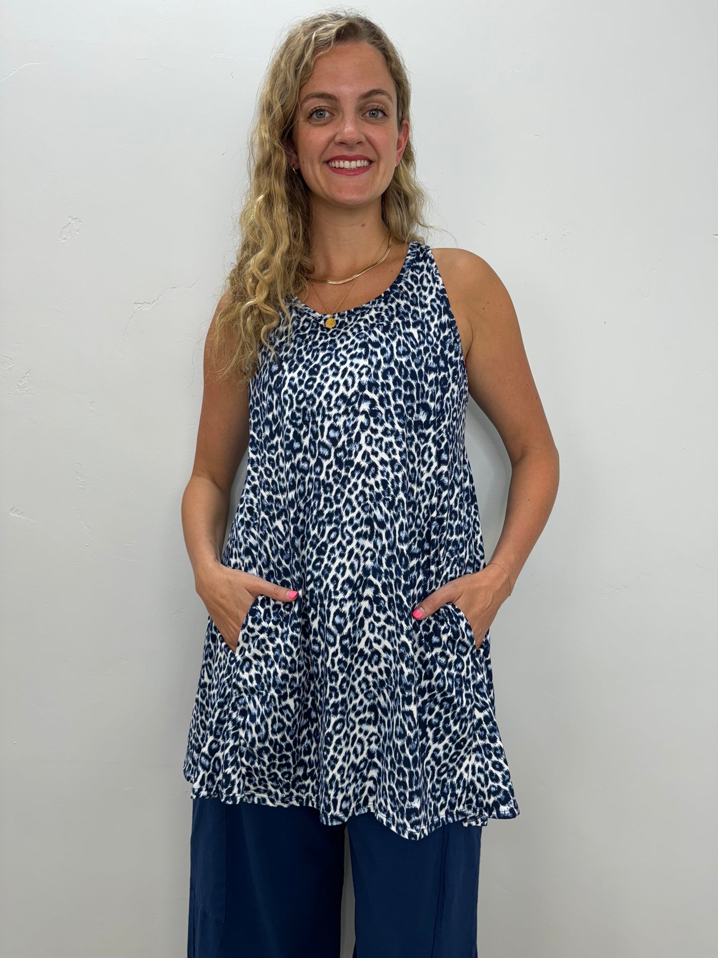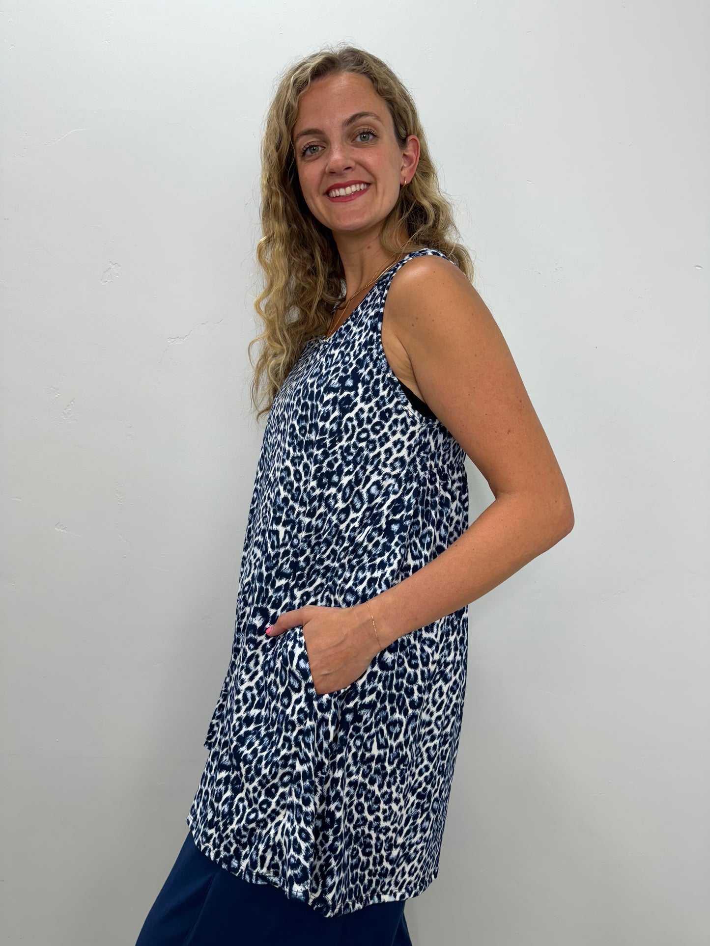 2AM Petite Sleeveless Blue Cheetah Tunic Tank