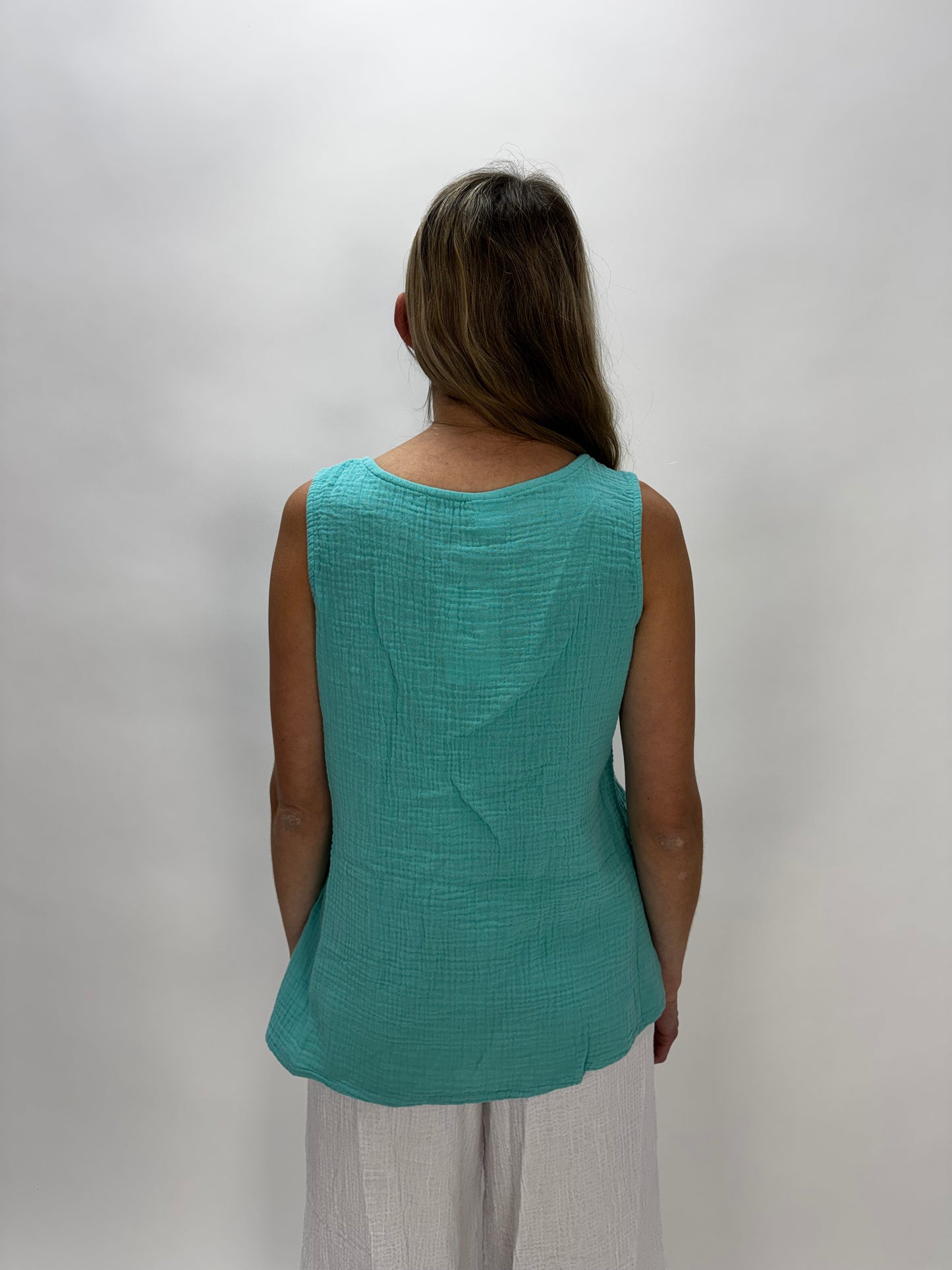 Spearmint Green Cotton Gauze Sleeveless Keyhole Tank