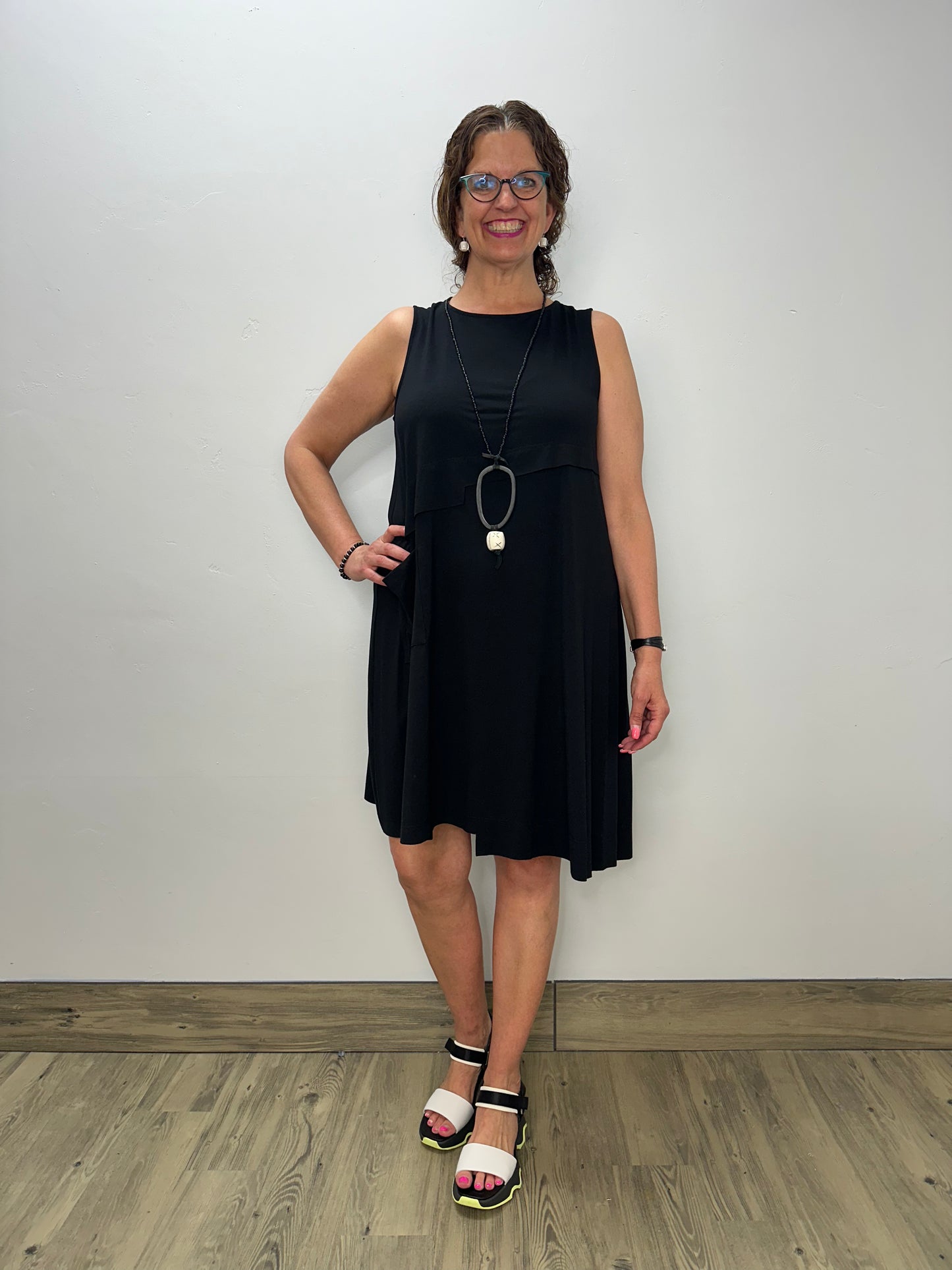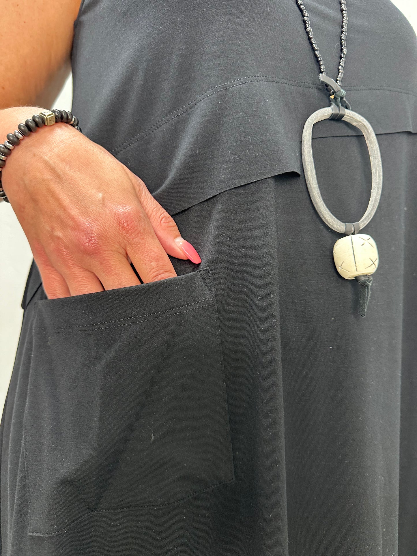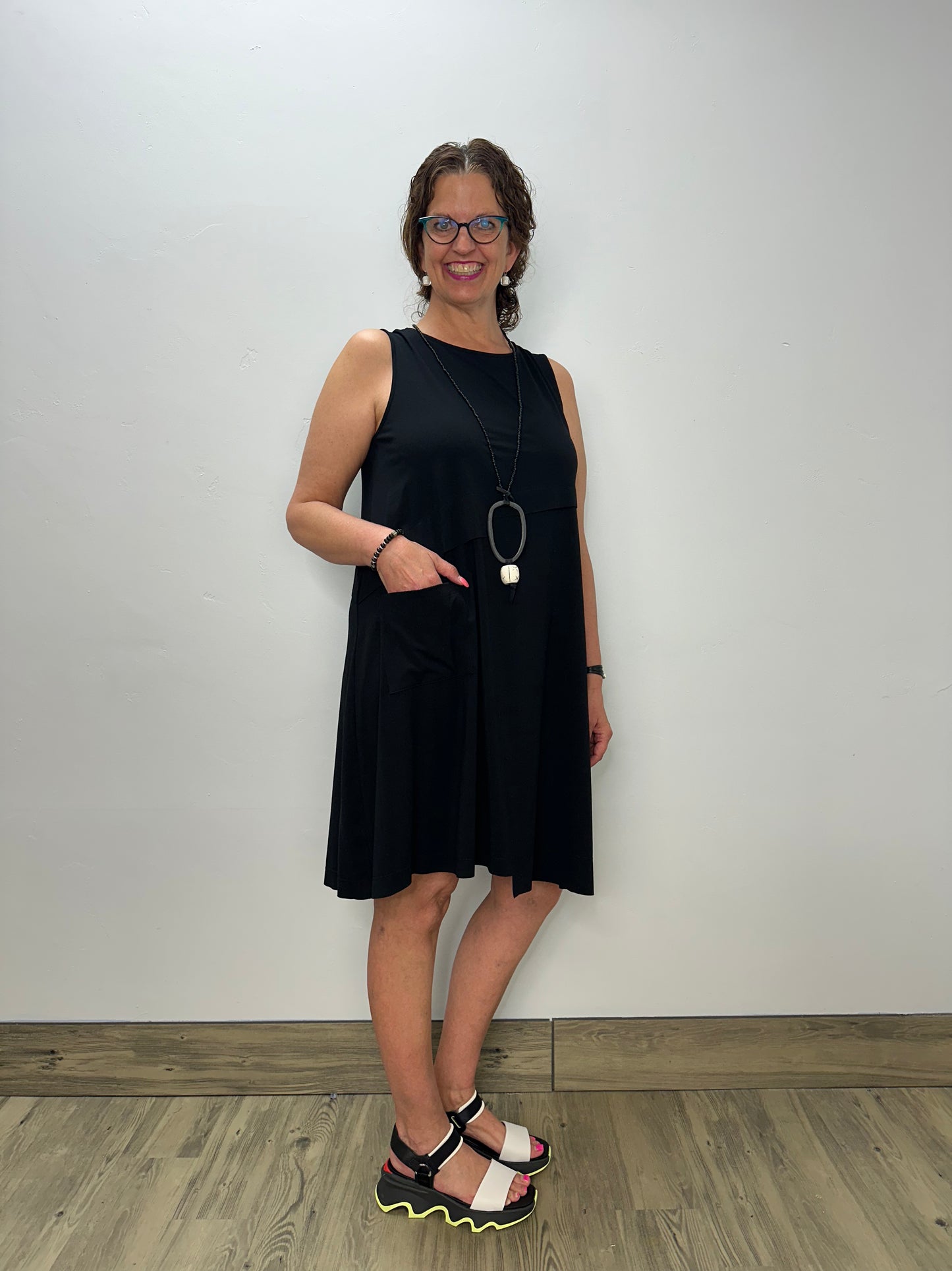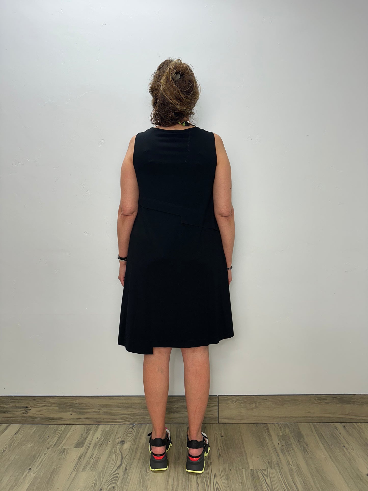 Black Bamboo Sleeveless One Pocket Asymmetrical Dress