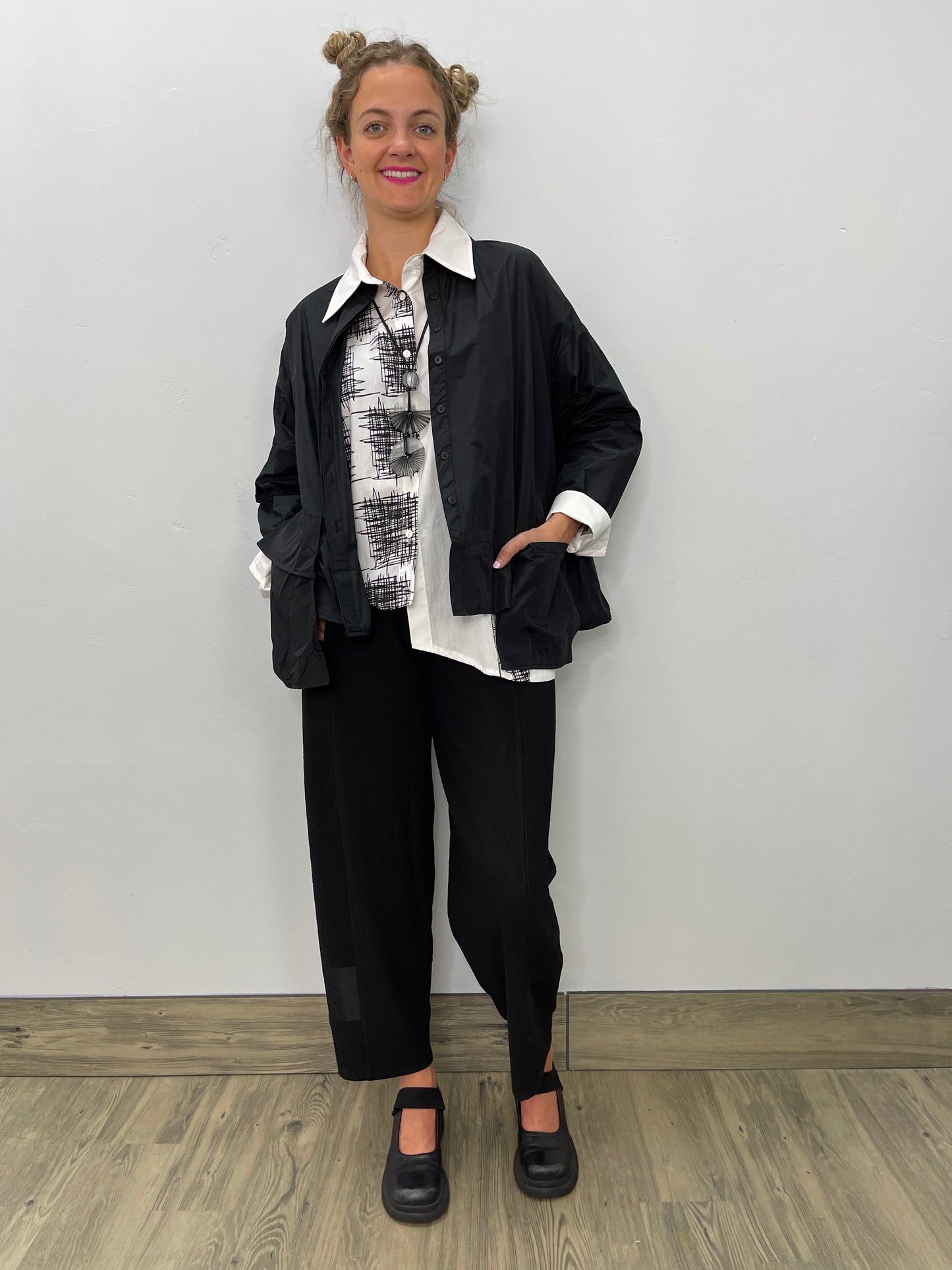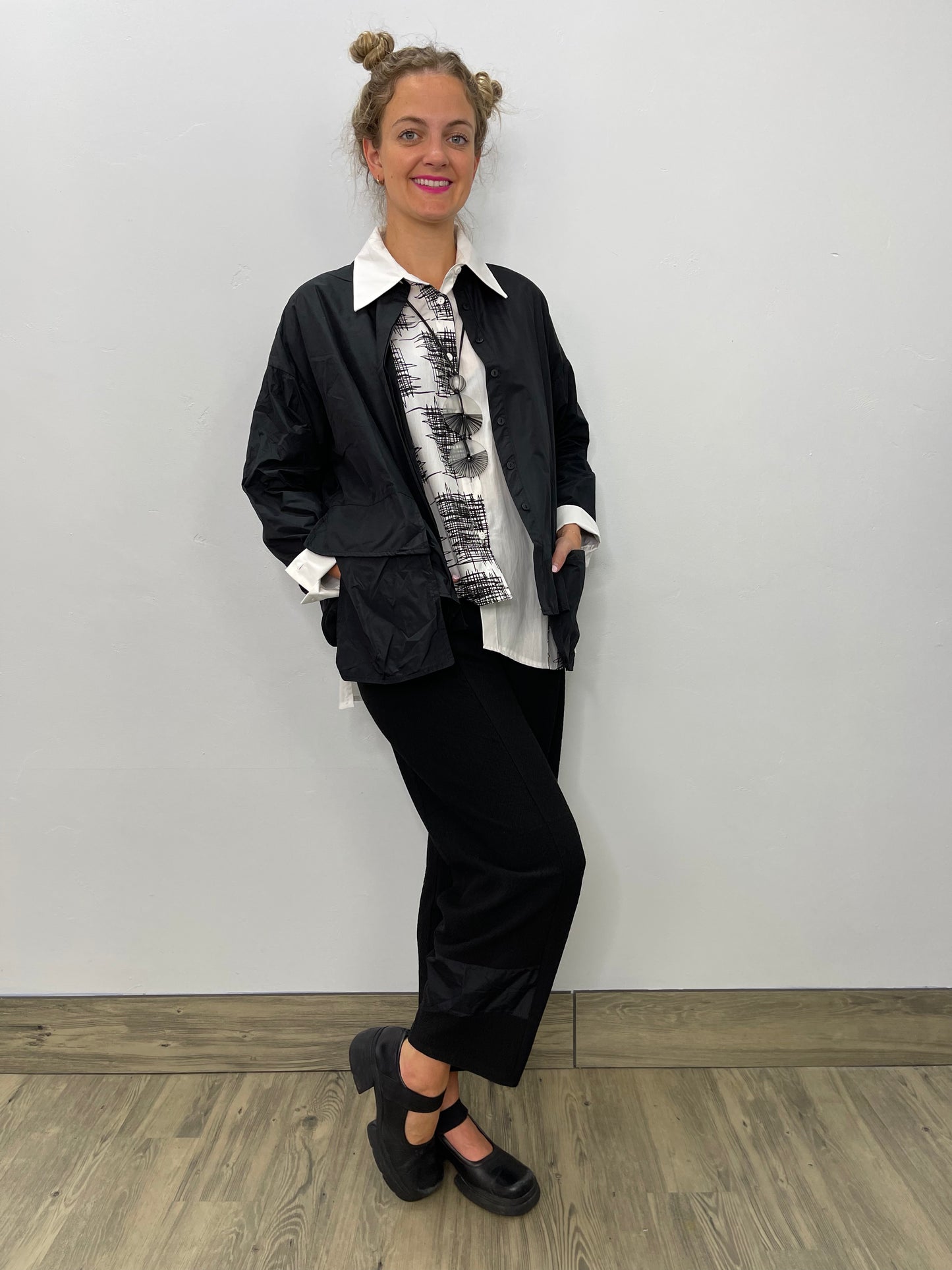 Look stylish and confident in this Black Button Down Jacket. With its oversized front pockets and long sleeve design, you'll feel comfortable and have plenty of room for all your essentials. Make a statement wherever you go in this stylish jacket.