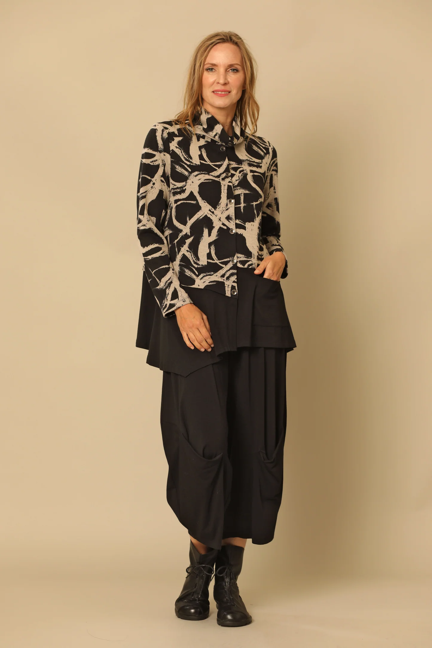 Regular price $118.20Feel comfortable and look chic in this black patterned long sleeve button down jacket. The pocket and soft collar add practicality and style while the modal fabric provides a touch of luxury. Look stylish and feel comfortable with this perfect combination of classic design and modern comfort.