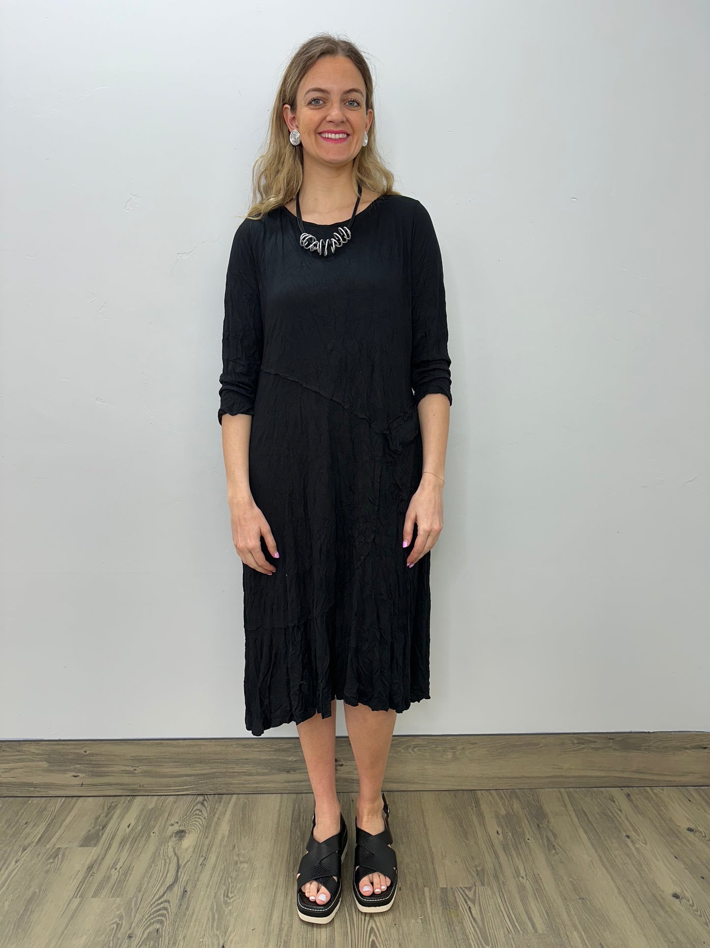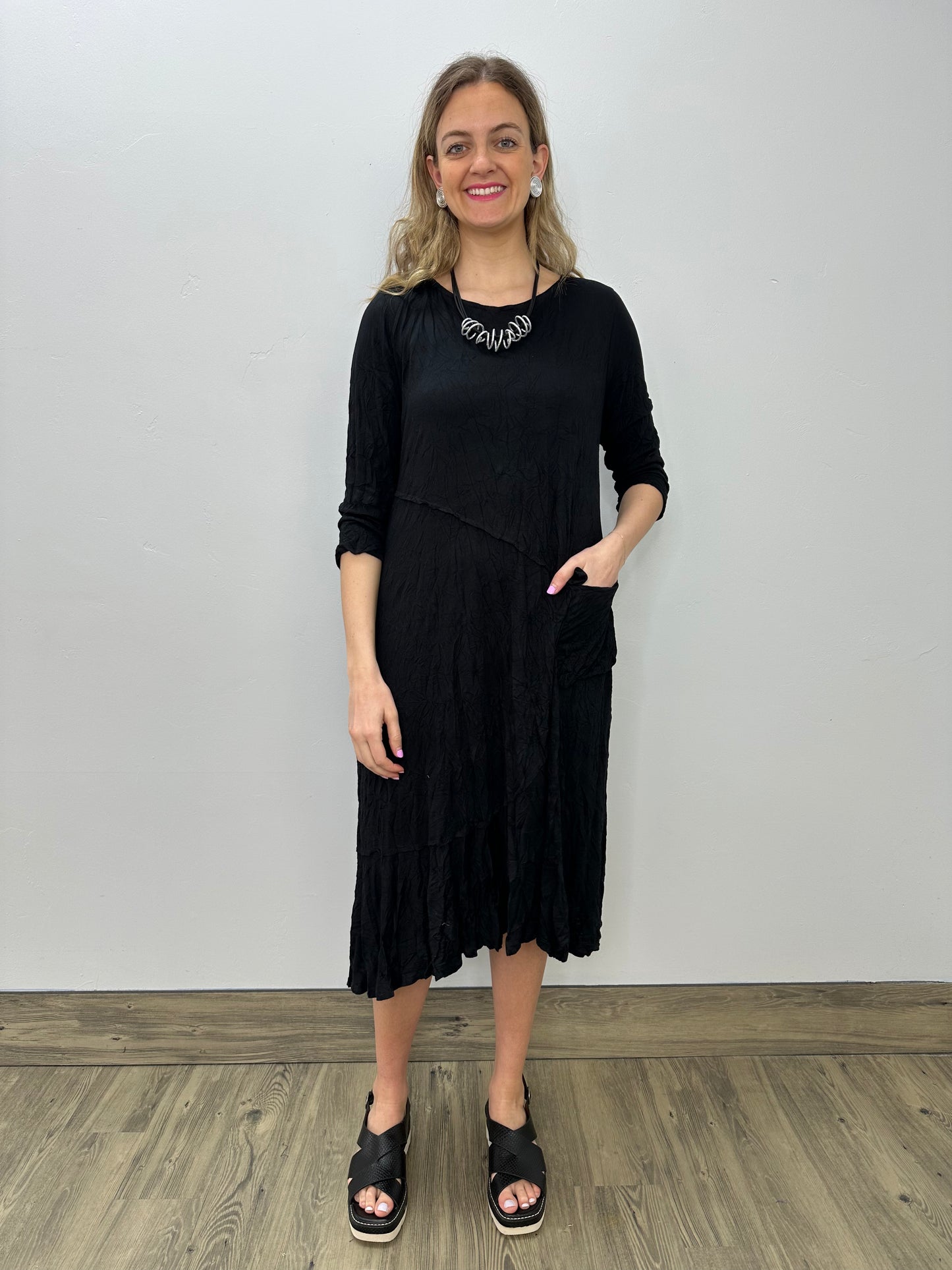 With this sunny season, the Maggy Dress will become your favorite staple. Adore its classy design with its intricate raw edge seam detailing and front flapped patch 3D pocket. Our recycled crinkled jersey fabric works gorgeously with the asymmetric hem and A-line fit for that breathtaking silhouette.